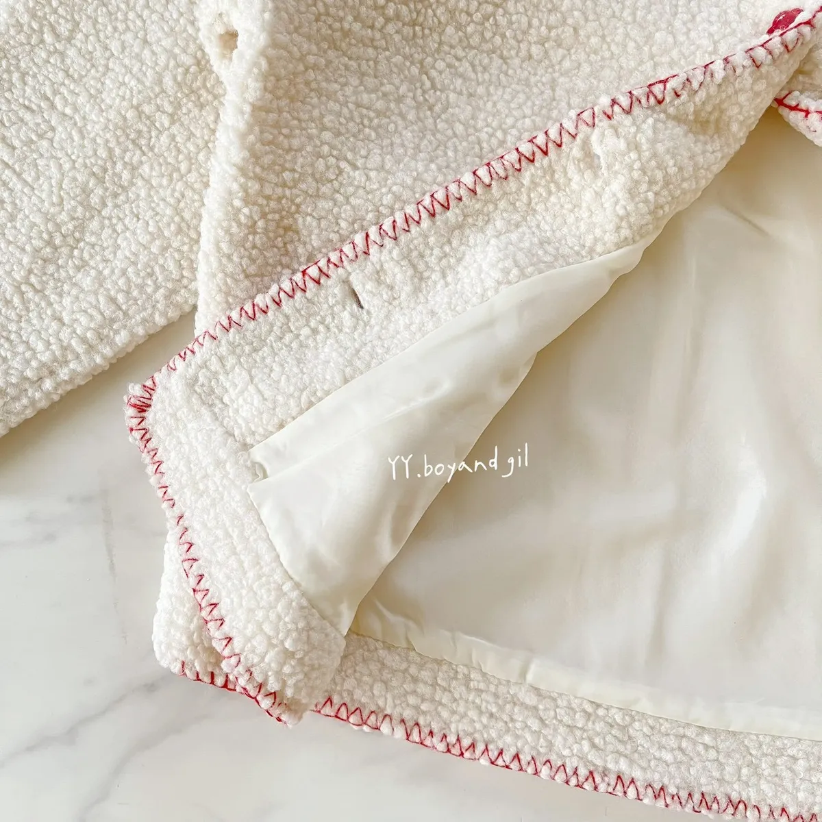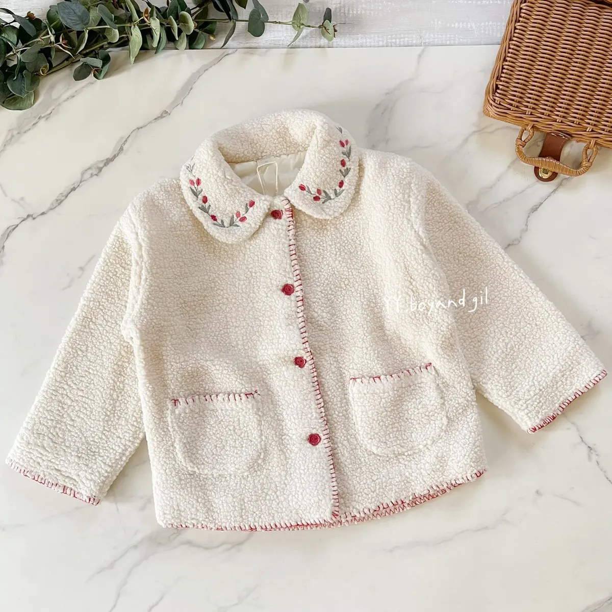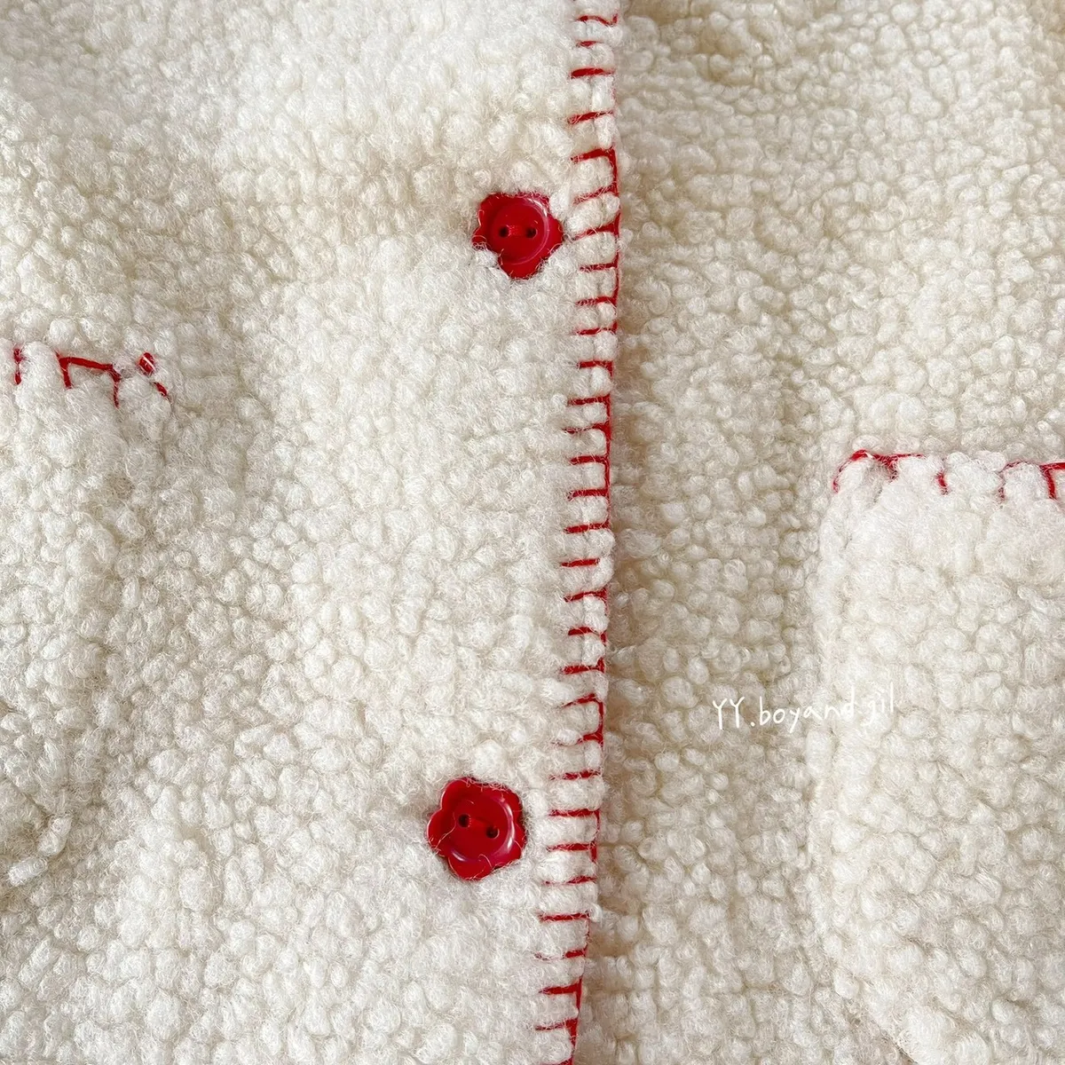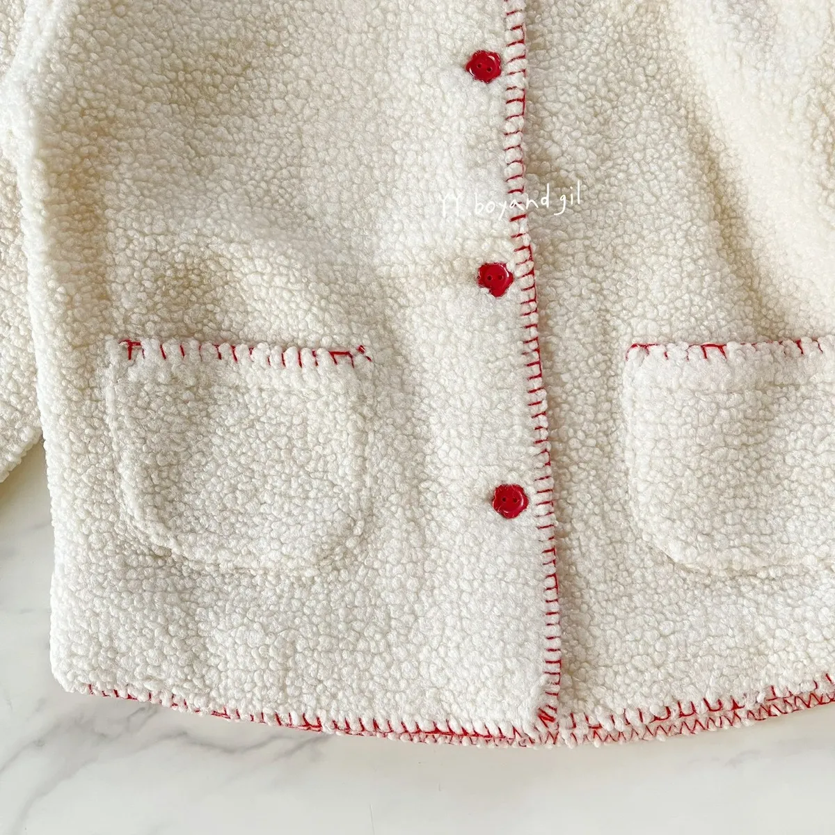 鈕扣則是花朵圖案, 跟外套有搭配到,