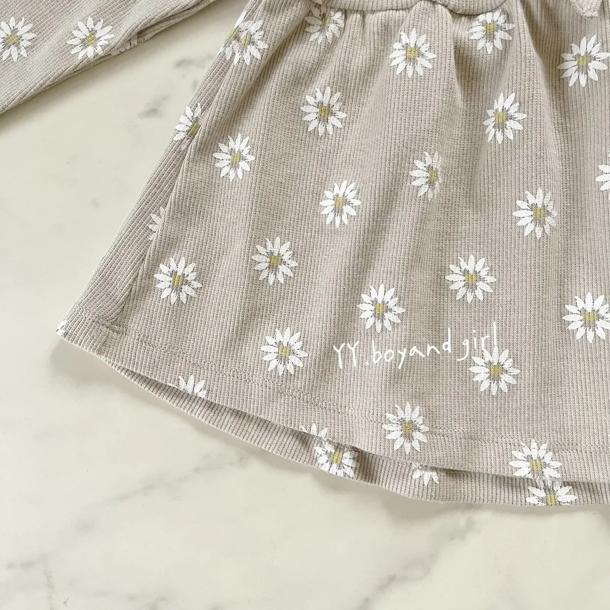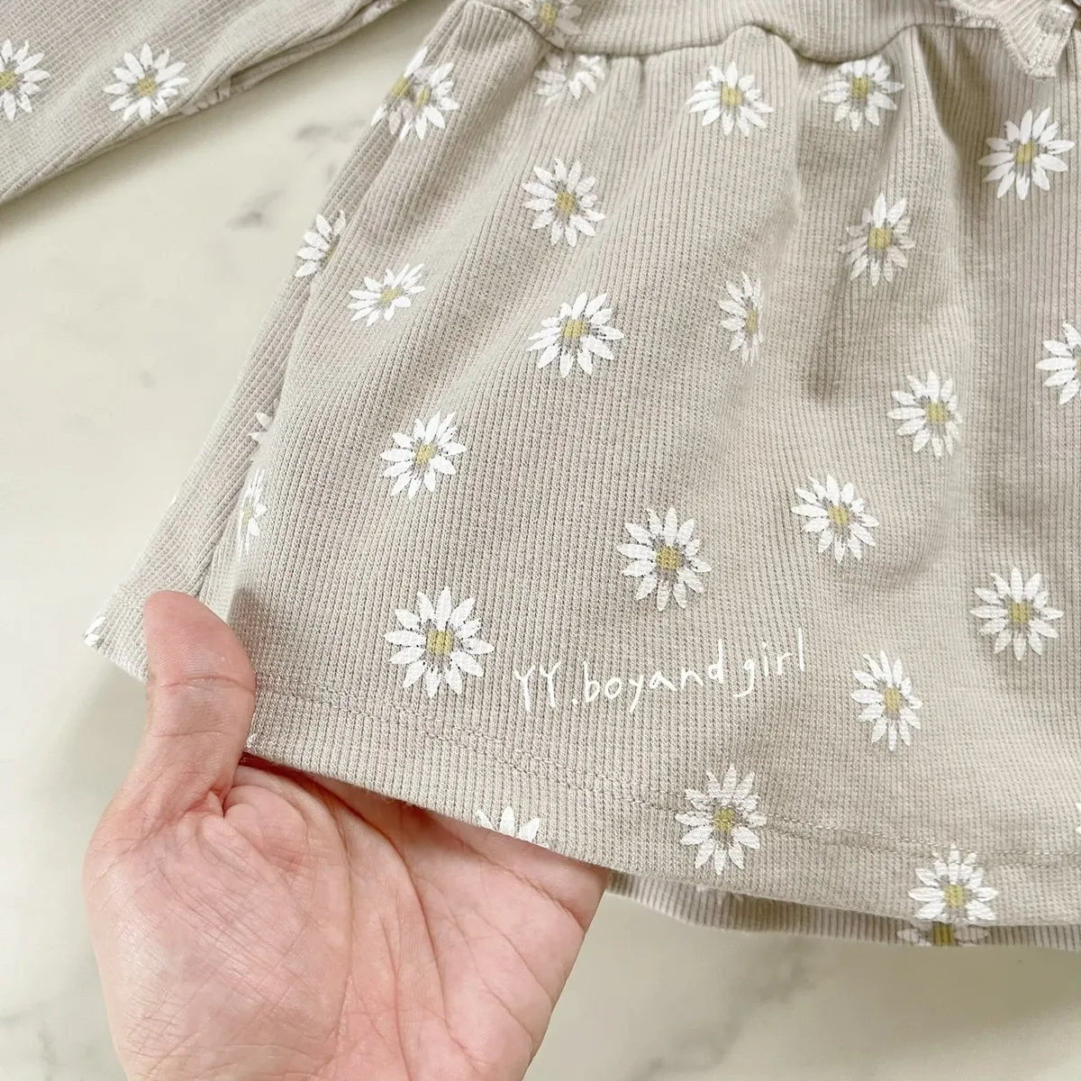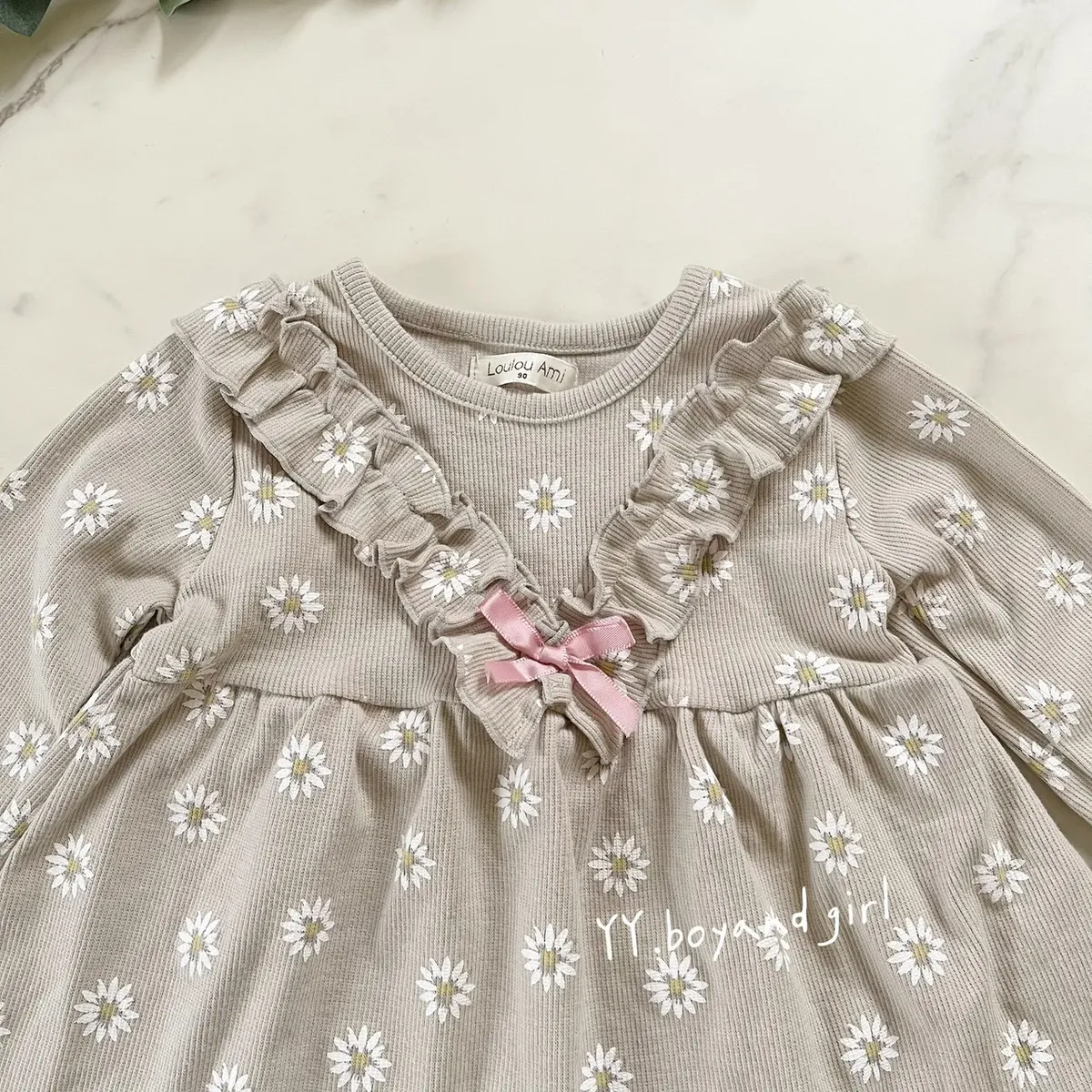 ✨質感奶灰色小雛菊上衣, 胸前荷葉V字設計,再加上蝴蝶結點綴, 穿上甜美可愛~下身搭配牛仔褲修飾身形又有俏皮感~布料柔軟舒適, 日常百搭,是小女孩的甜美氣質必備款~ 材質: 55%棉彈力: 有標籤: 剪標款