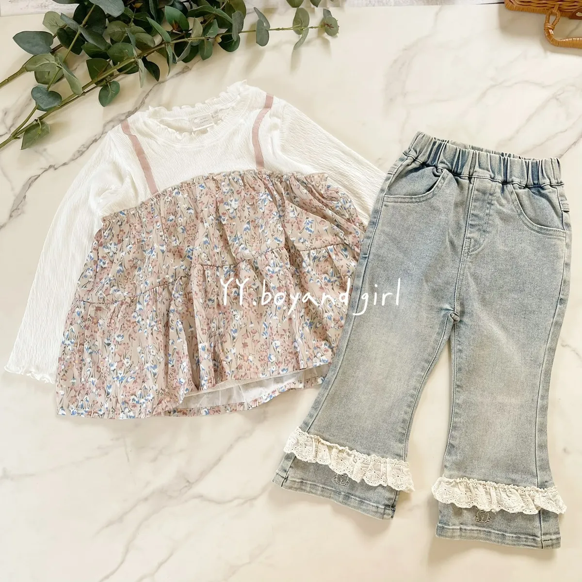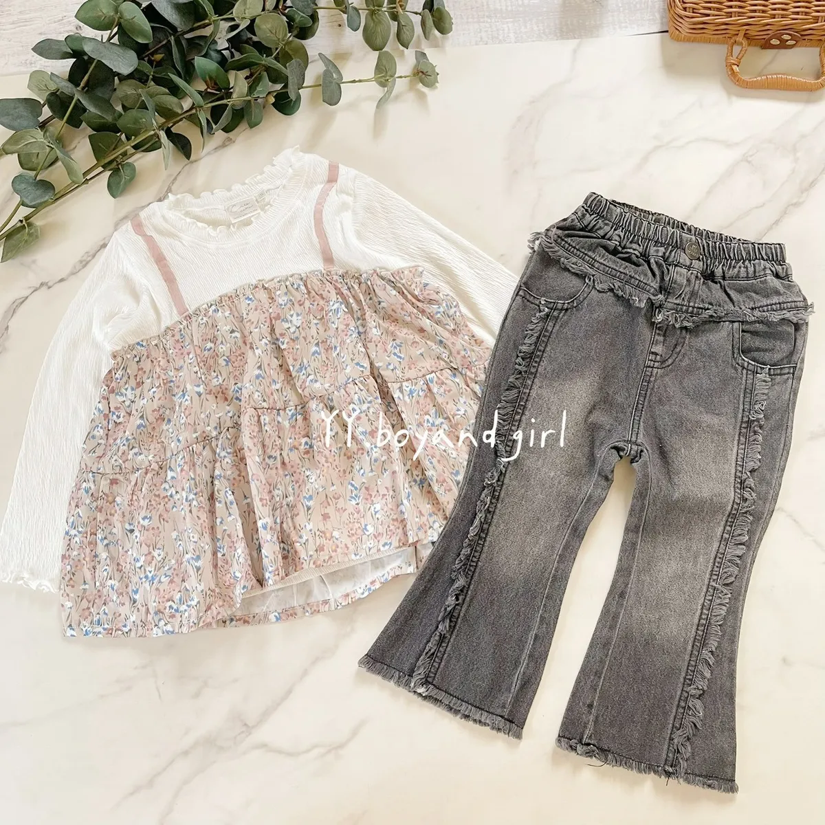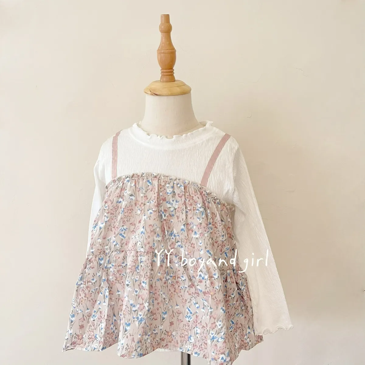細緻壓紋奶白打底+高級奶杏小碎花飄逸裙擺,
