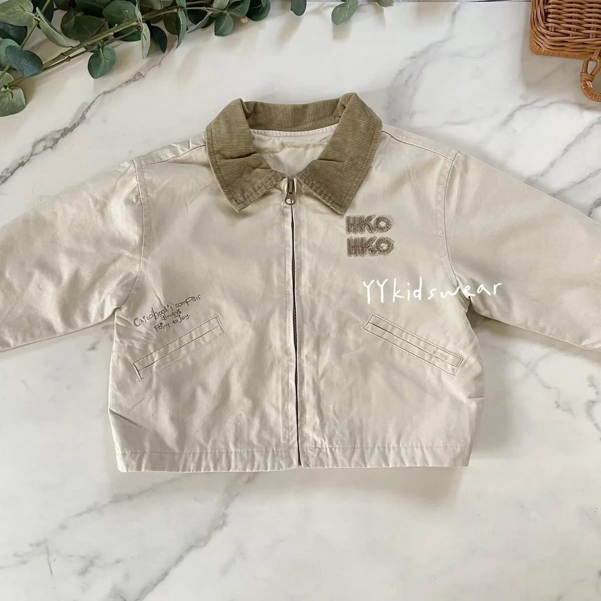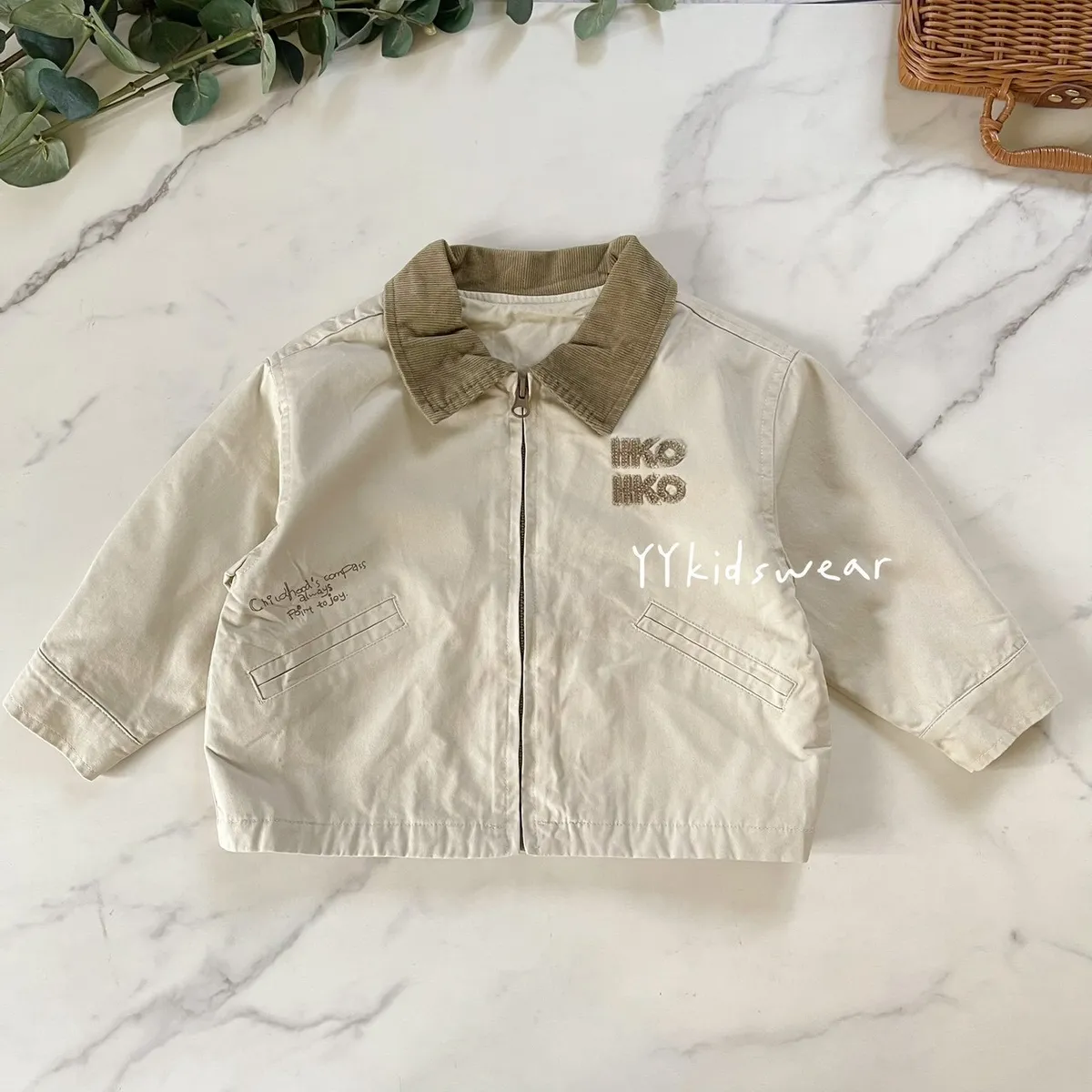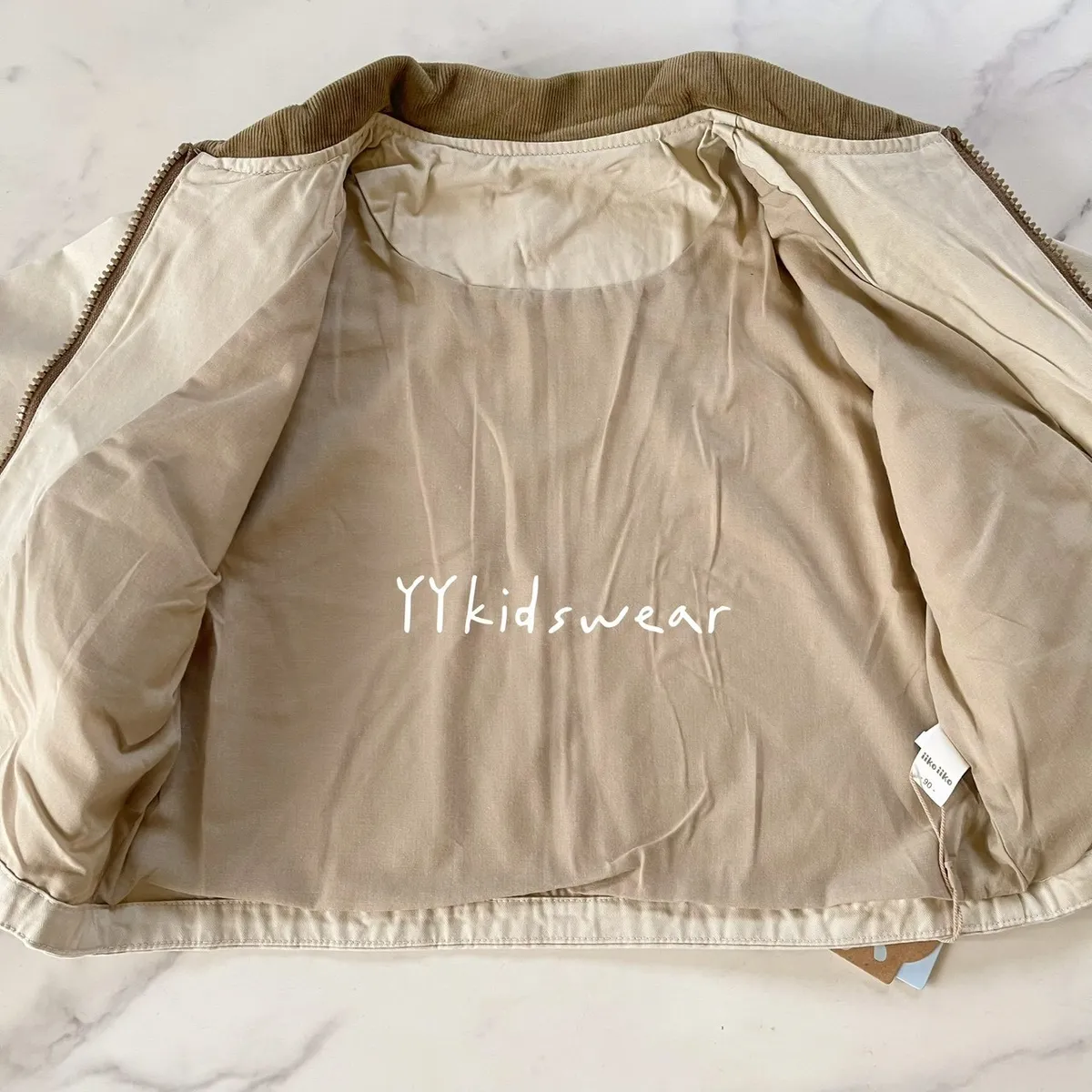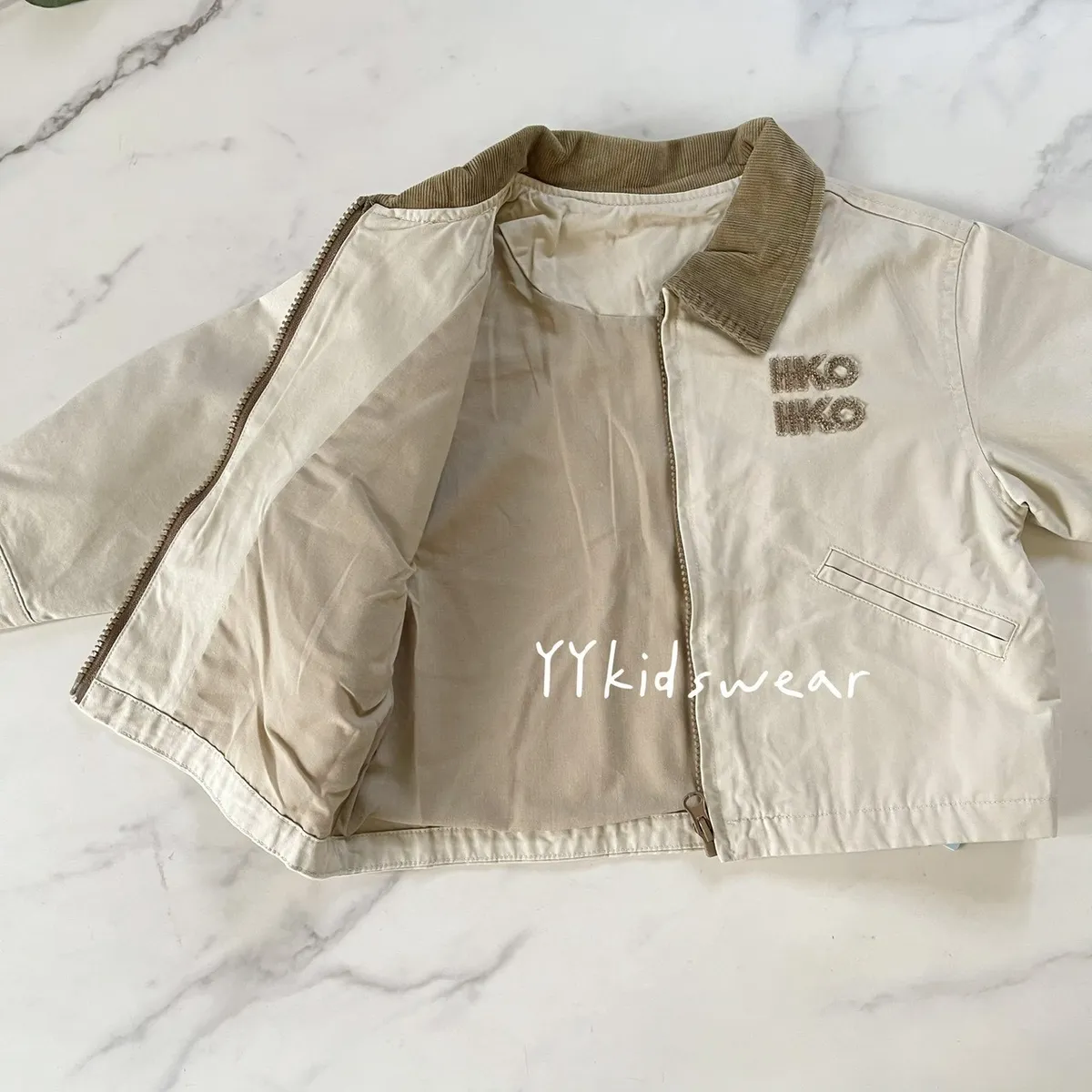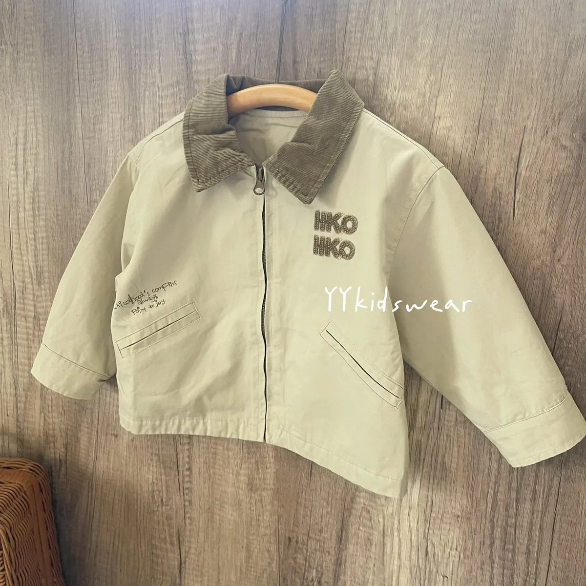 這款外套以溫柔奶茶色為基底,搭配短絨布領與毛巾布立體字母刺繡, 細節滿滿,質感不馬虎。