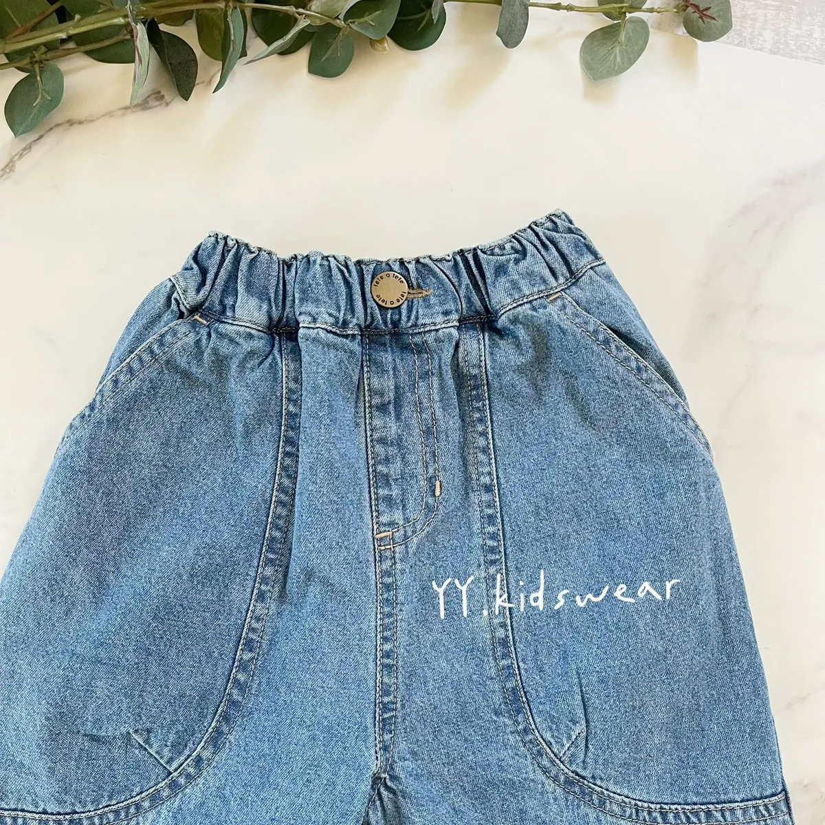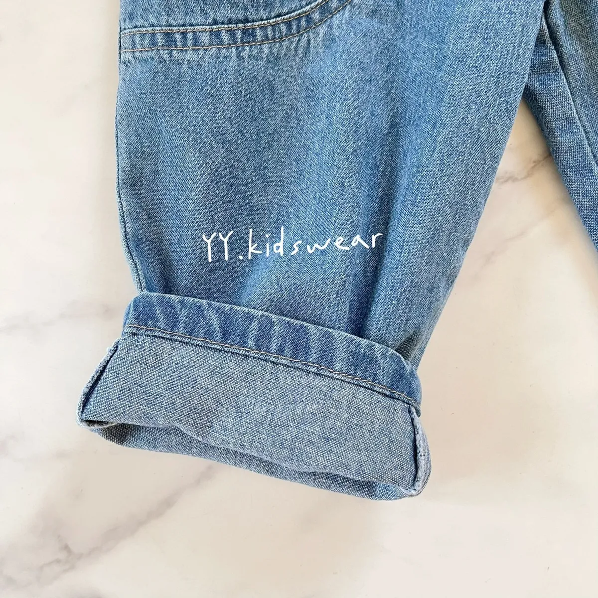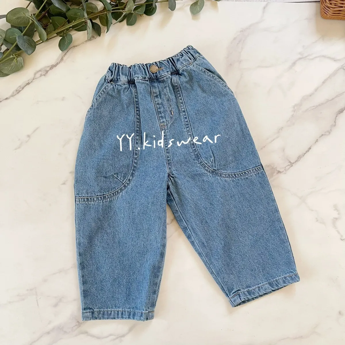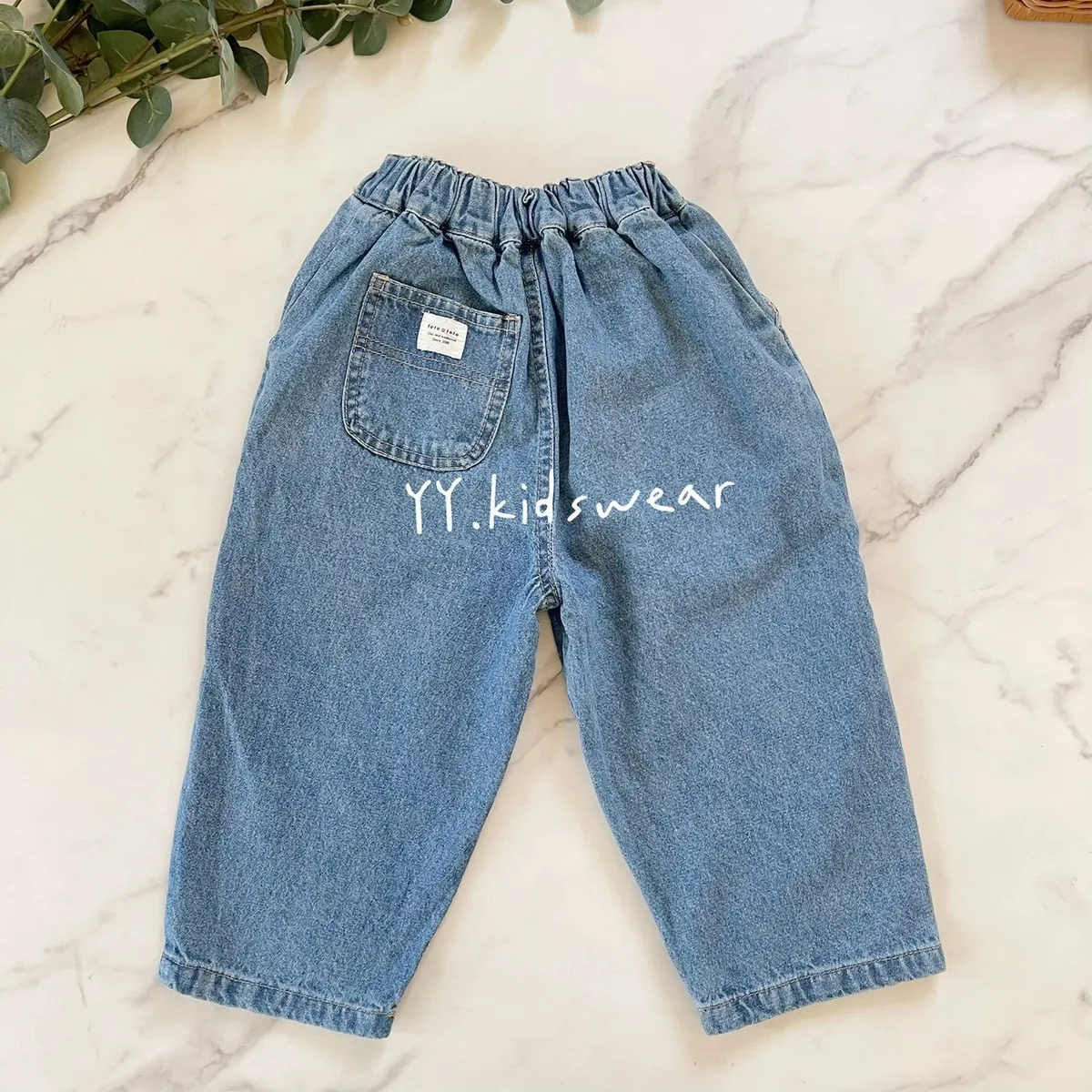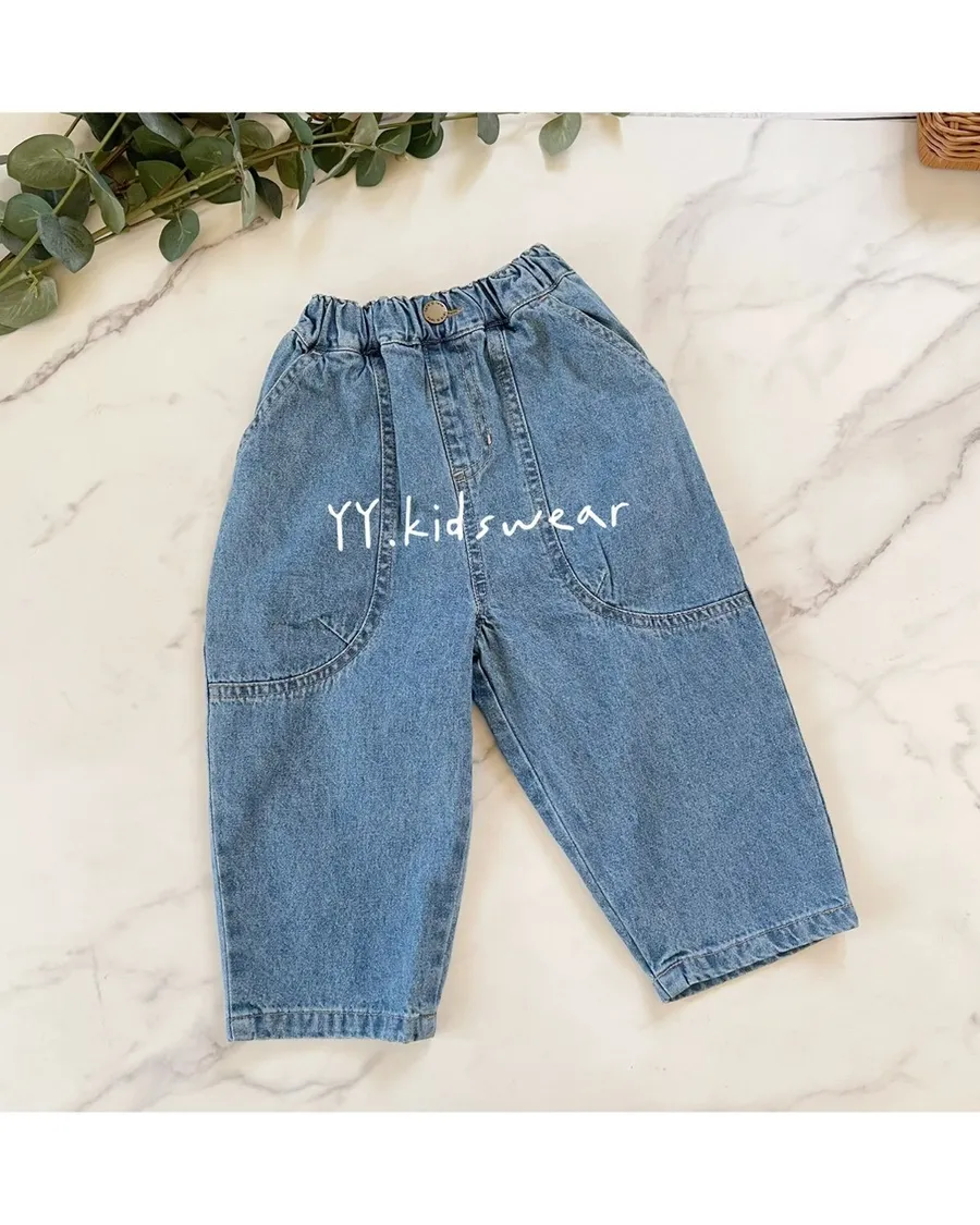 ✨圓弧口袋休閒牛仔褲, 中性款男女寶都能穿,