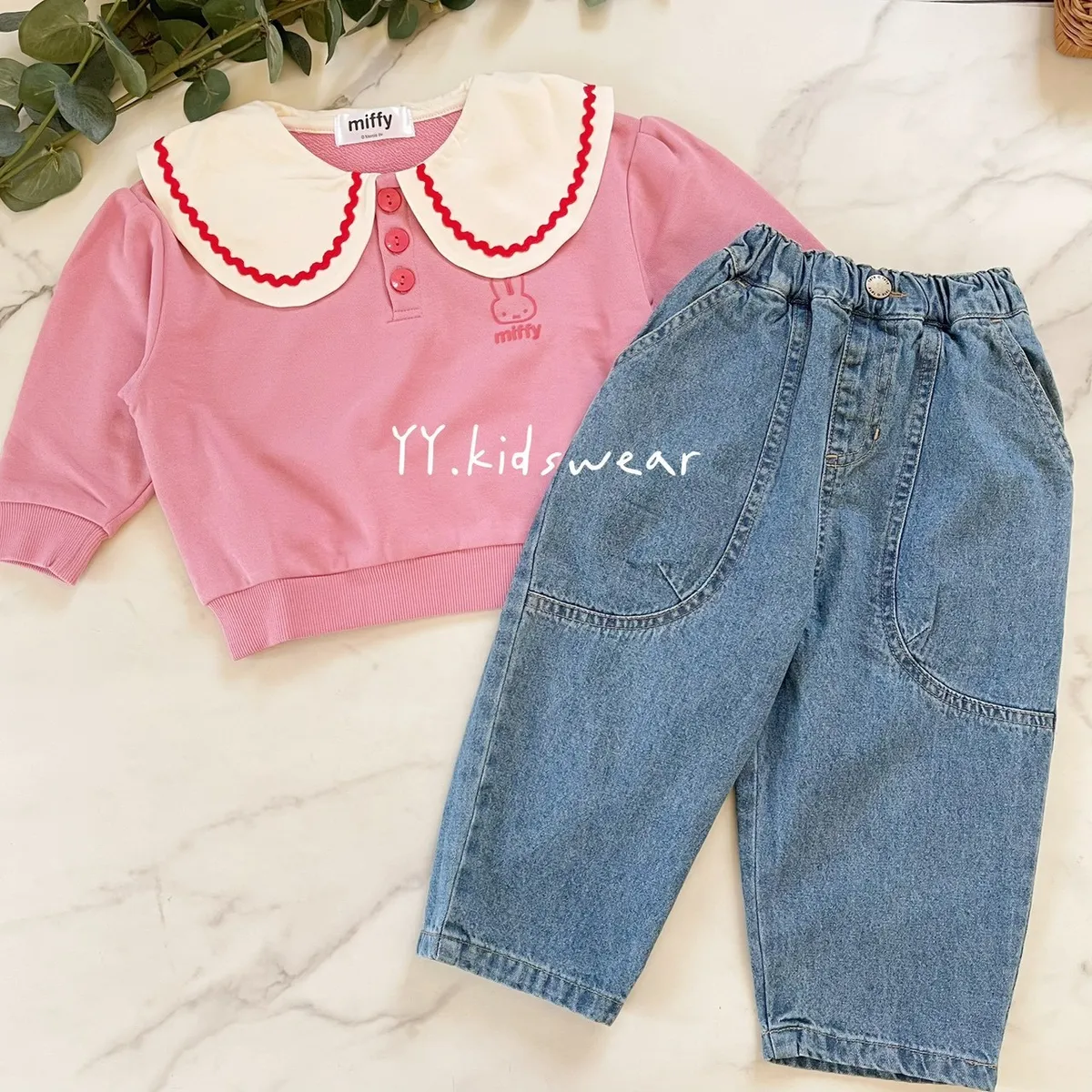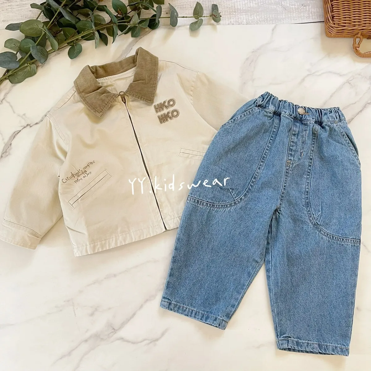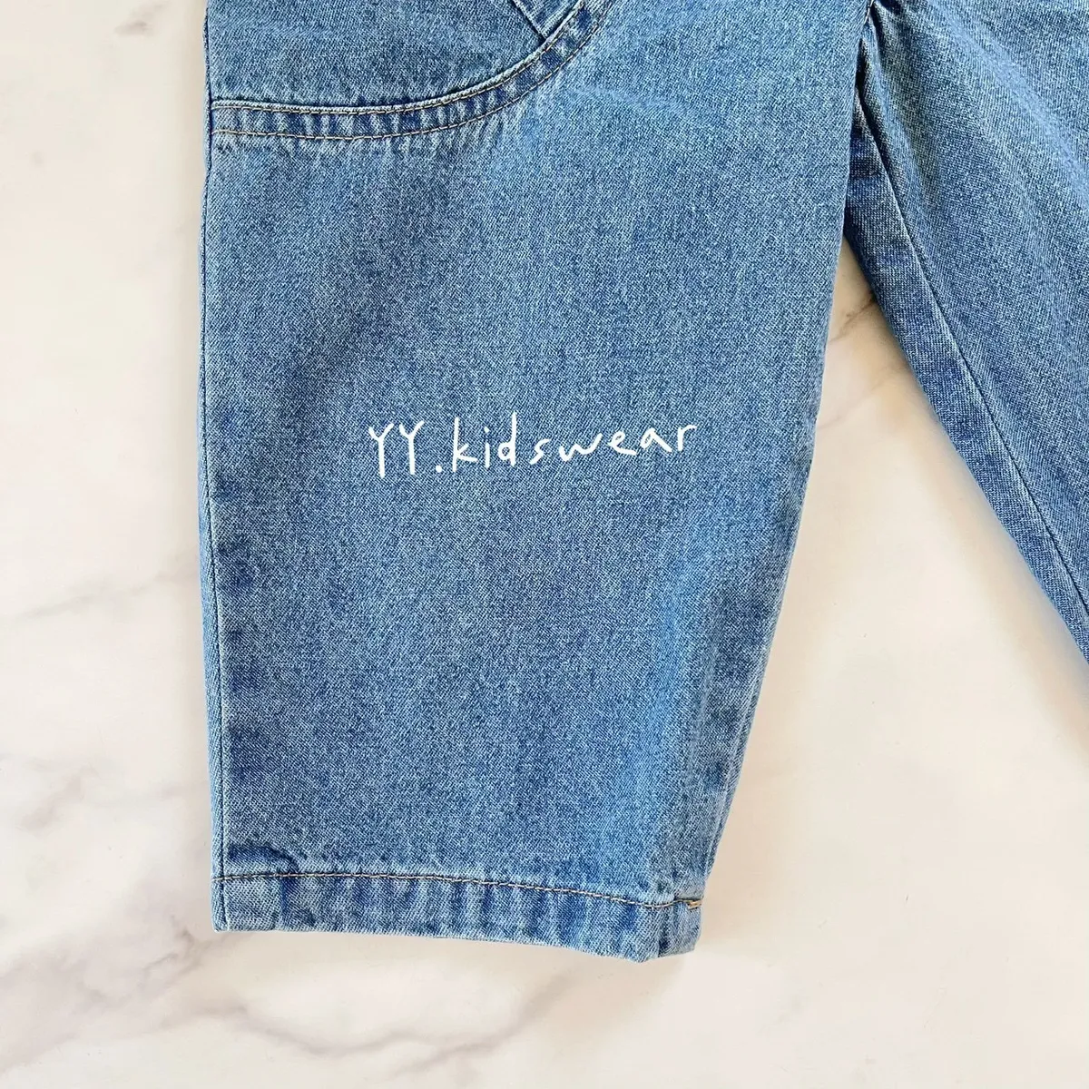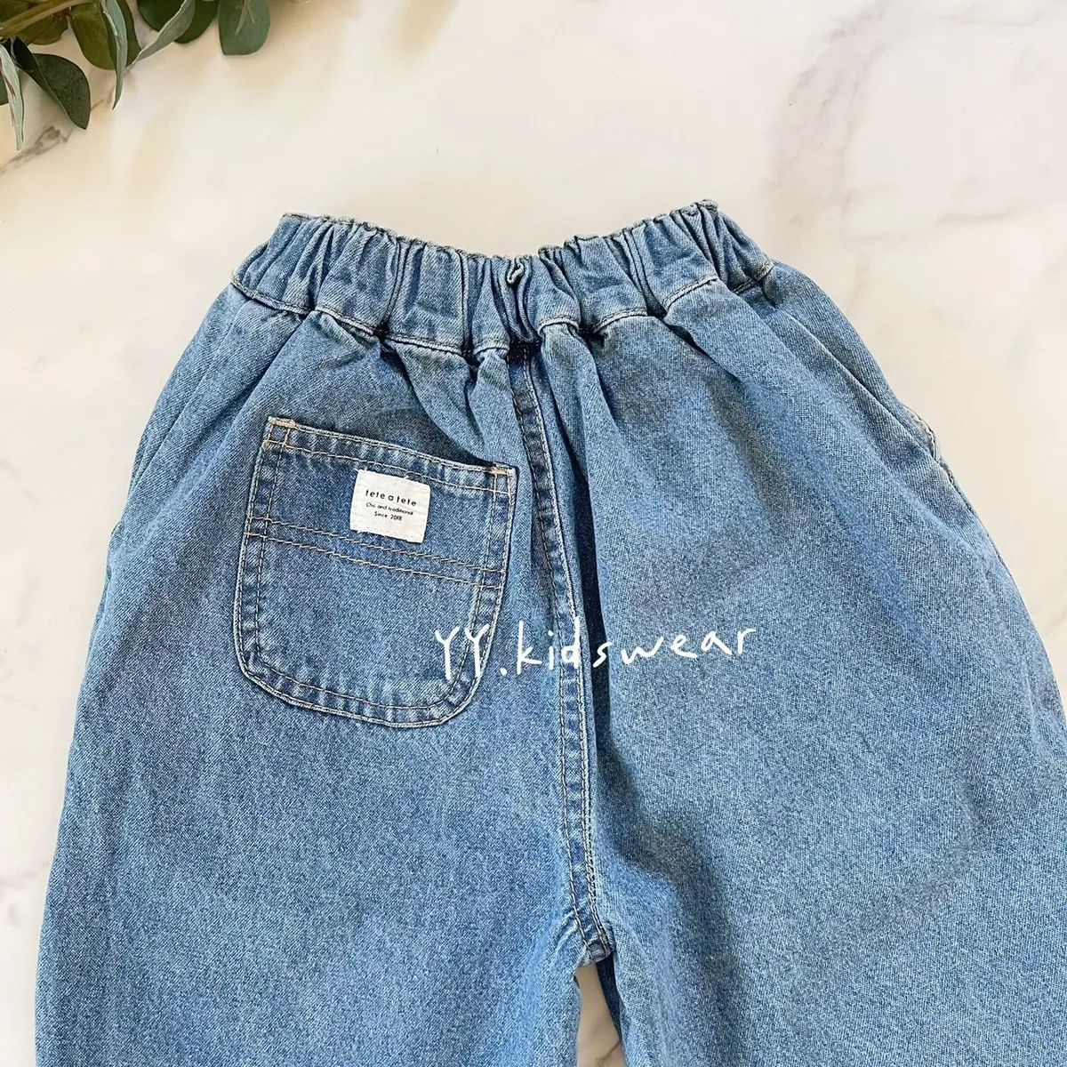 ✨圓弧口袋休閒牛仔褲, 中性款男女寶都能穿,