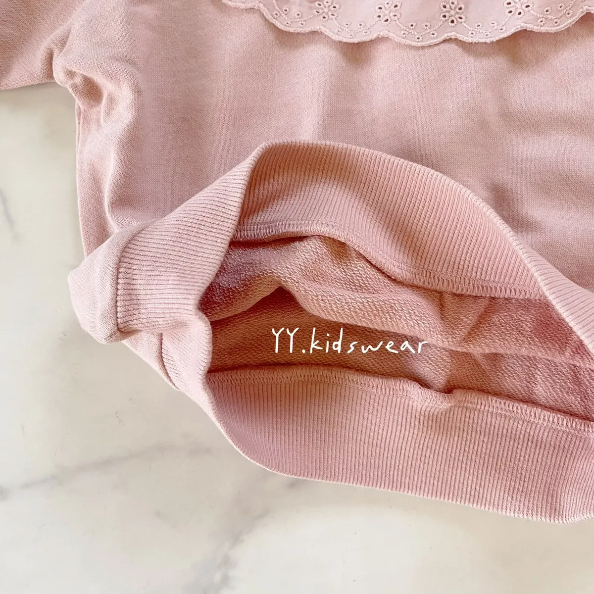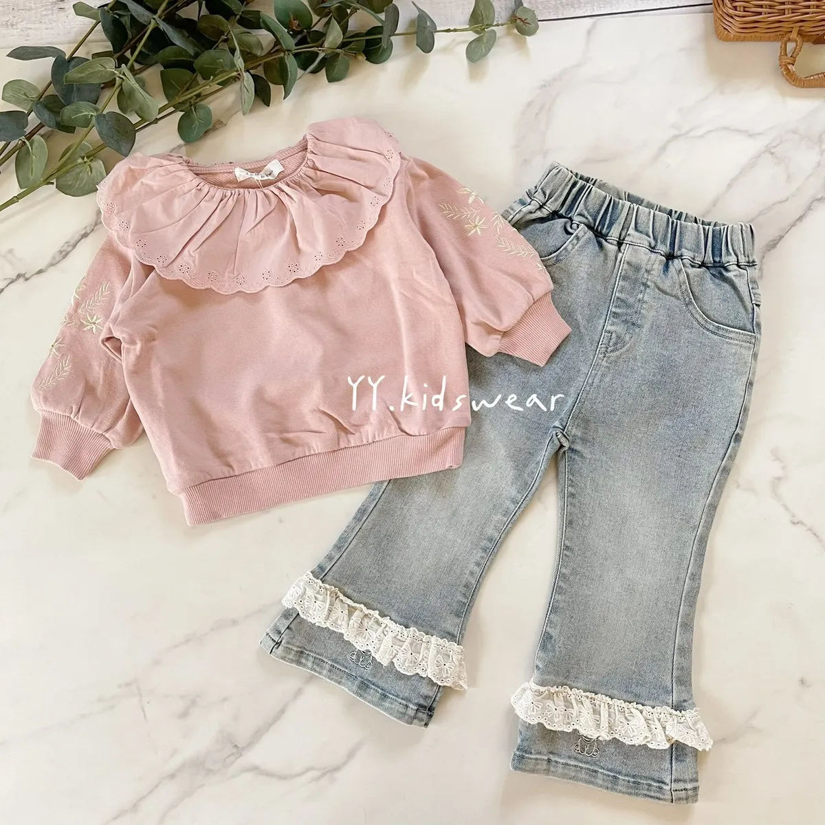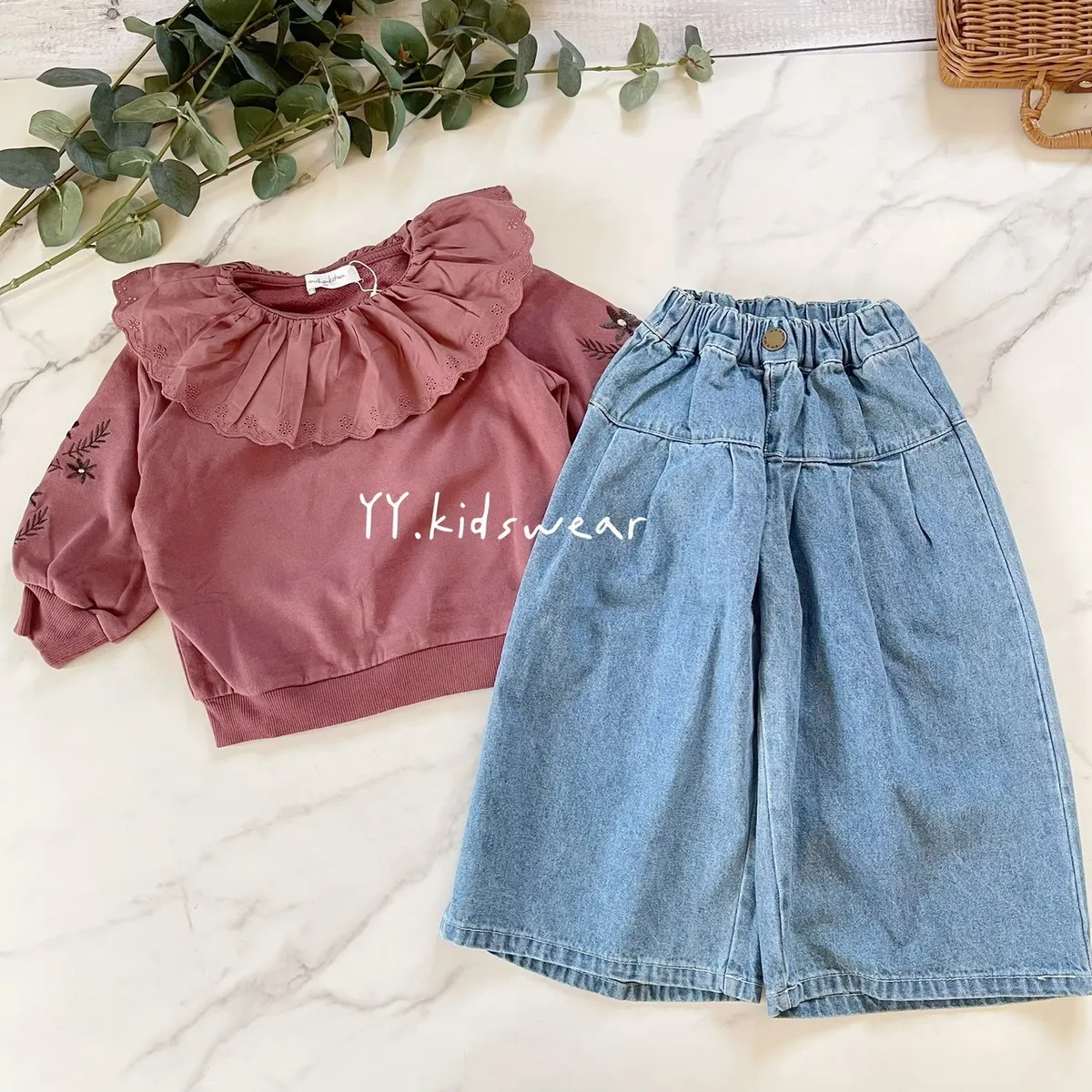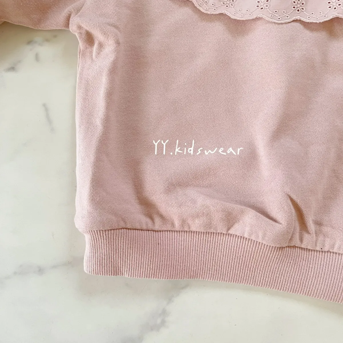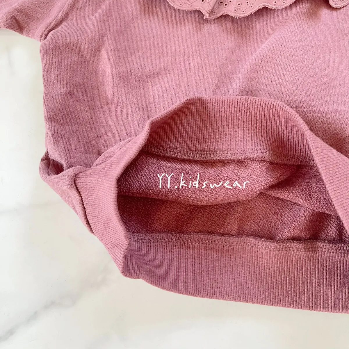 ✨優雅小女孩的秋日上衣,看似簡單,卻細節多多,純棉上衣, 結合立體刺繡花草刺繡,搭配大荷葉領翻翻, 上面還有雕花,細節滿滿、質感極佳~