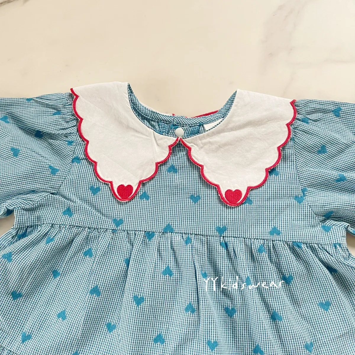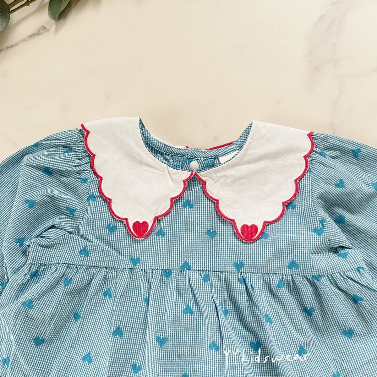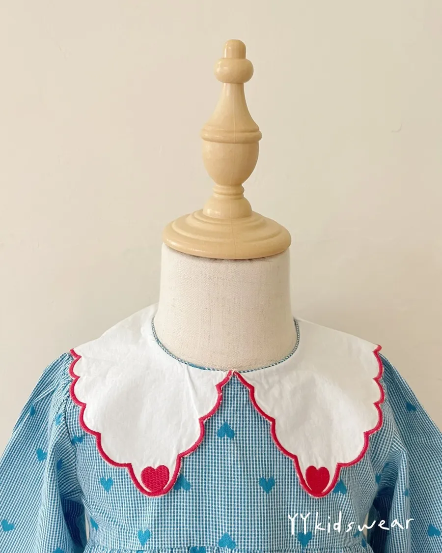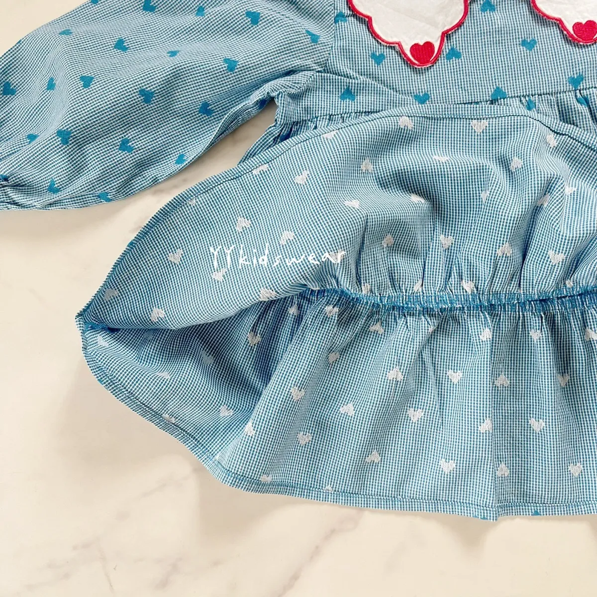 上面有的小愛心, 娃娃領有細緻波浪滾邊還有愛心刺繡,