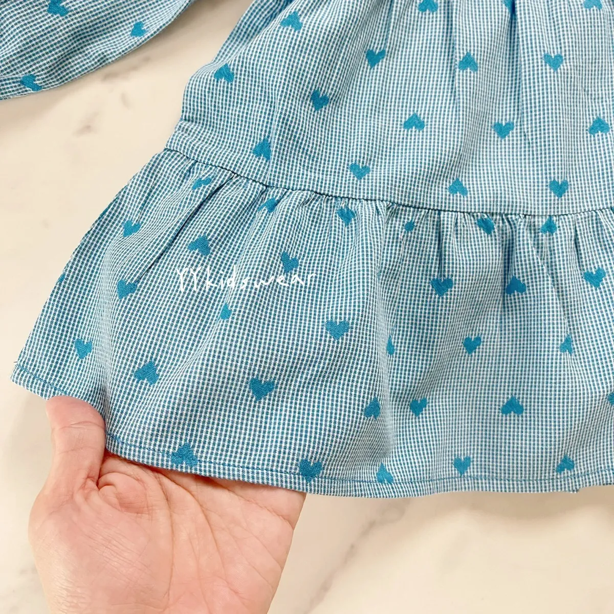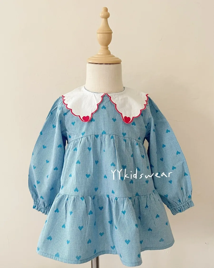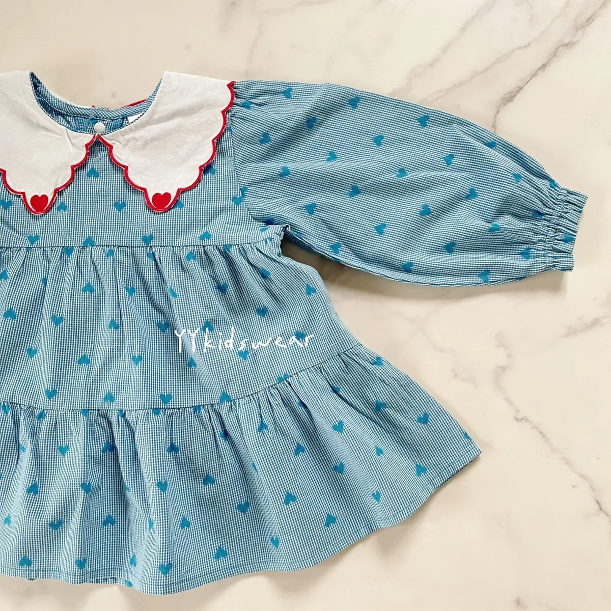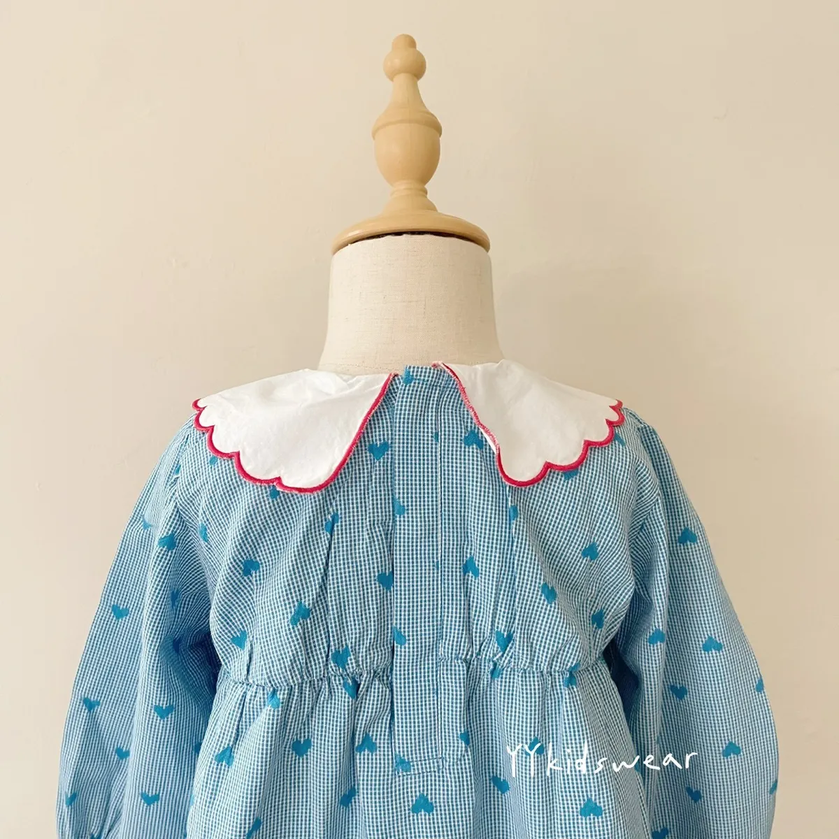 上面有的小愛心, 娃娃領有細緻波浪滾邊還有愛心刺繡,