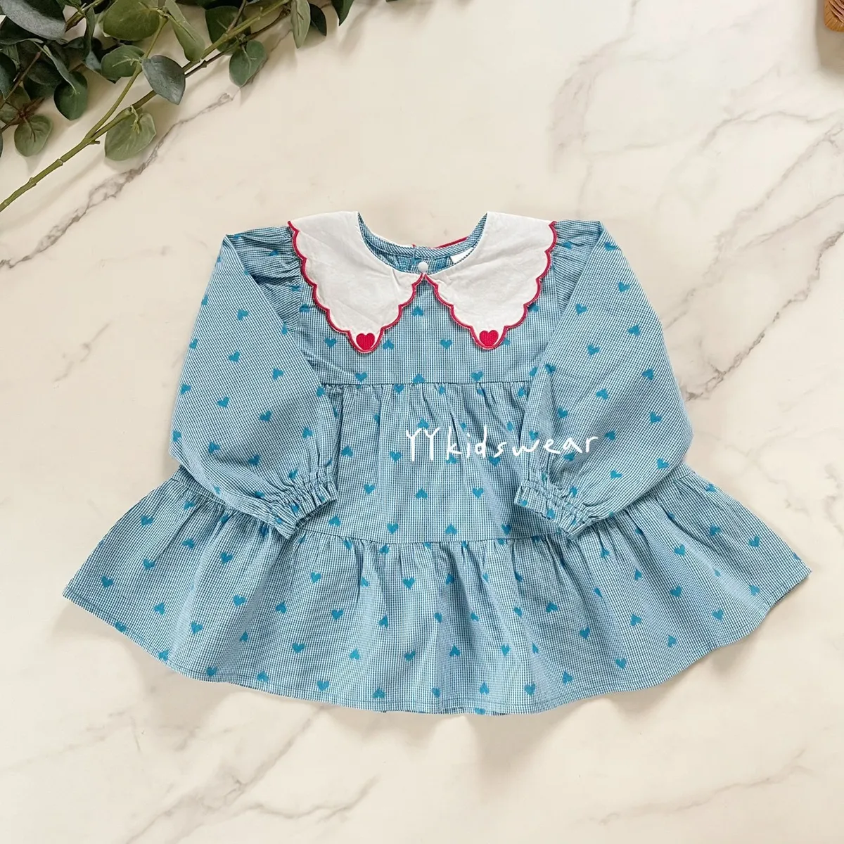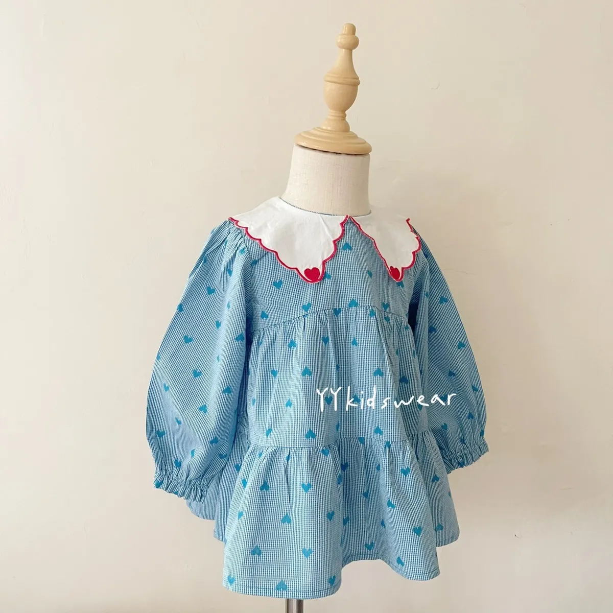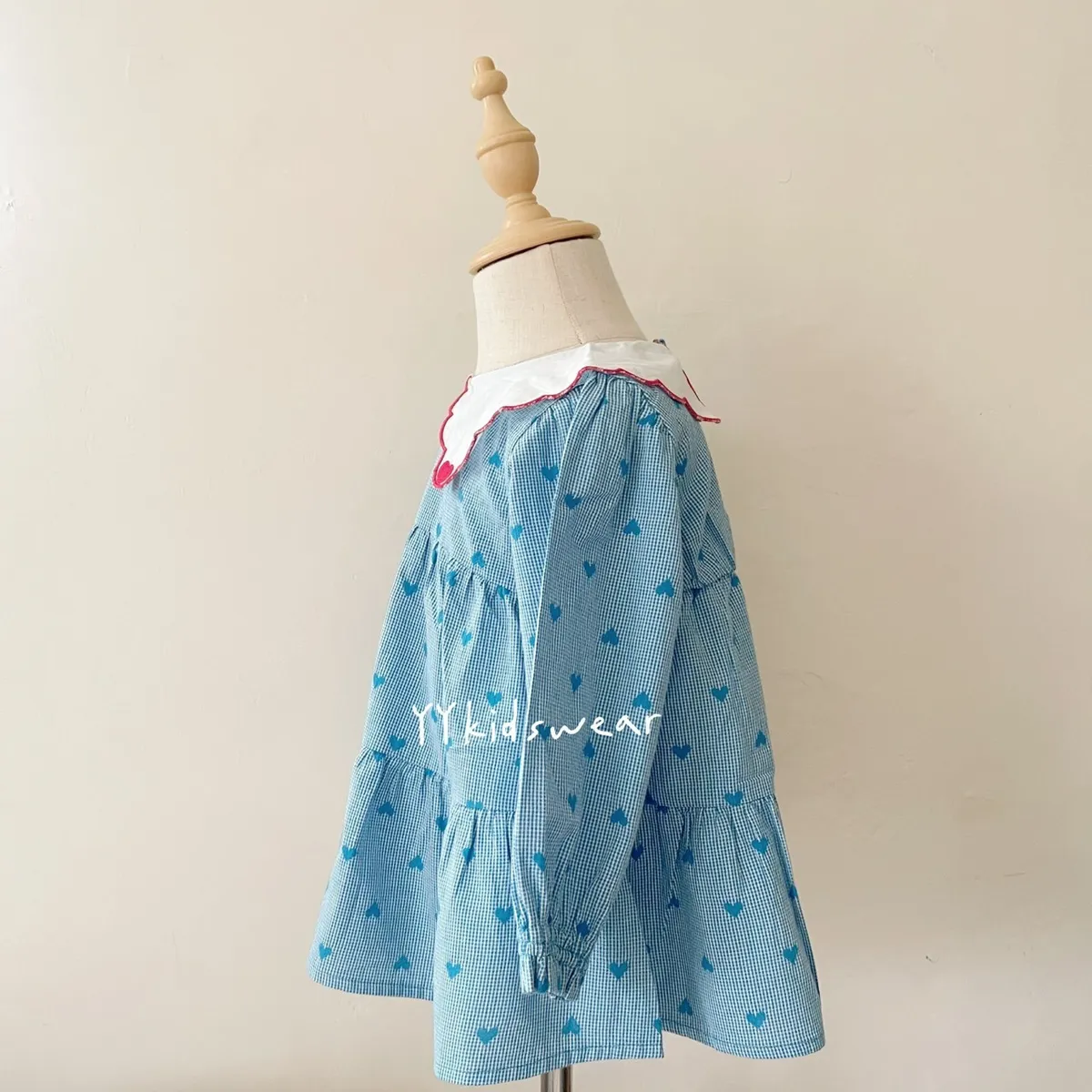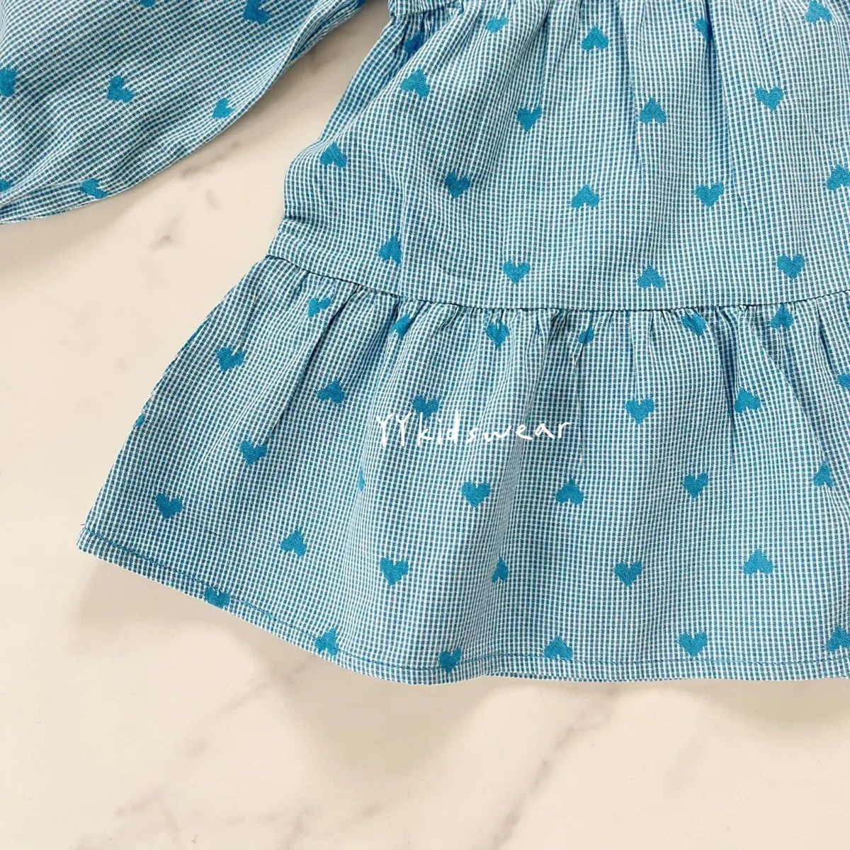 上面有的小愛心, 娃娃領有細緻波浪滾邊還有愛心刺繡,