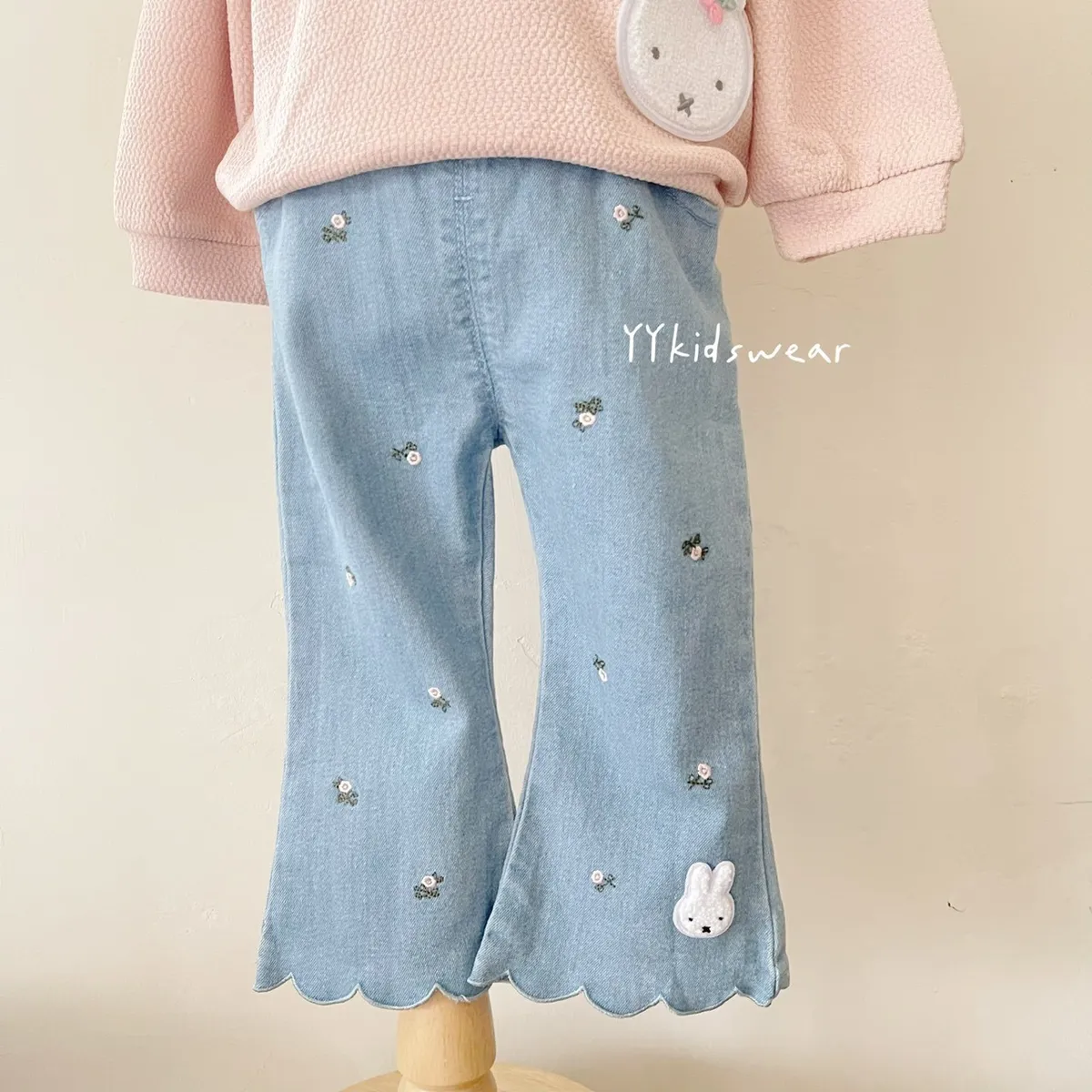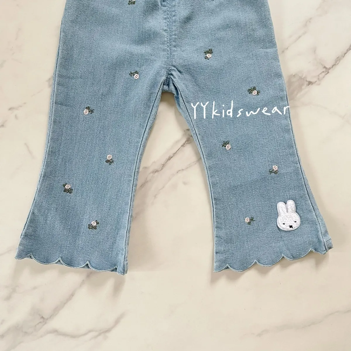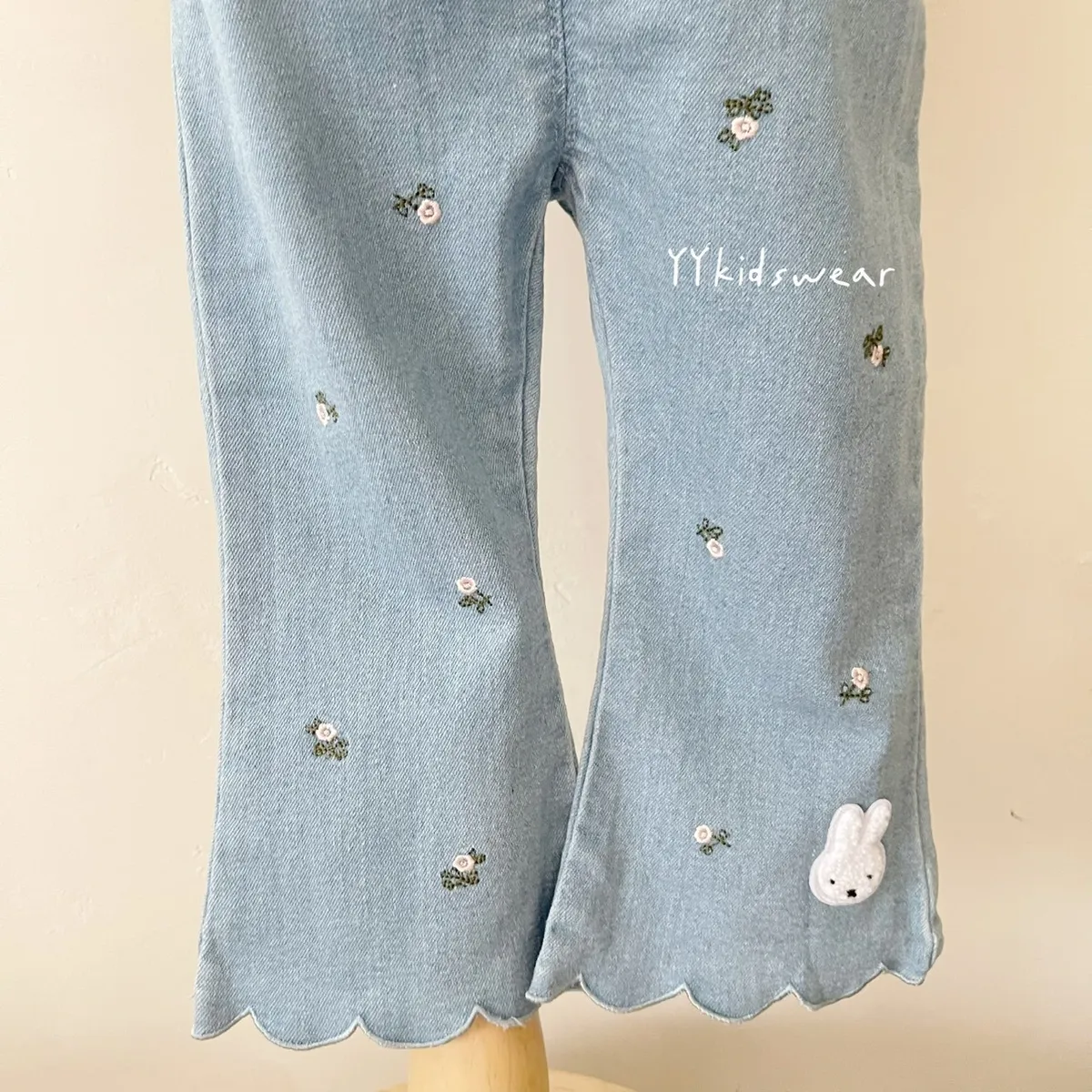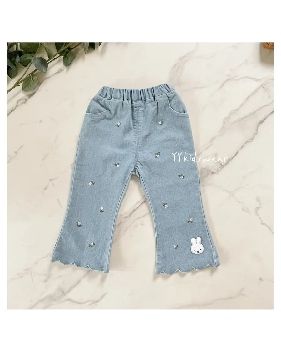 小花刺繡米菲波浪牛仔褲