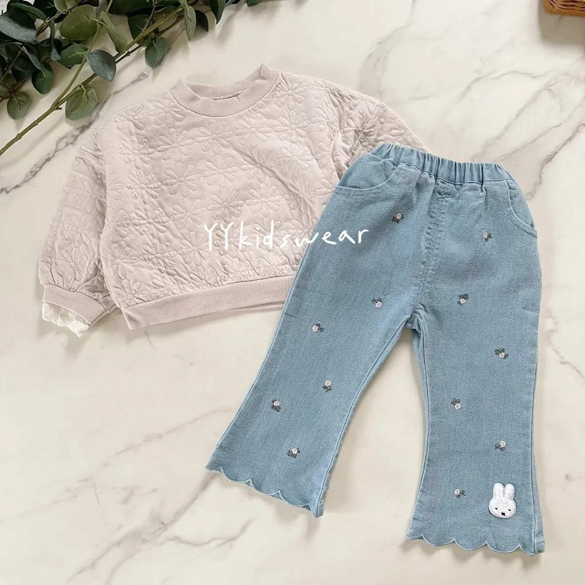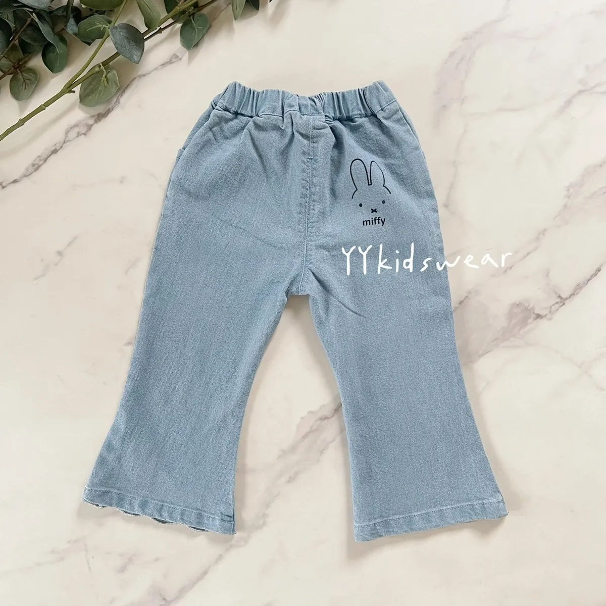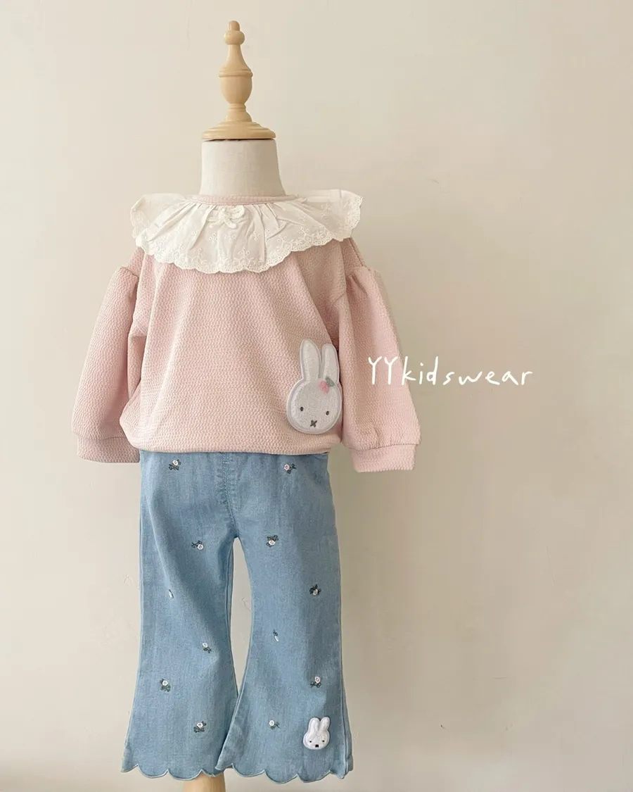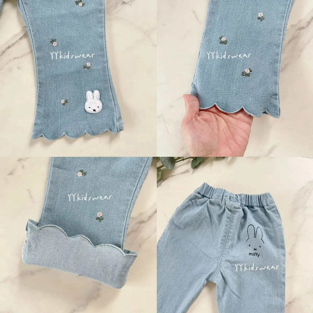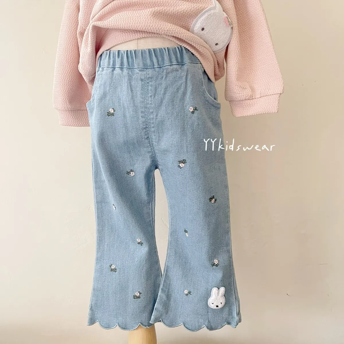 小花刺繡米菲波浪牛仔褲