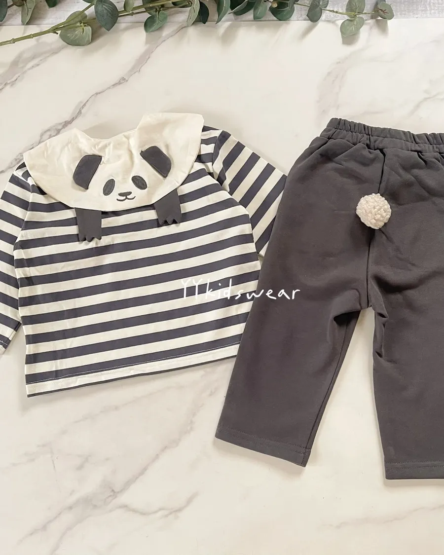 材質: 98%棉彈性: 有✨ 之前很熱賣的短袖款熊貓套裝,出了長袖款~長袖一樣好可愛, 後領子是熊貓翻翻領造型, 軟萌的熊貓造型男女寶穿都很適合~很適合當兄弟姊妹裝褲子後面有立體小尾巴~熊貓領+小尾巴細節,回頭率100%