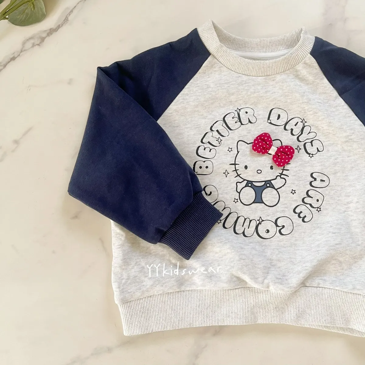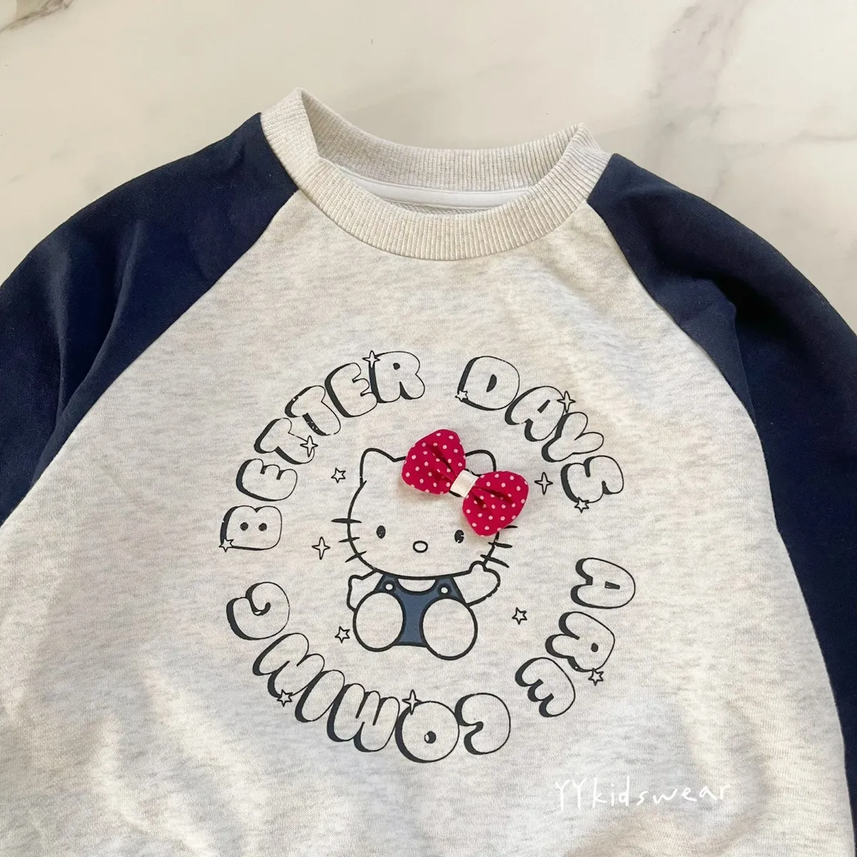搭配海軍藍 Raglan 袖, 韓系寶貝最愛的配色~