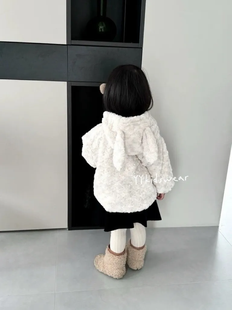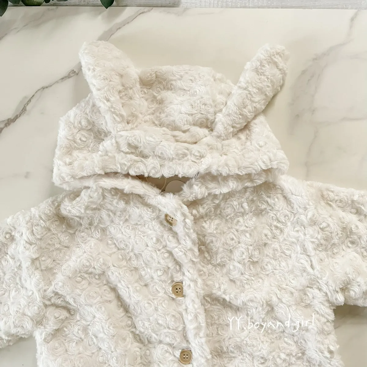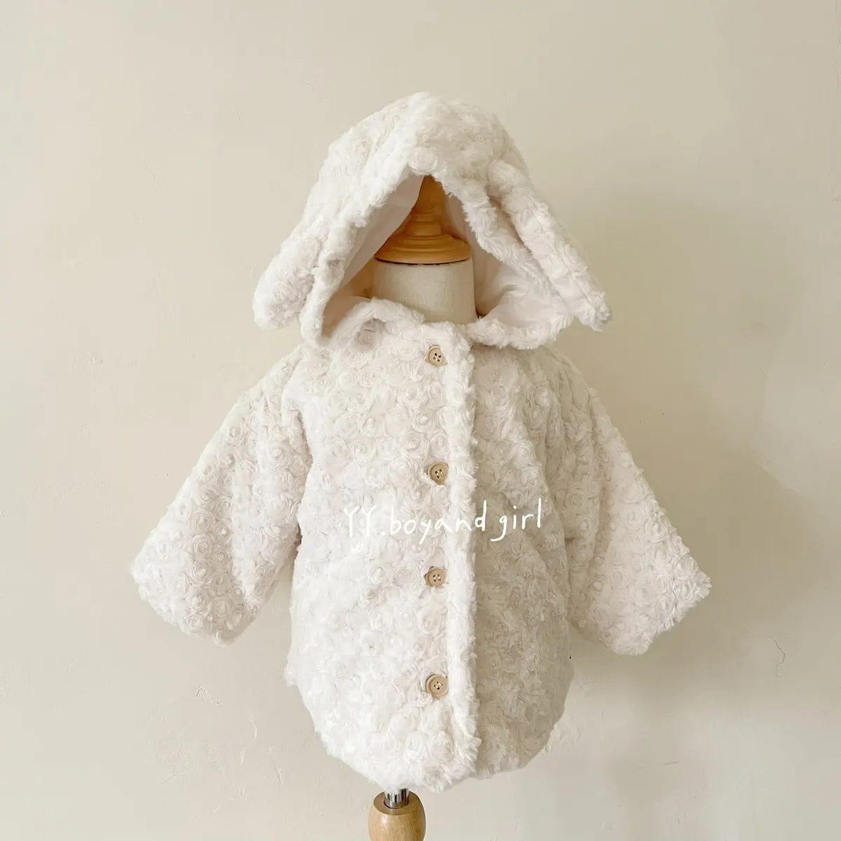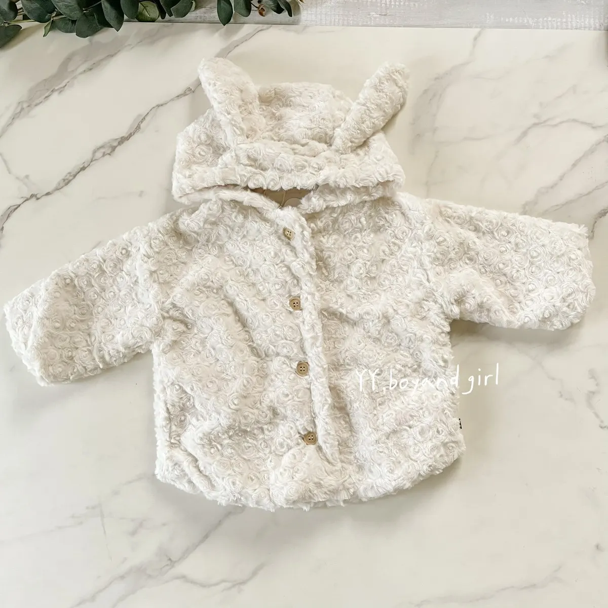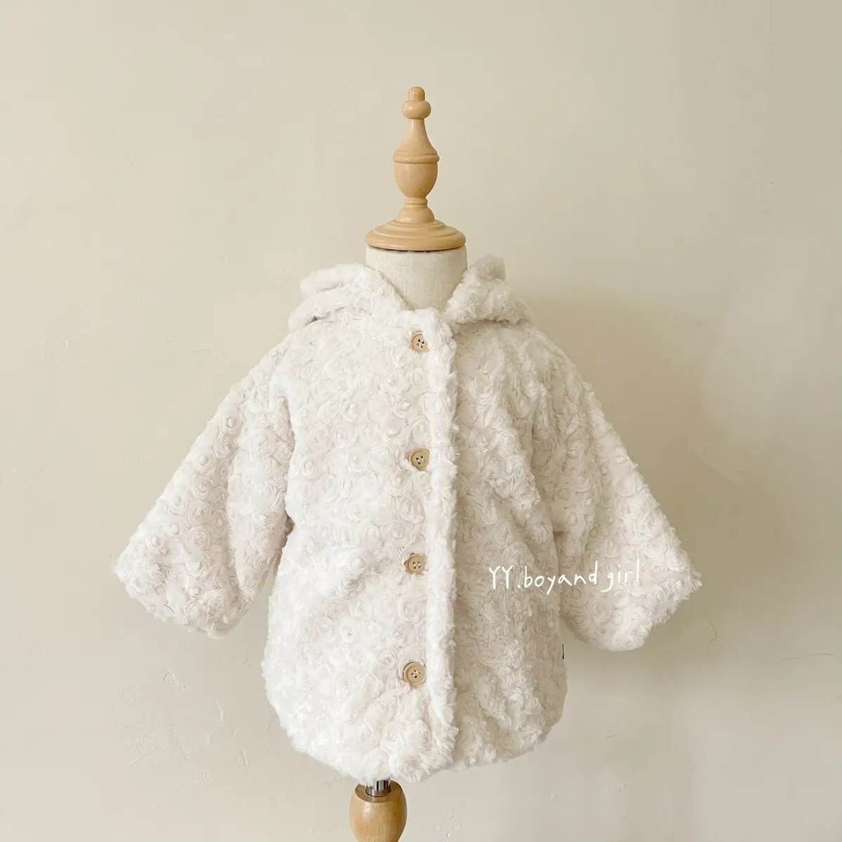 布料很高級, 摸起來很柔順舒服,附加價值是摸起來很有療癒感,絨毛的花紋很美, 仔細看會發現是玫瑰花紋,內裡走高級風, 質感很好,穿上身超級可愛, 很適合小女寶穿~