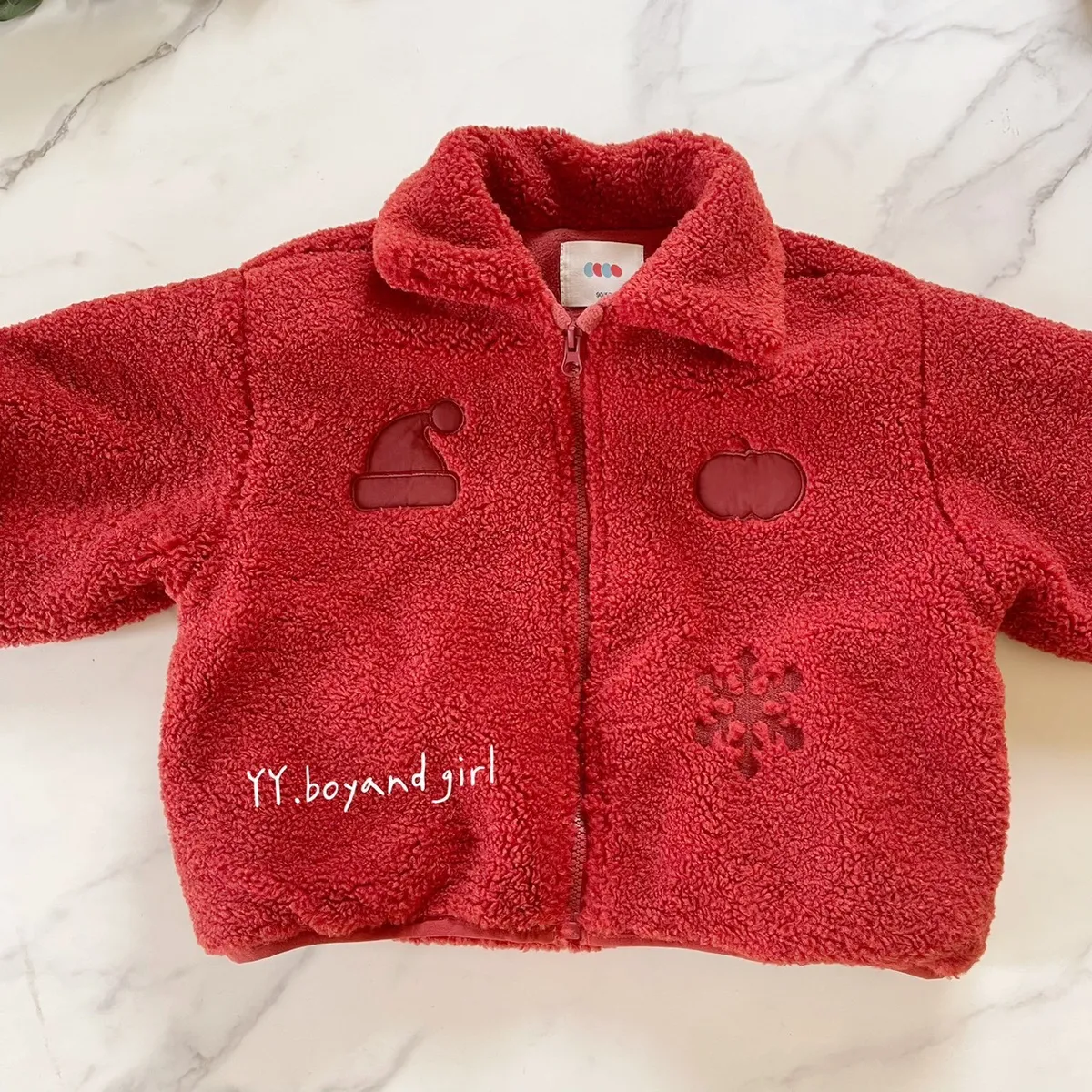 有三個圖案, 聖誕帽, 蘋果是貼布,