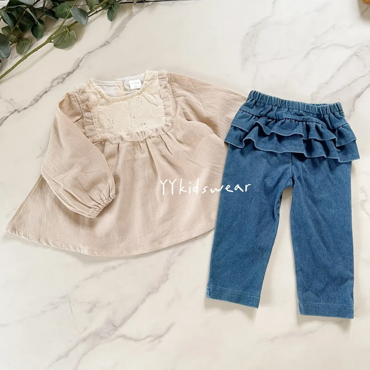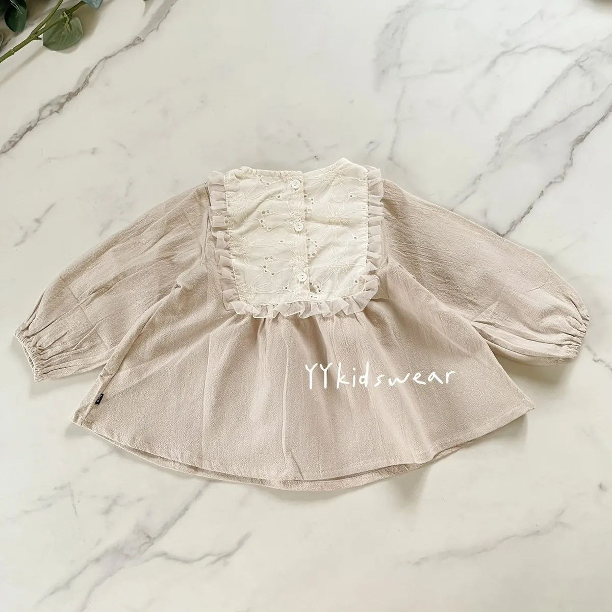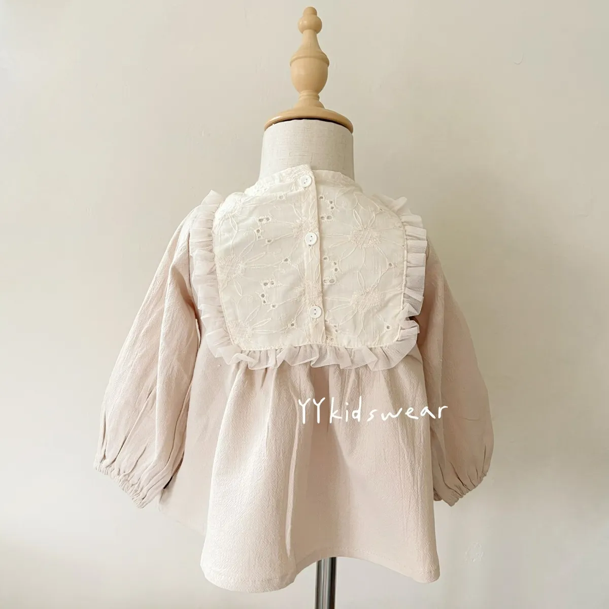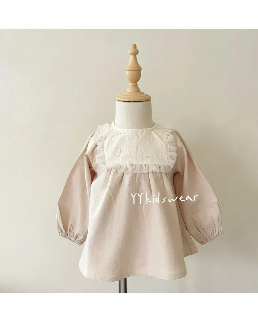 柔柔的杏奶色搭配立體刺繡蕾絲方領,