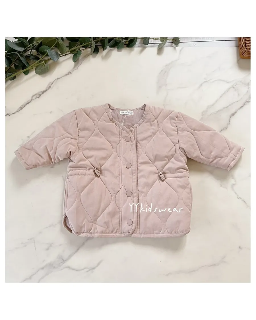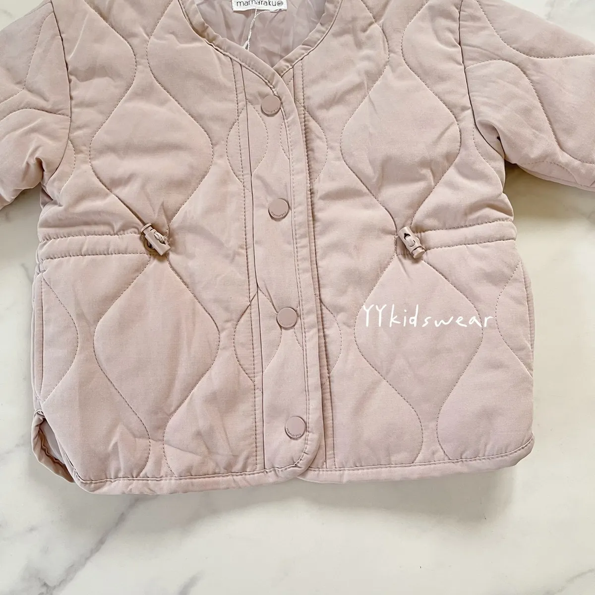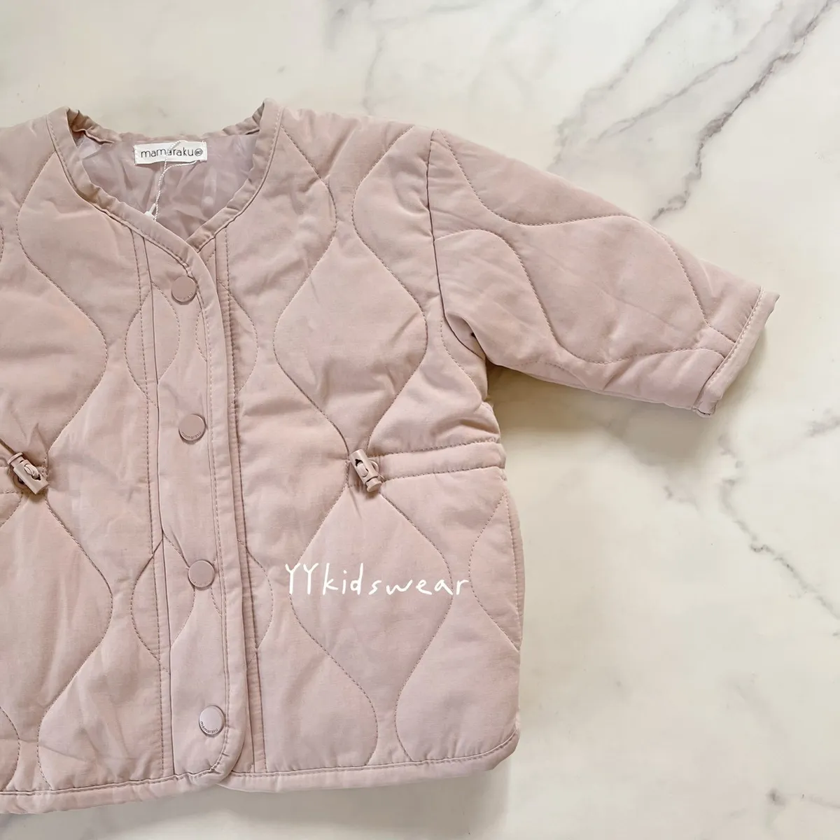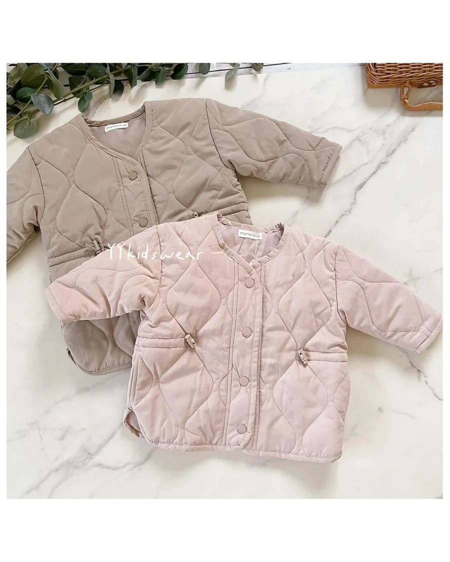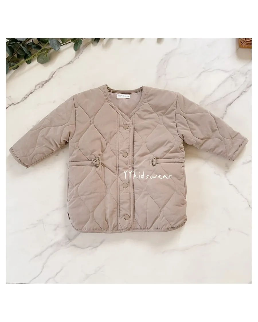 溫柔色系 奶霧粉/溫柔奶茶+波浪鋪棉線條,簡單設計, 顯氣質外套鋪棉、布料柔軟、穿起來不厚重,兩側有抽繩設計, 拉緊顯腰身, 還有兩個小口袋,實用度滿滿材質: 表布60%棉+40%尼龍裡布:94%聚酯纖維+6%棉彈力: 無