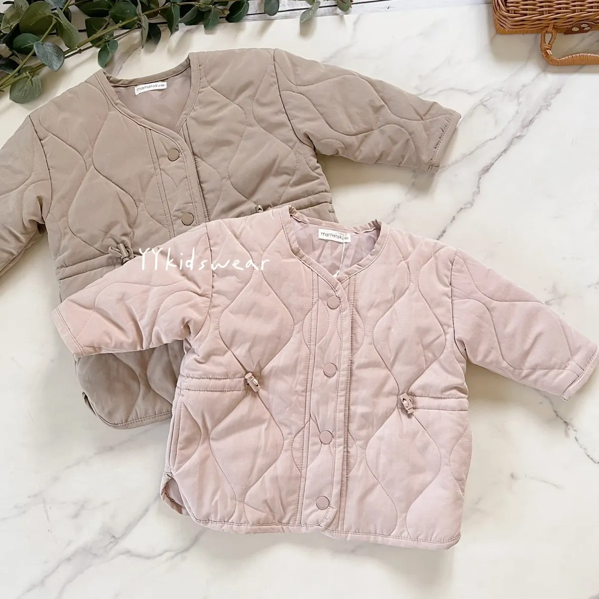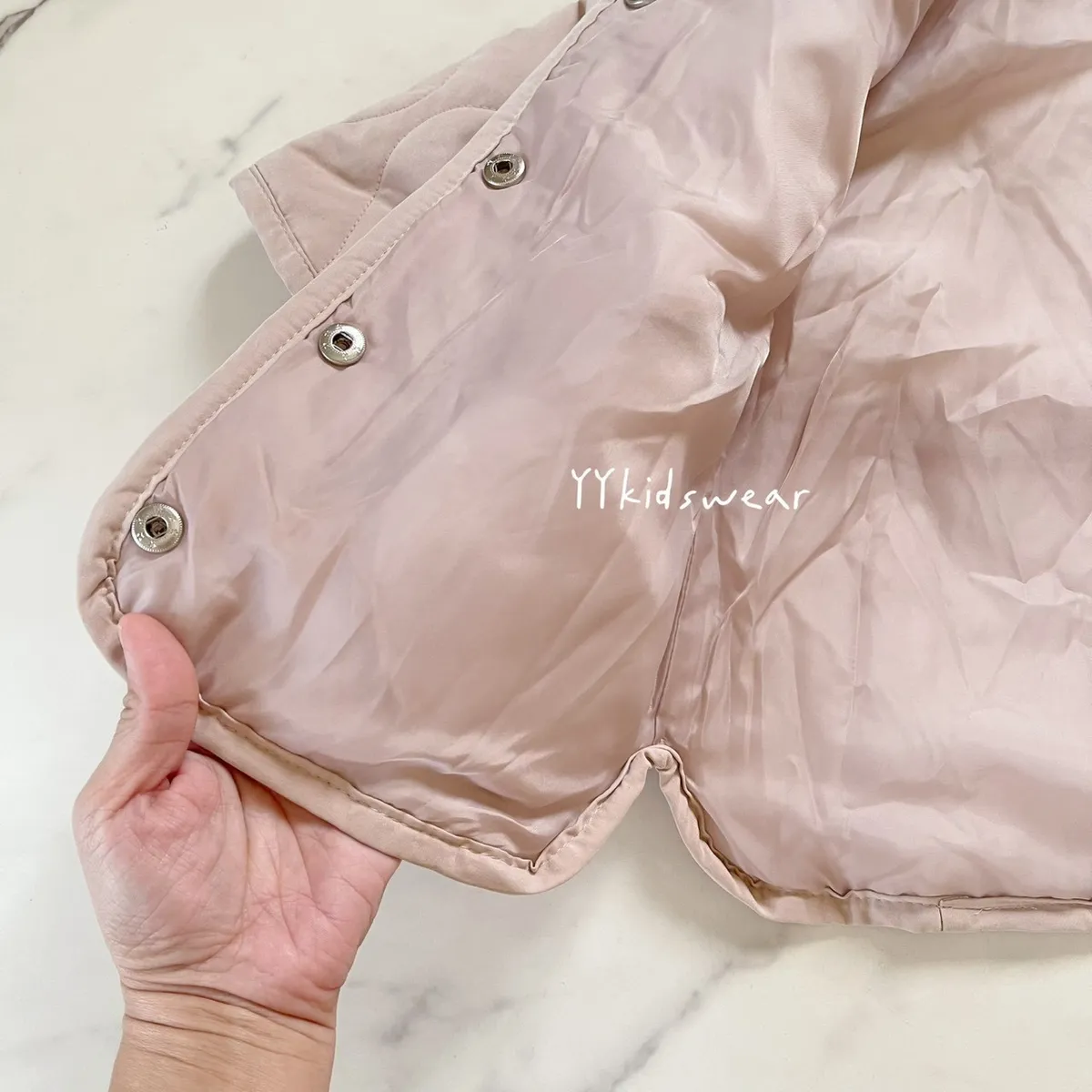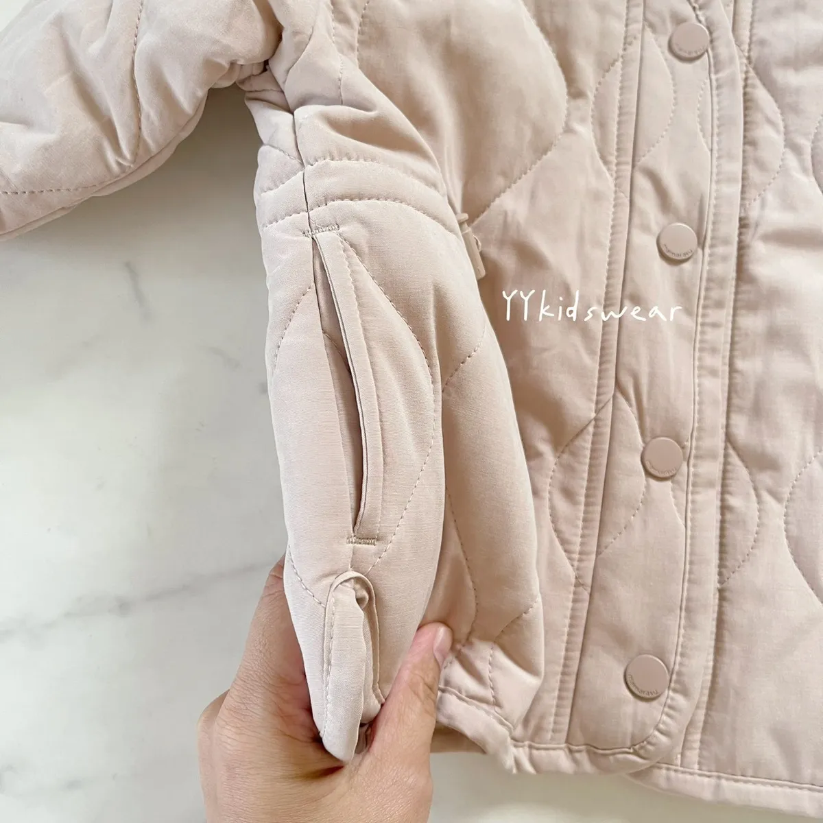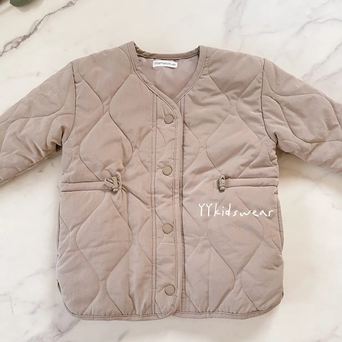 溫柔色系 奶霧粉/溫柔奶茶+波浪鋪棉線條,簡單設計, 顯氣質外套鋪棉、布料柔軟、穿起來不厚重,兩側有抽繩設計, 拉緊顯腰身, 還有兩個小口袋,實用度滿滿材質: 表布60%棉+40%尼龍裡布:94%聚酯纖維+6%棉彈力: 無