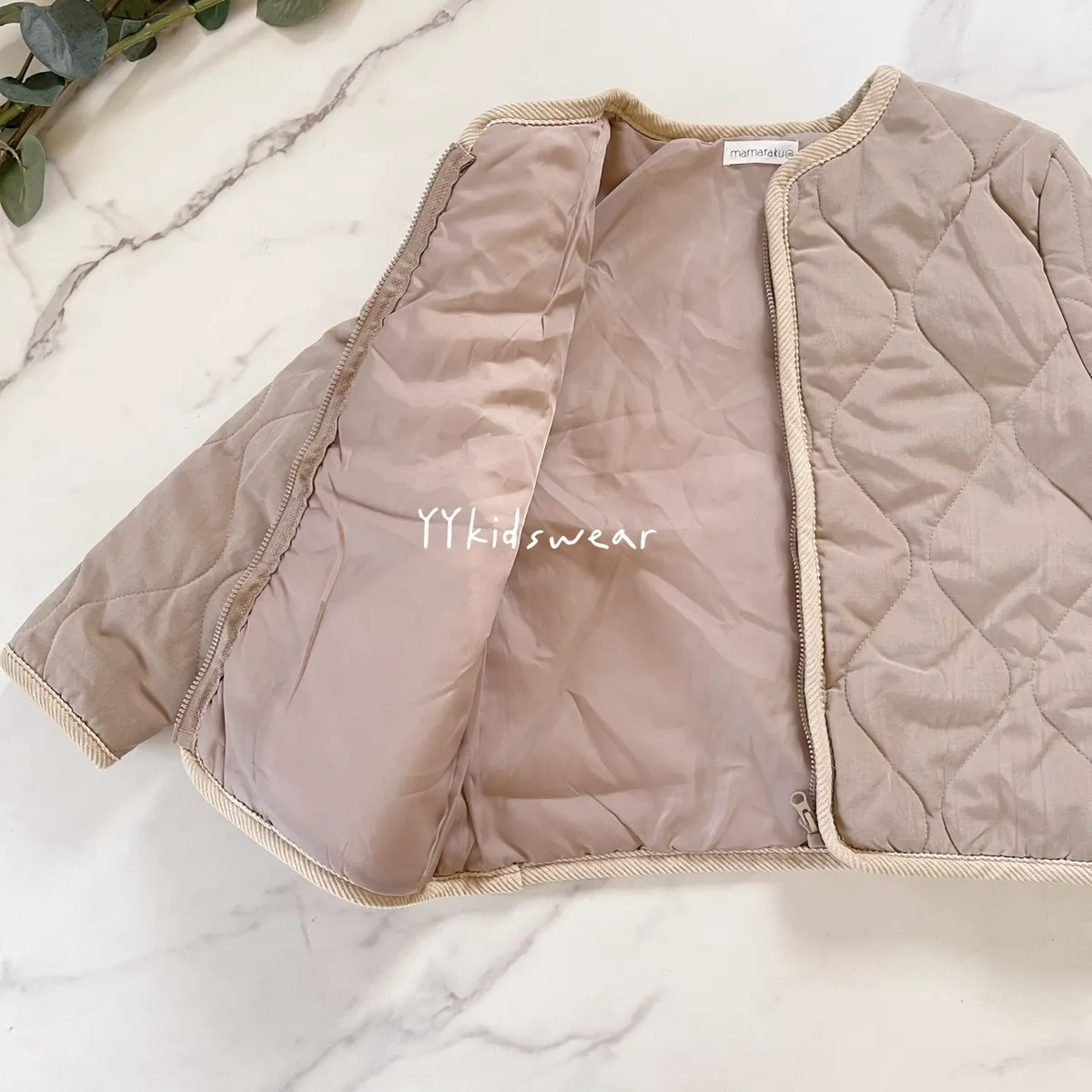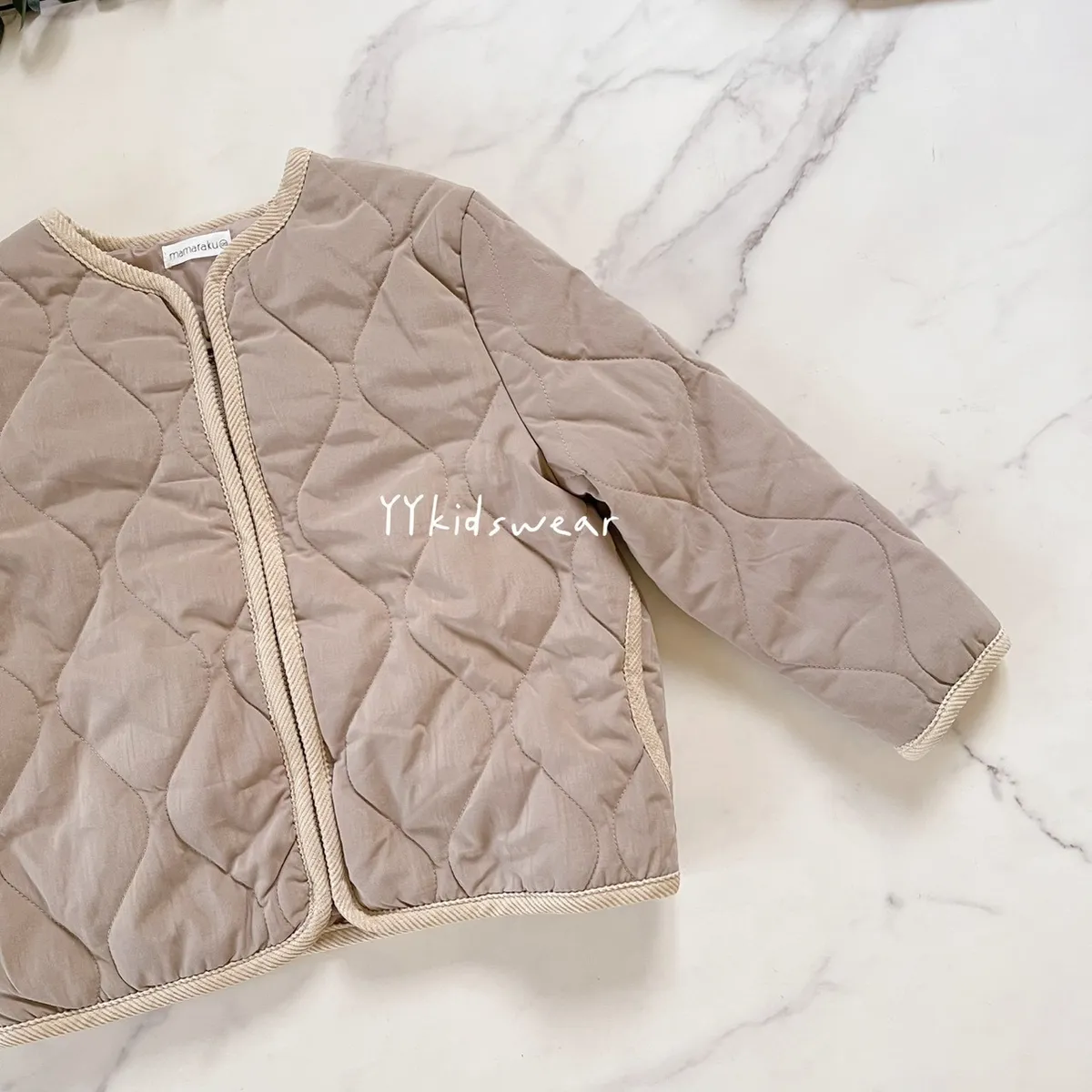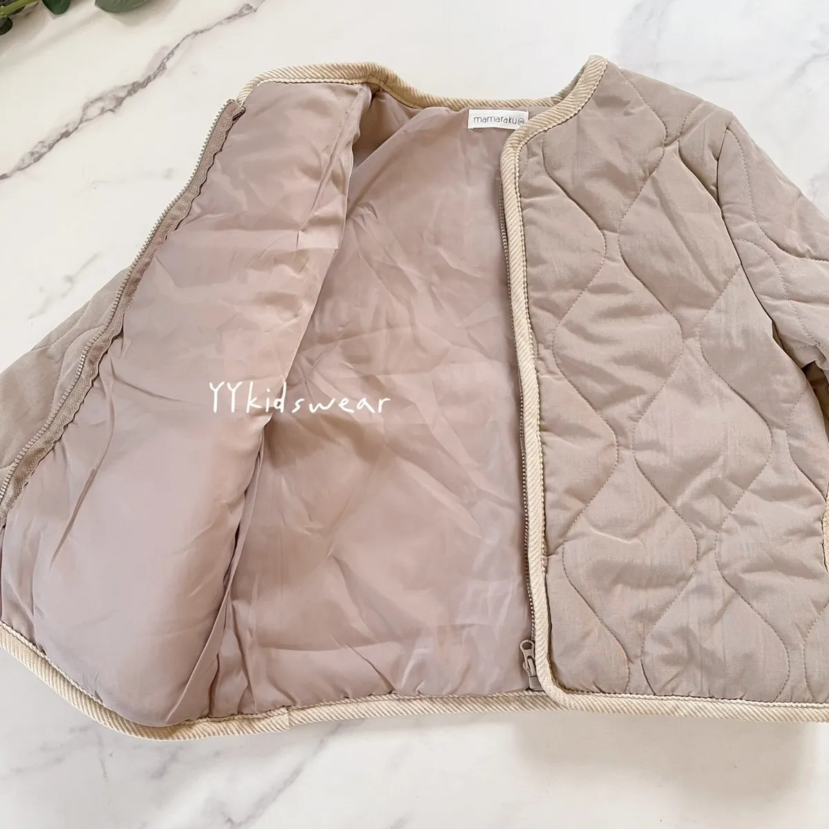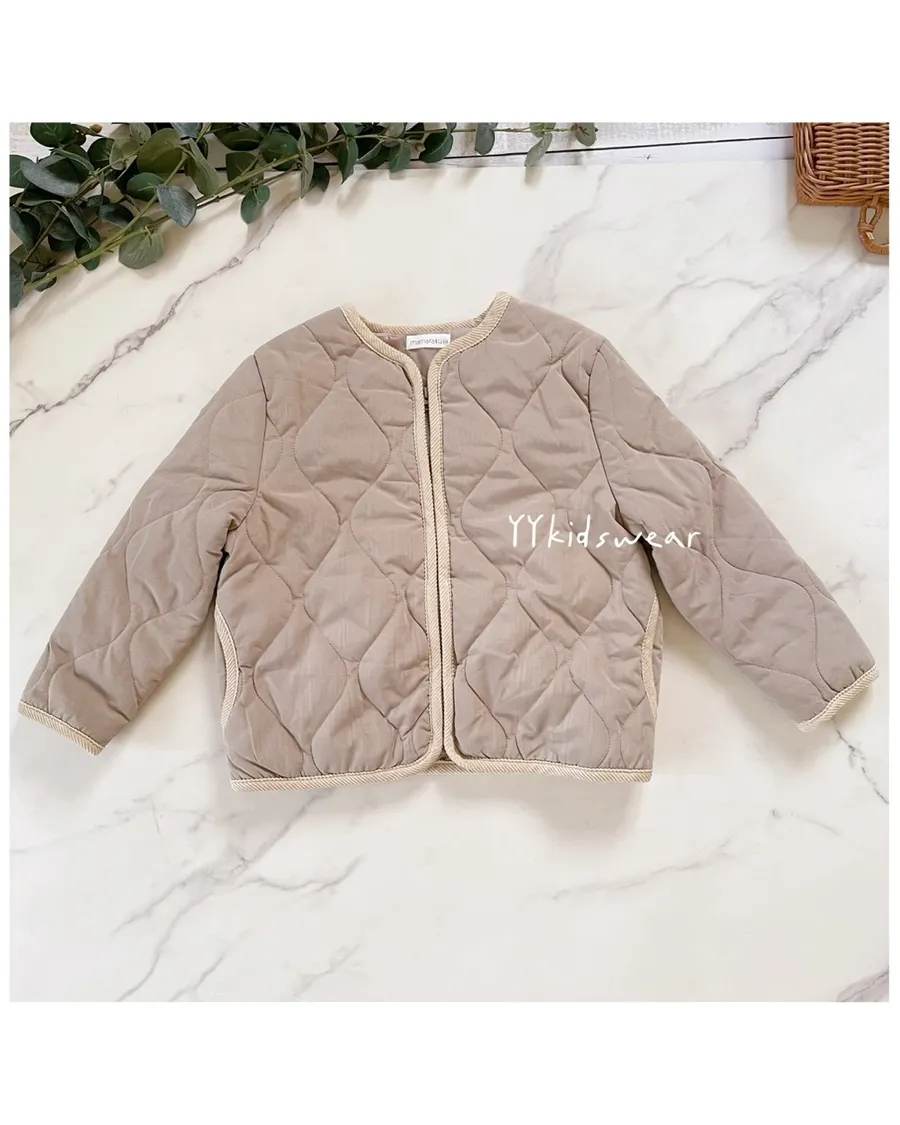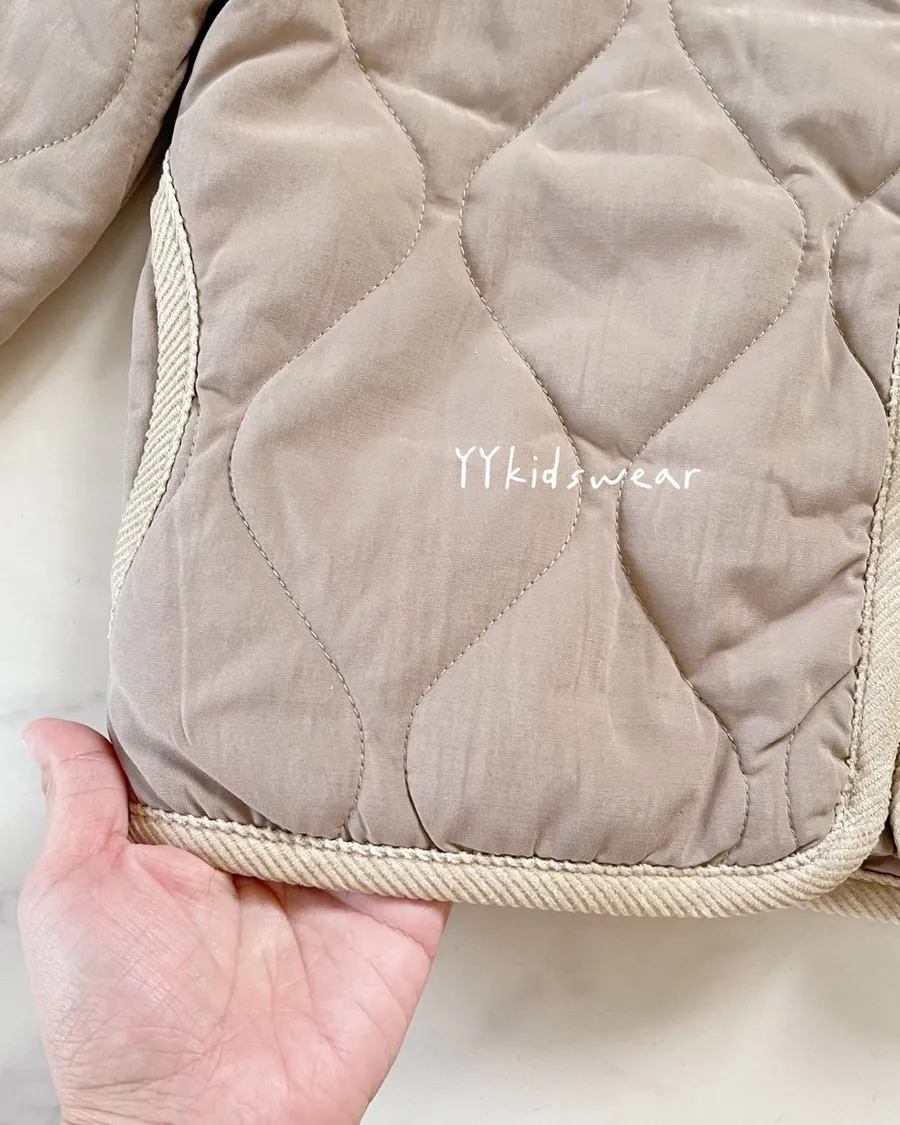 日單質感奶茶壓紋鋪棉拉鍊外套