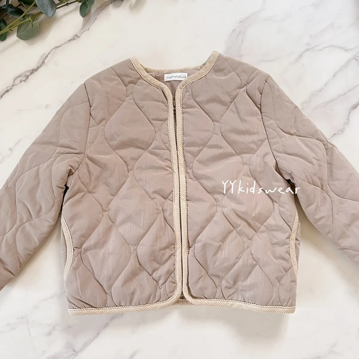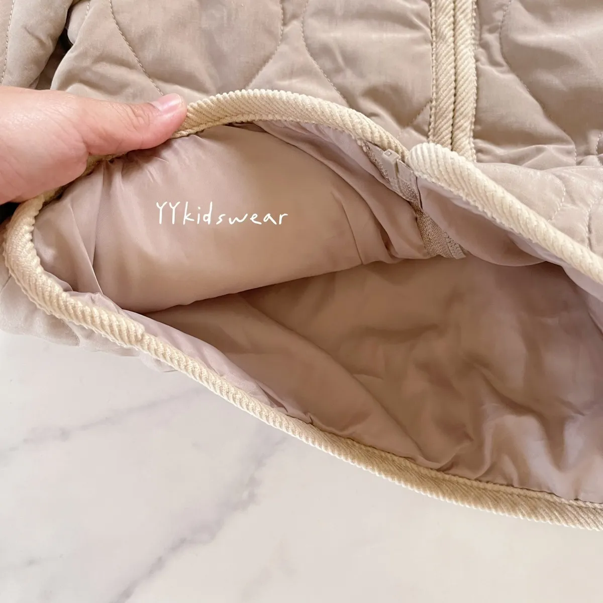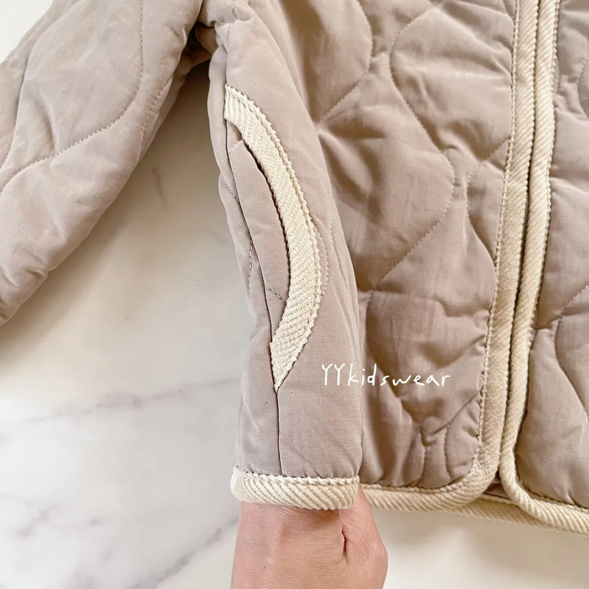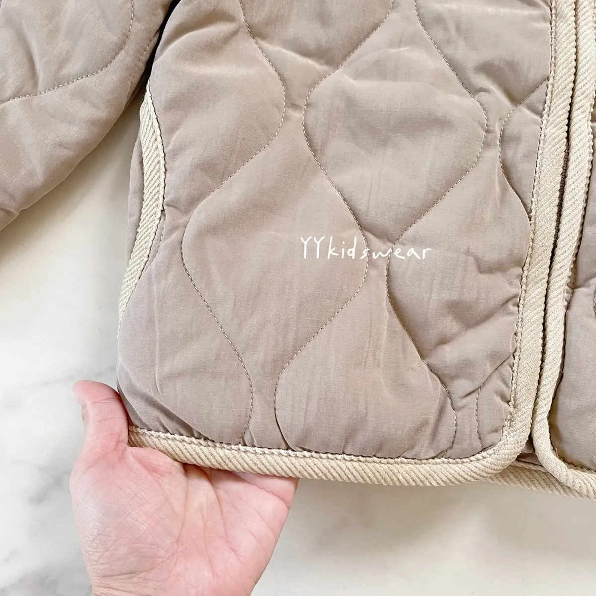 日單質感奶茶壓紋鋪棉拉鍊外套