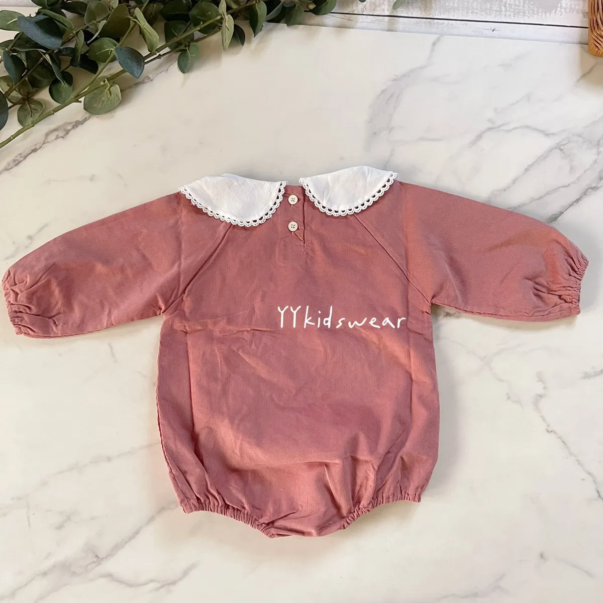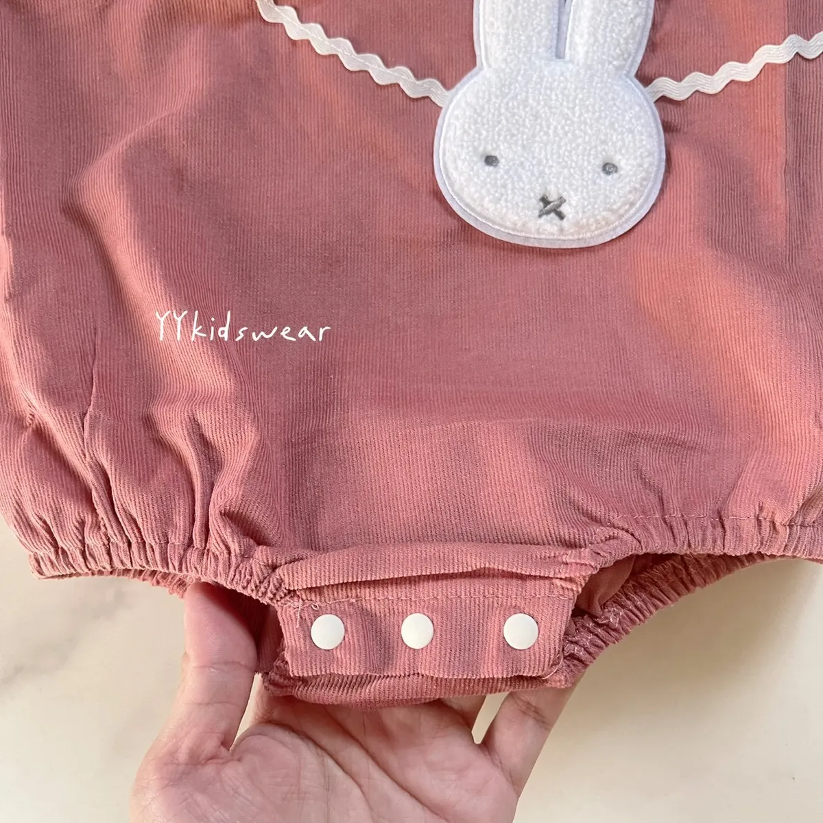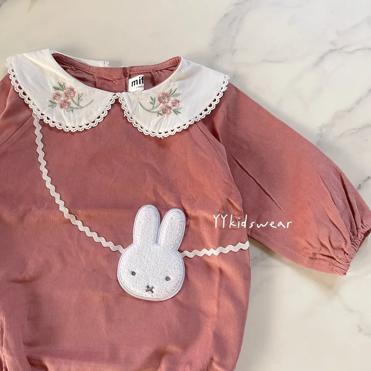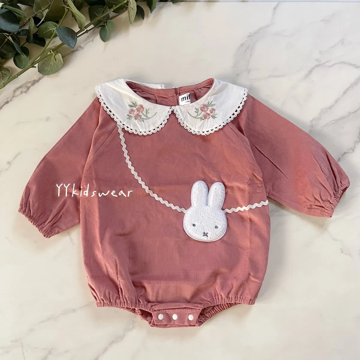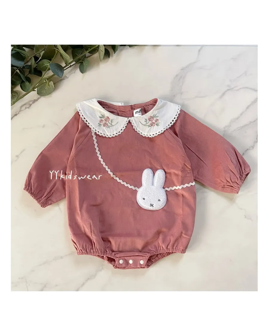 日單米菲豆沙粉玫瑰刺繡包屁衣