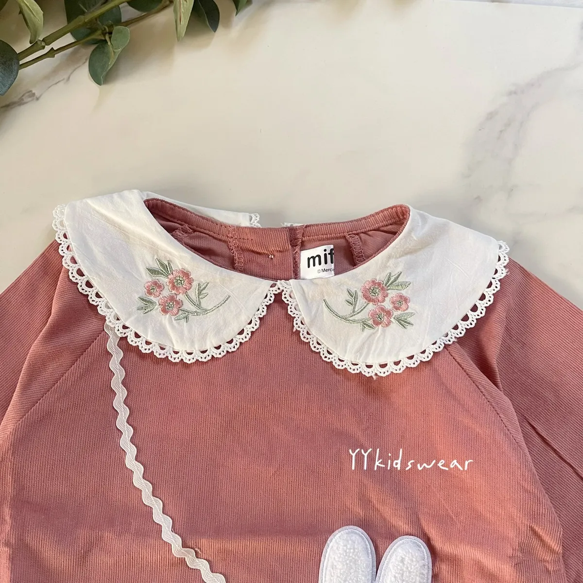 豆沙粉超氣質, 領口還有玫瑰刺繡, 甜而不俗❤