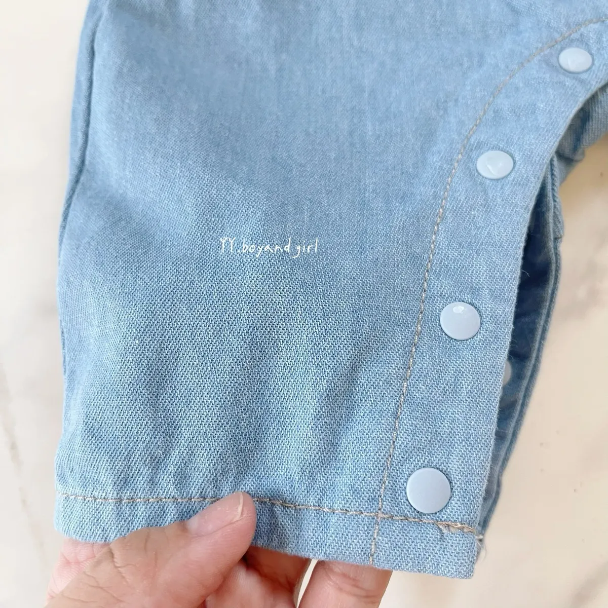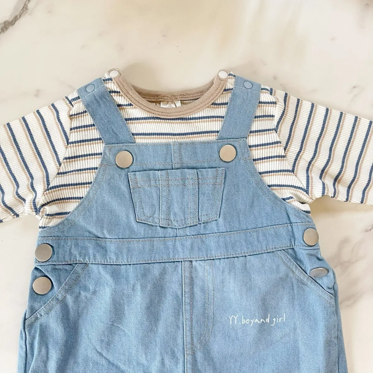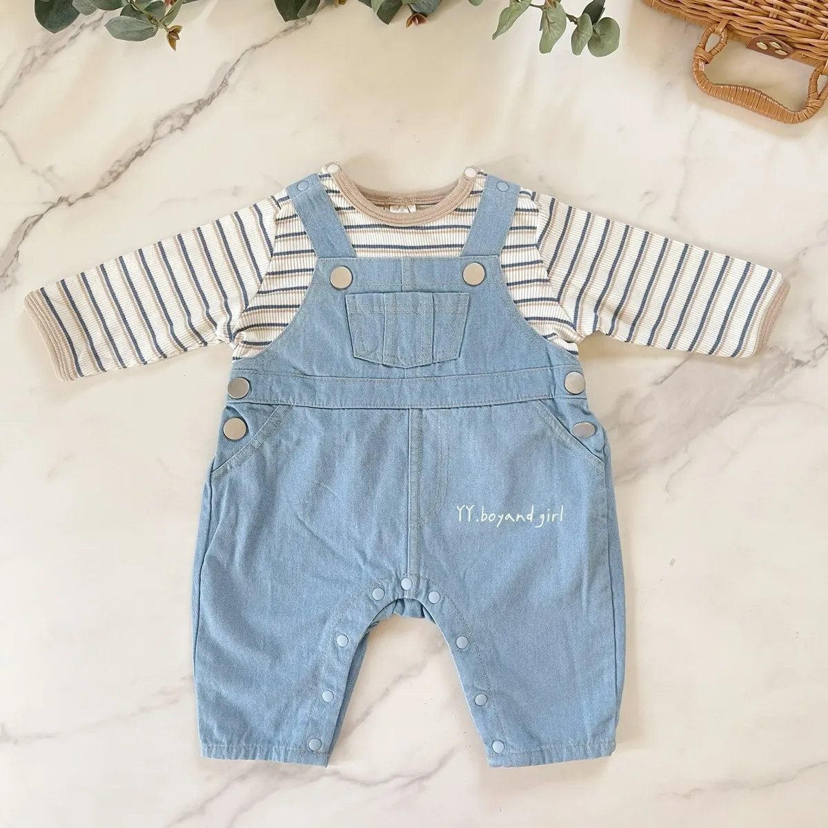 中性款,男女寶都可穿純棉材質,條紋配牛仔的造型很時髦,這件的質感很好,假兩件吊帶造型很方便, 適合小寶寶的外出服~