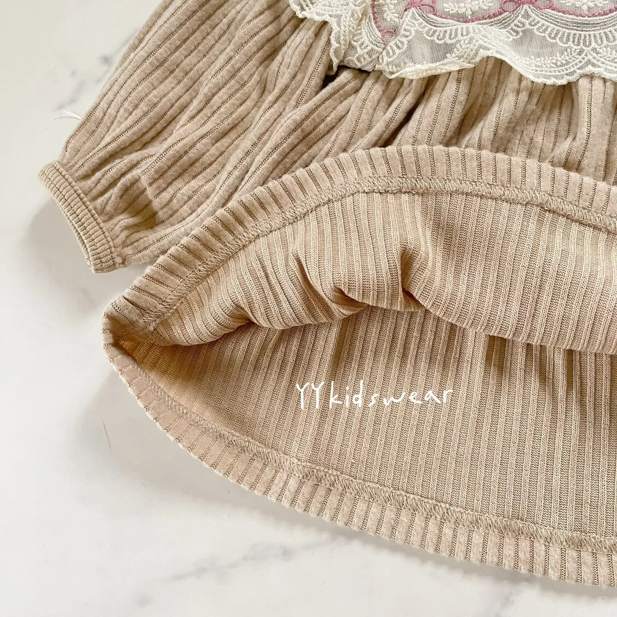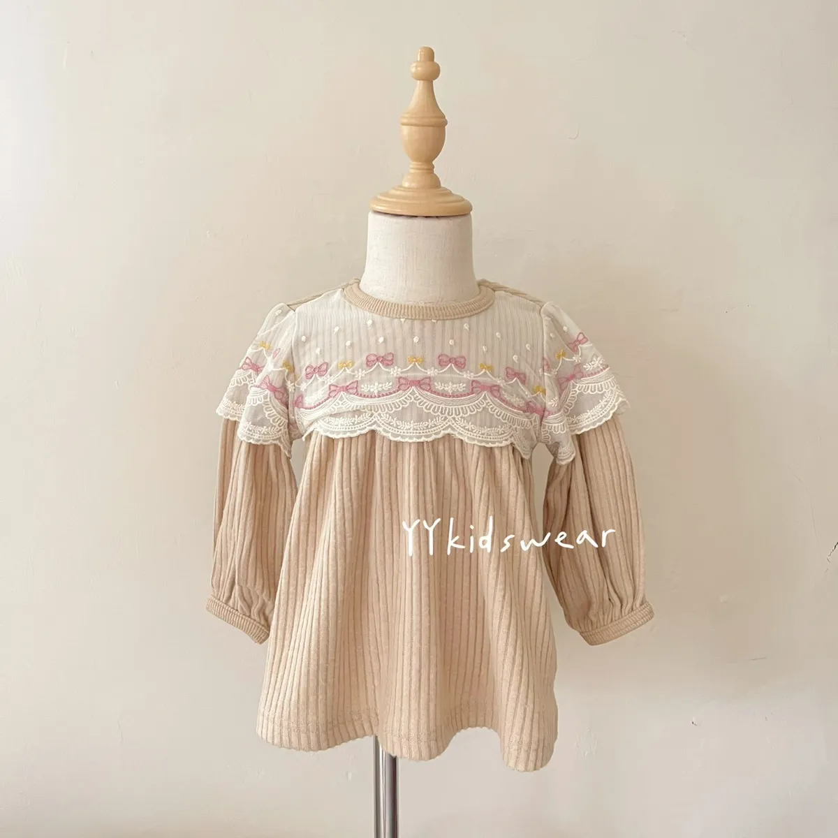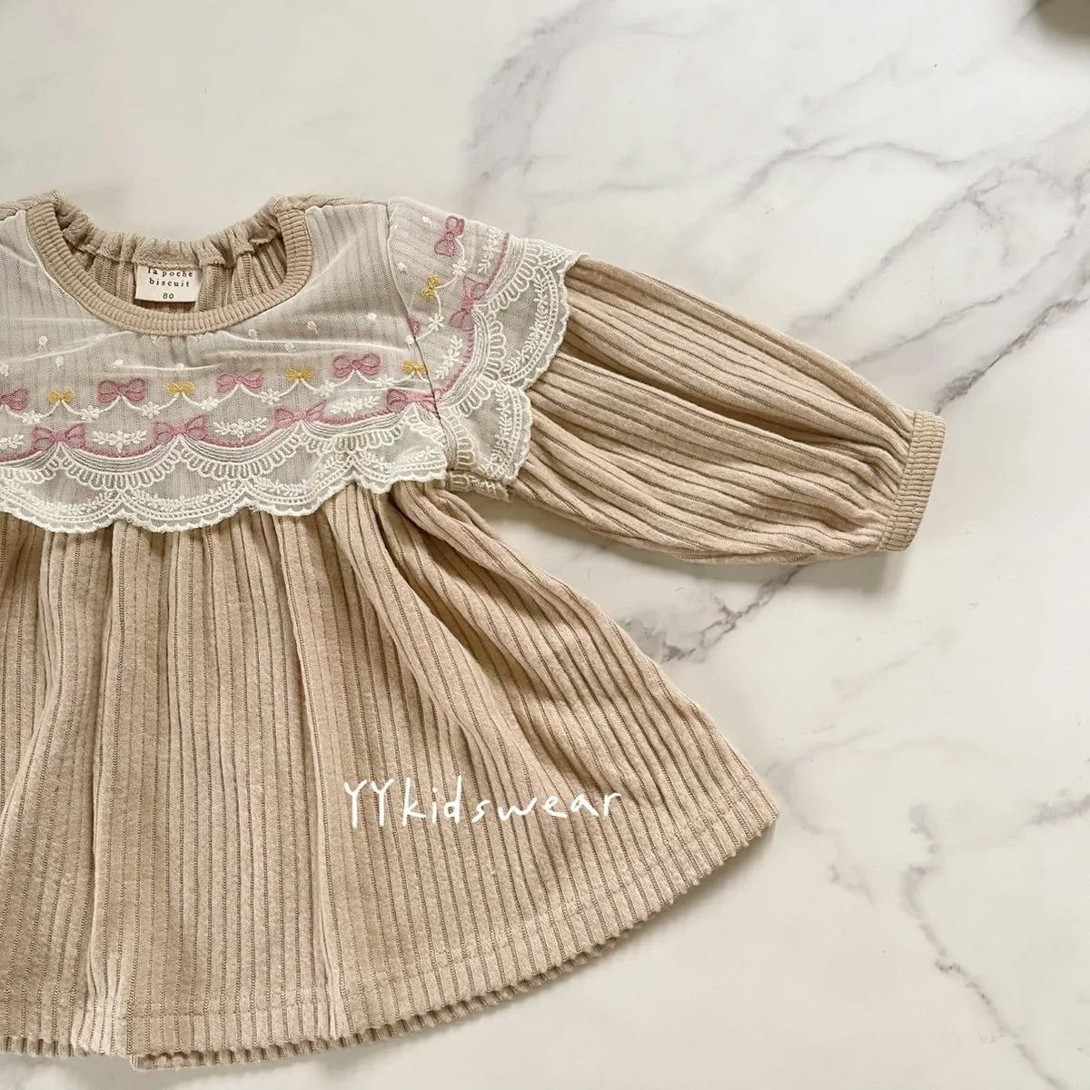 表布磨髦感, 上身拼接細緻蕾絲、粉嫩小蝴蝶結、點點珍珠刺繡,