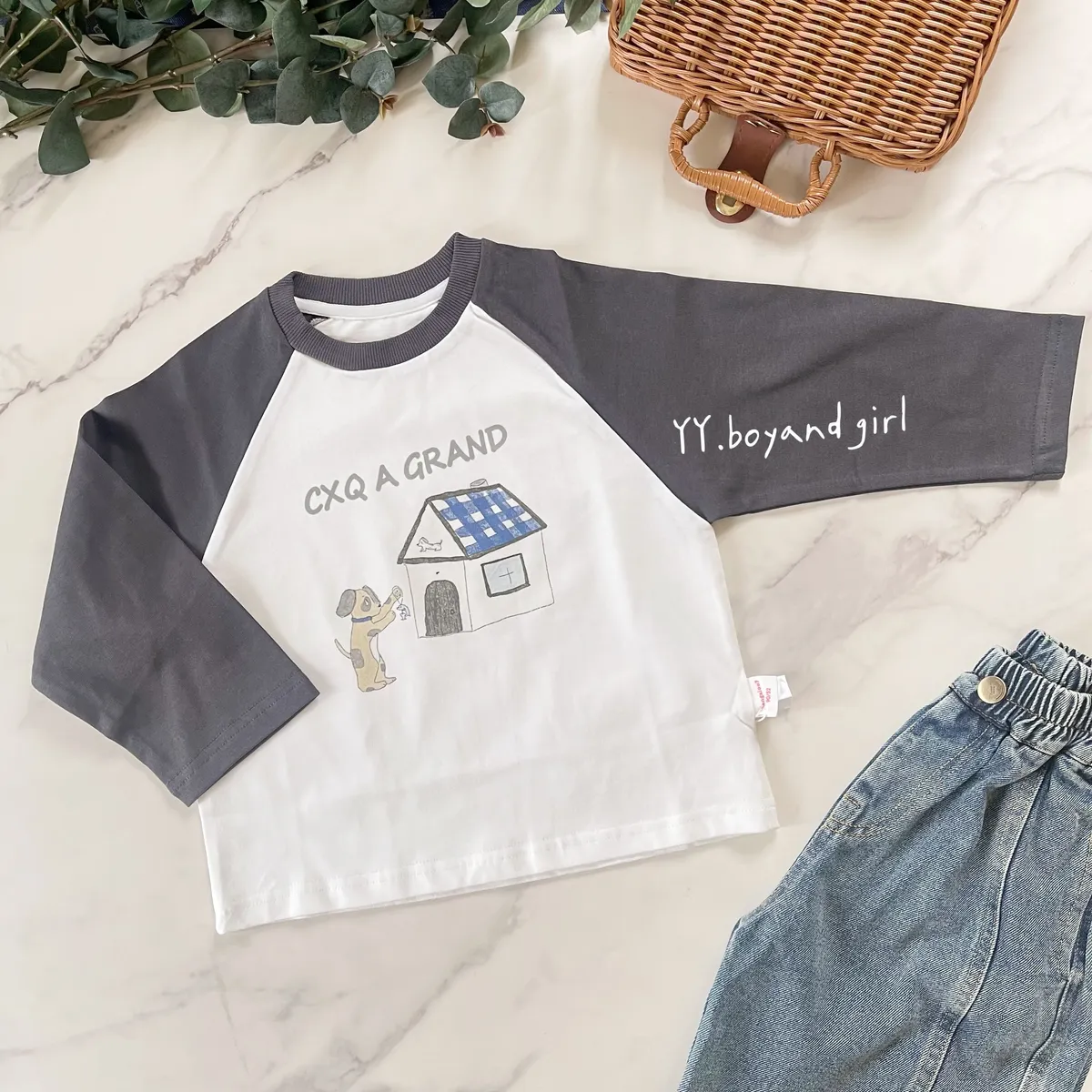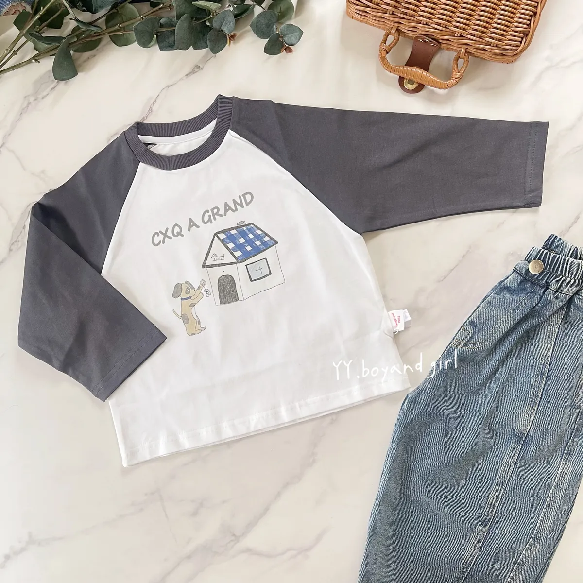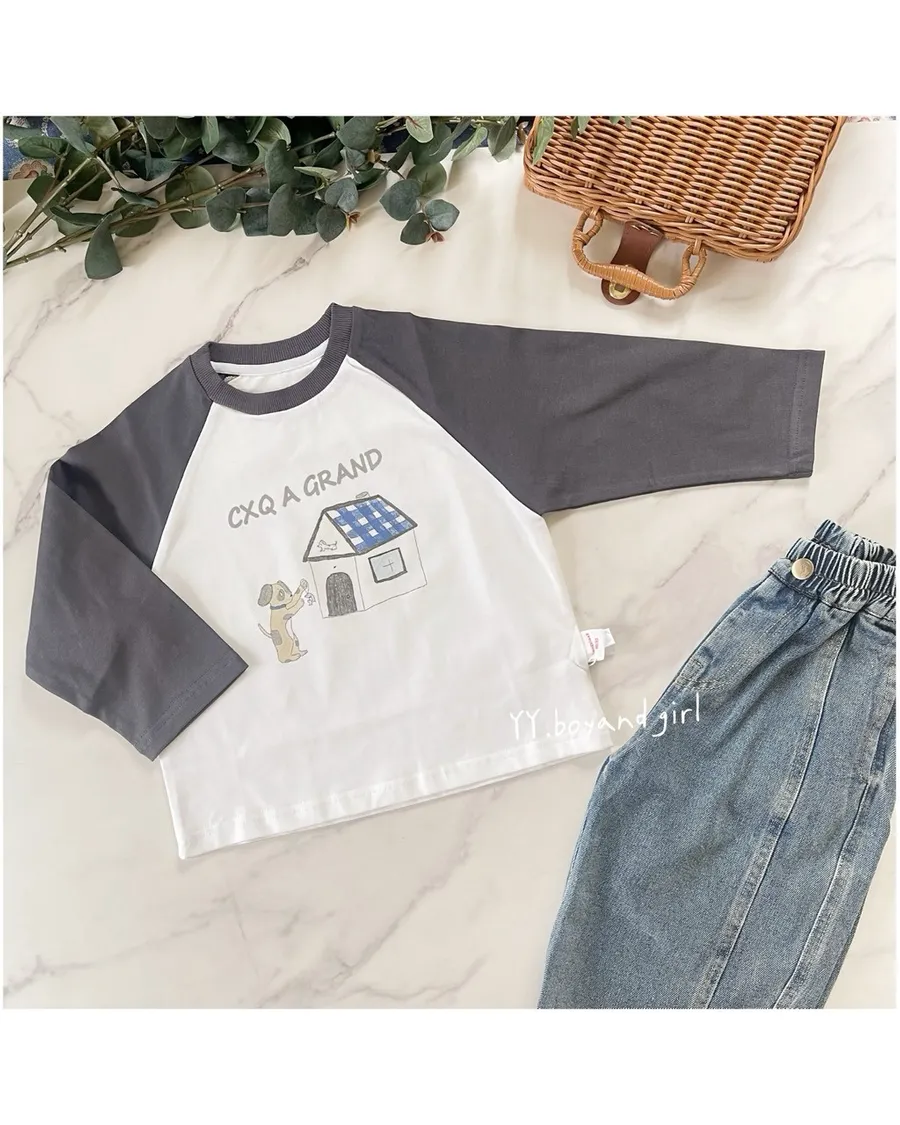 薄款純棉長袖上衣, 有彈性,現在的天氣穿很適合,質感灰 X 奶油白 顏色搭配很高級,隨意搭上牛仔褲或是休閒衛褲就很好看