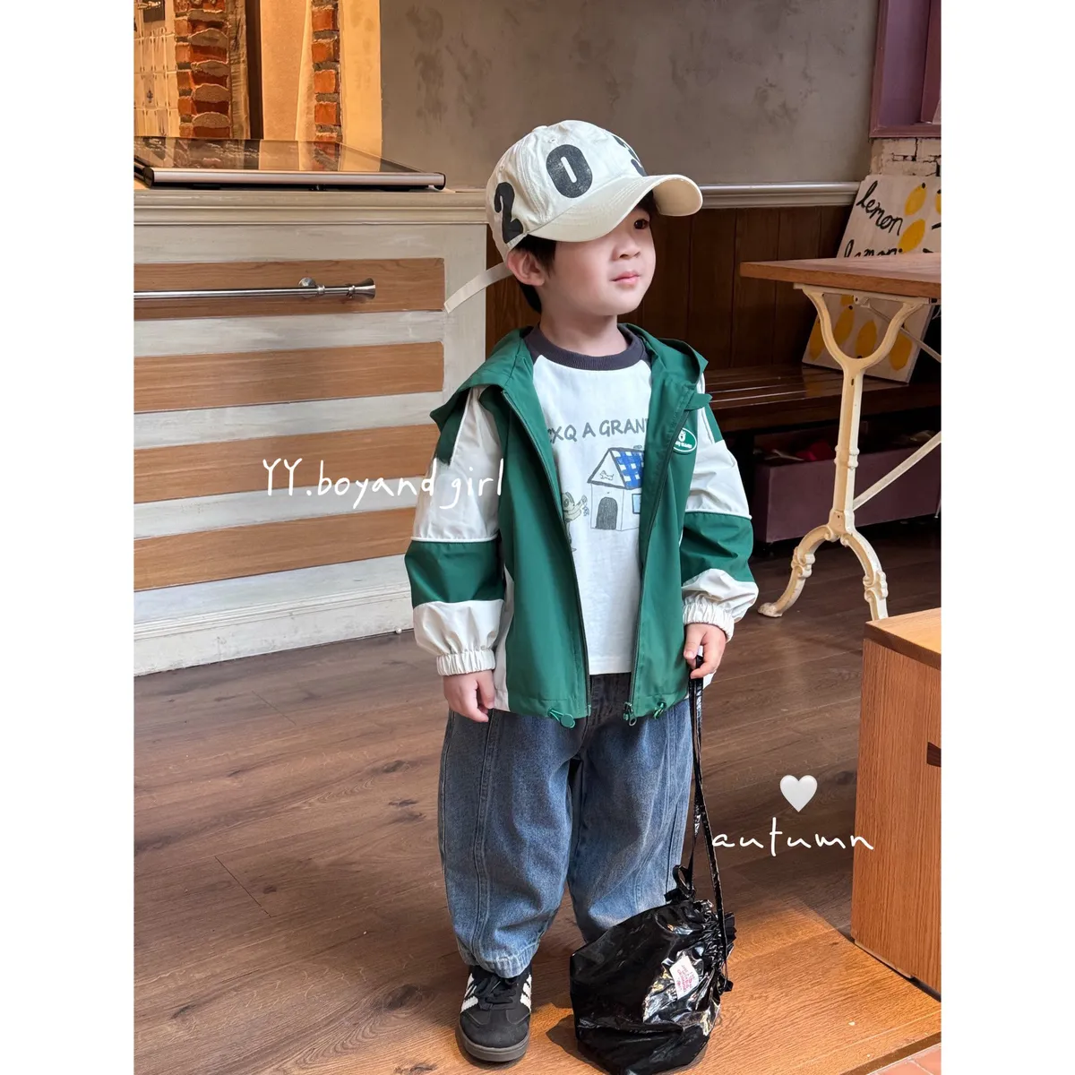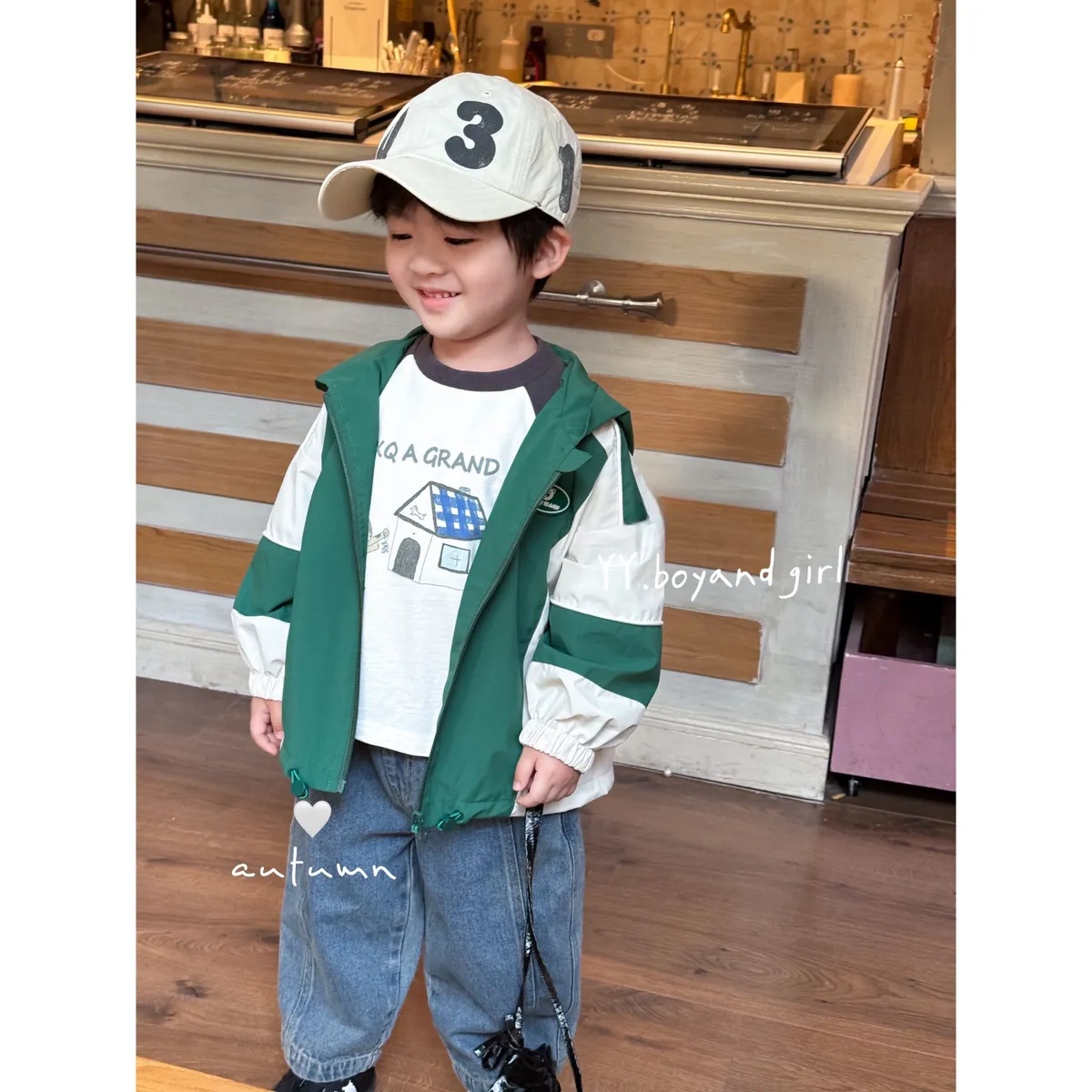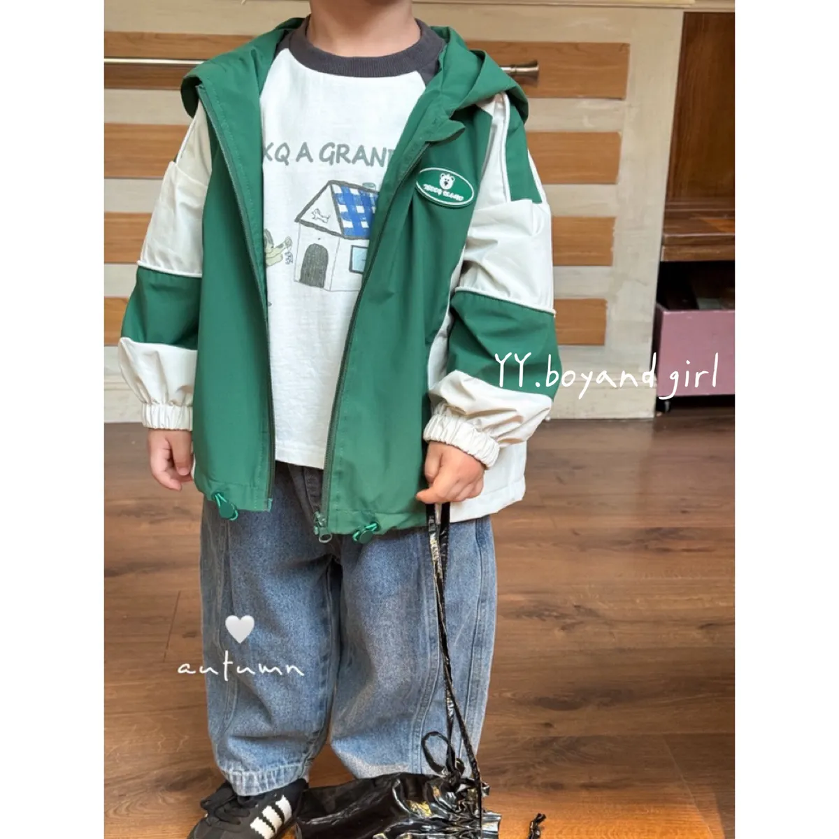 薄款純棉長袖上衣, 有彈性,現在的天氣穿很適合,質感灰 X 奶油白 顏色搭配很高級,隨意搭上牛仔褲或是休閒衛褲就很好看
