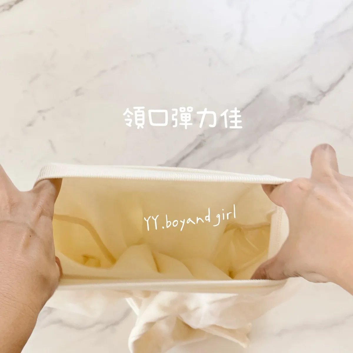 領口一樣大彈力, 可以輕鬆拉開套進去,