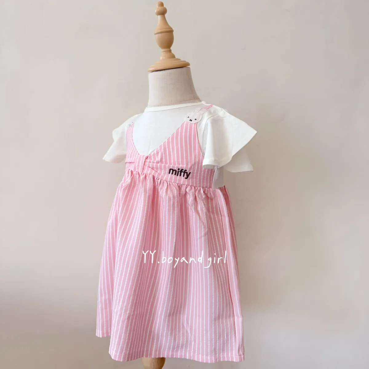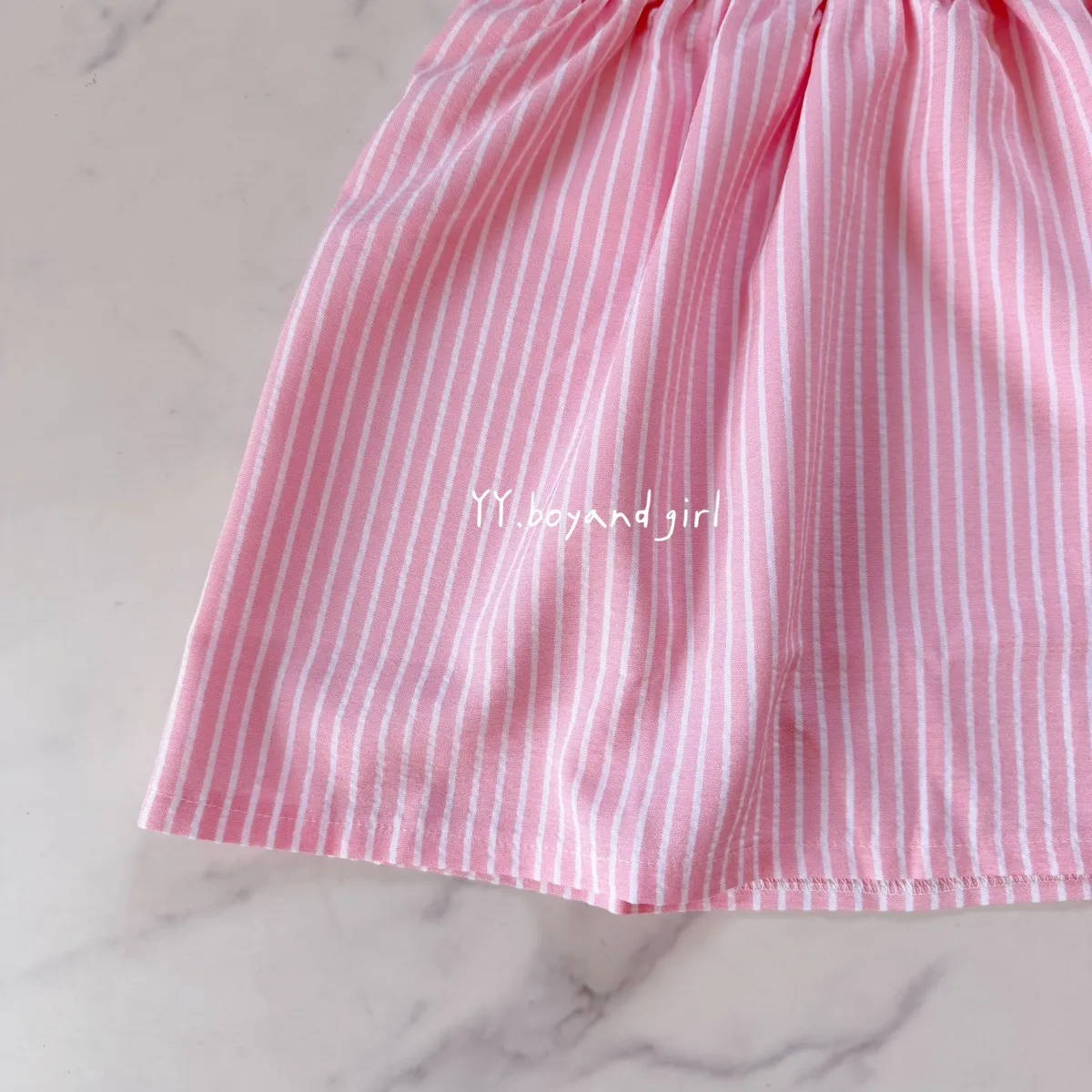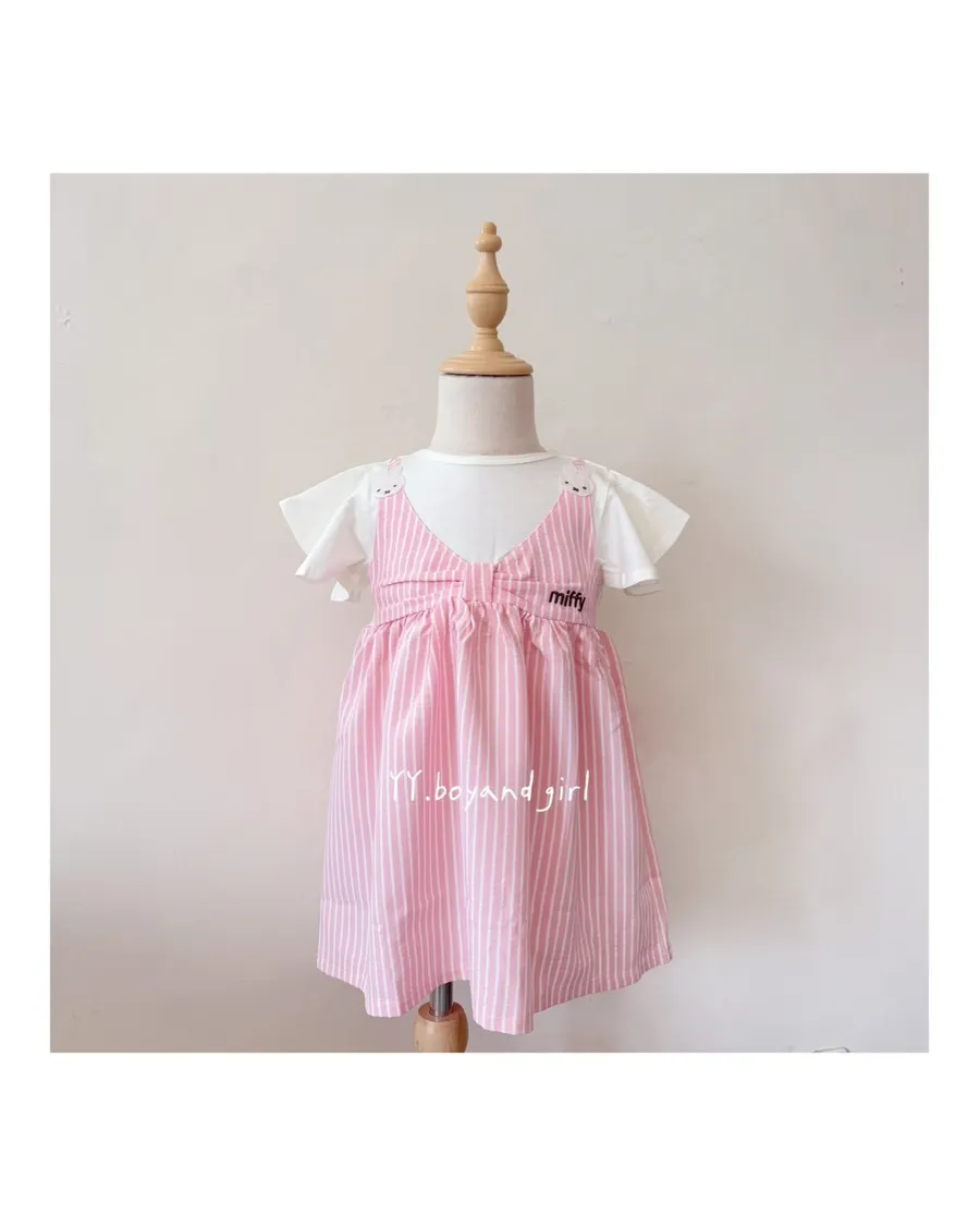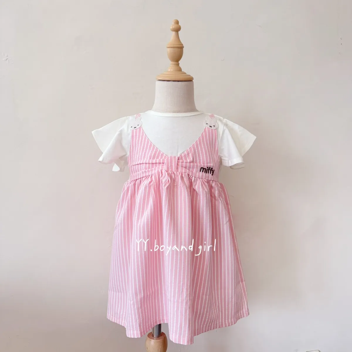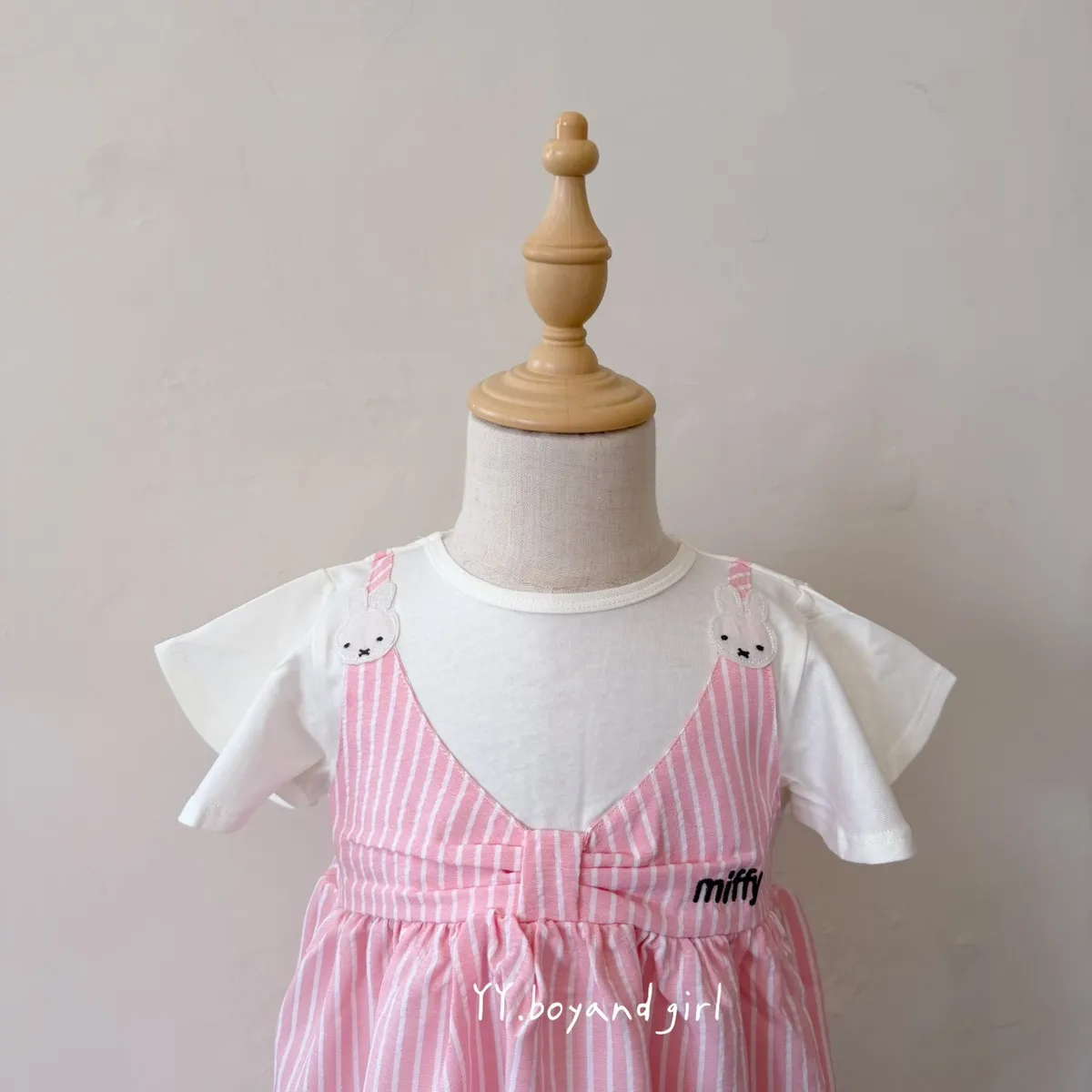 粉嫩細條紋+立體蝴蝶結