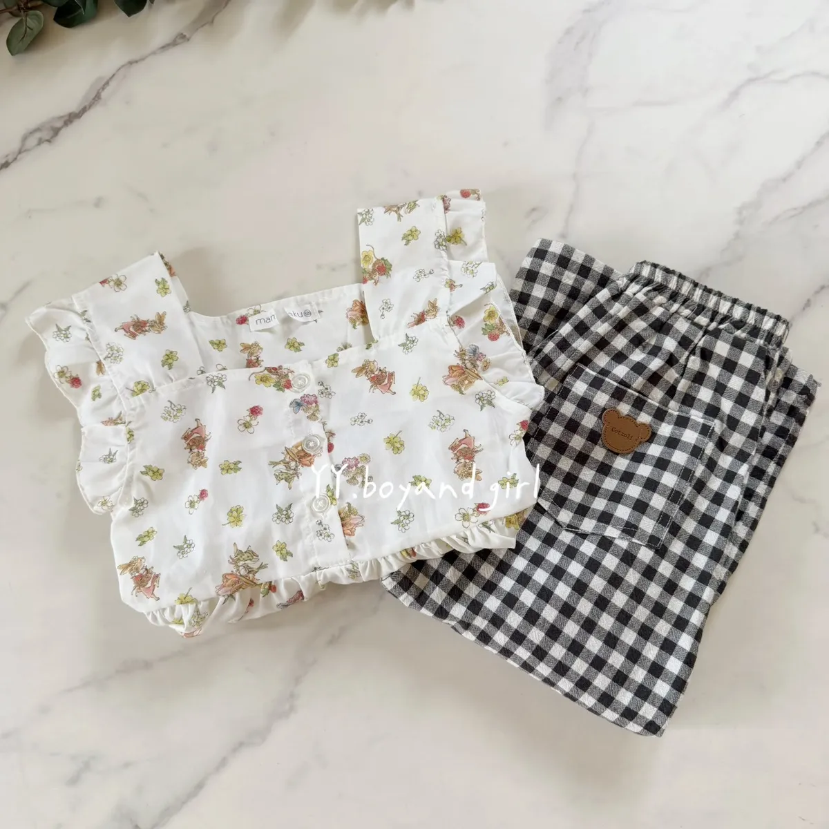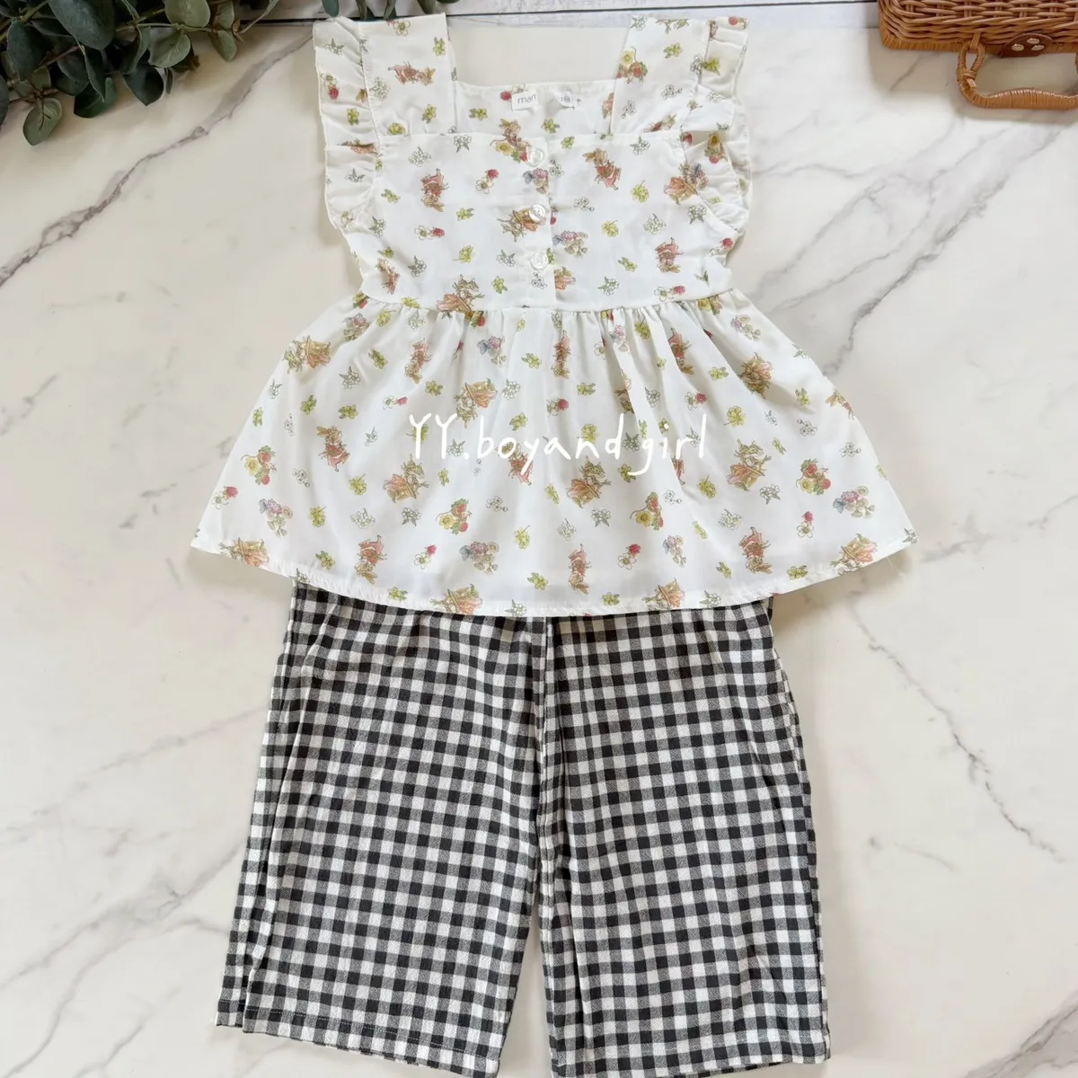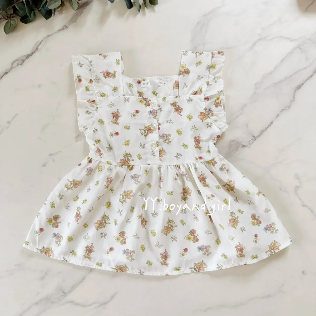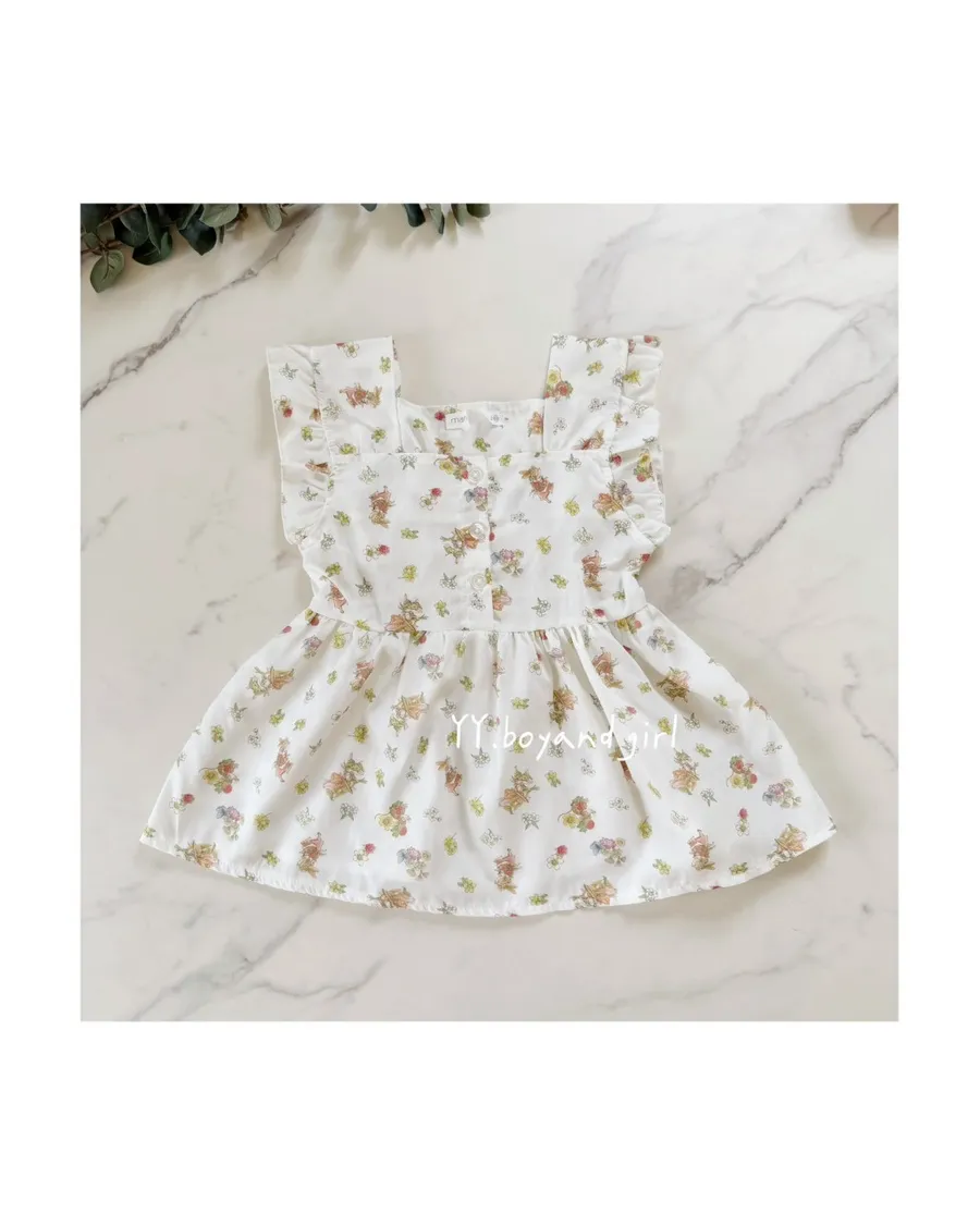 ✨mama 家的衣服懂得都懂 (稀有少量款)布料是薄款透氣襯衫的那種布料森林系花園小兔子 = 小女孩的夢幻上衣搭配荷葉肩與排扣設計,是夏日裡最迷人的小清新穿搭 ~搭配牛仔短褲、長褲都超適合,百搭實穿又好看 標籤: 有剪標