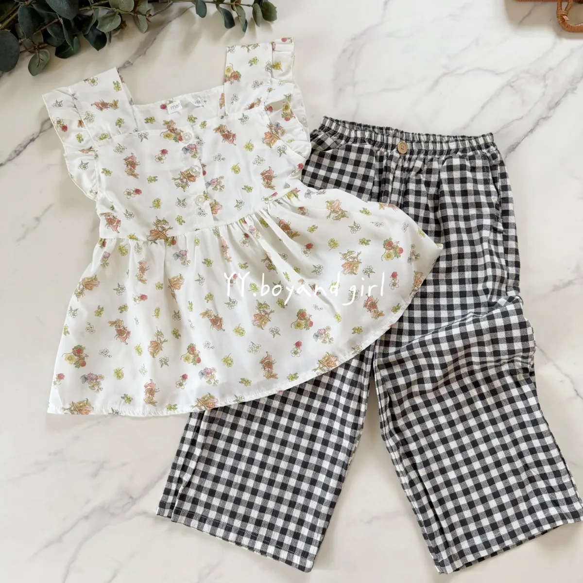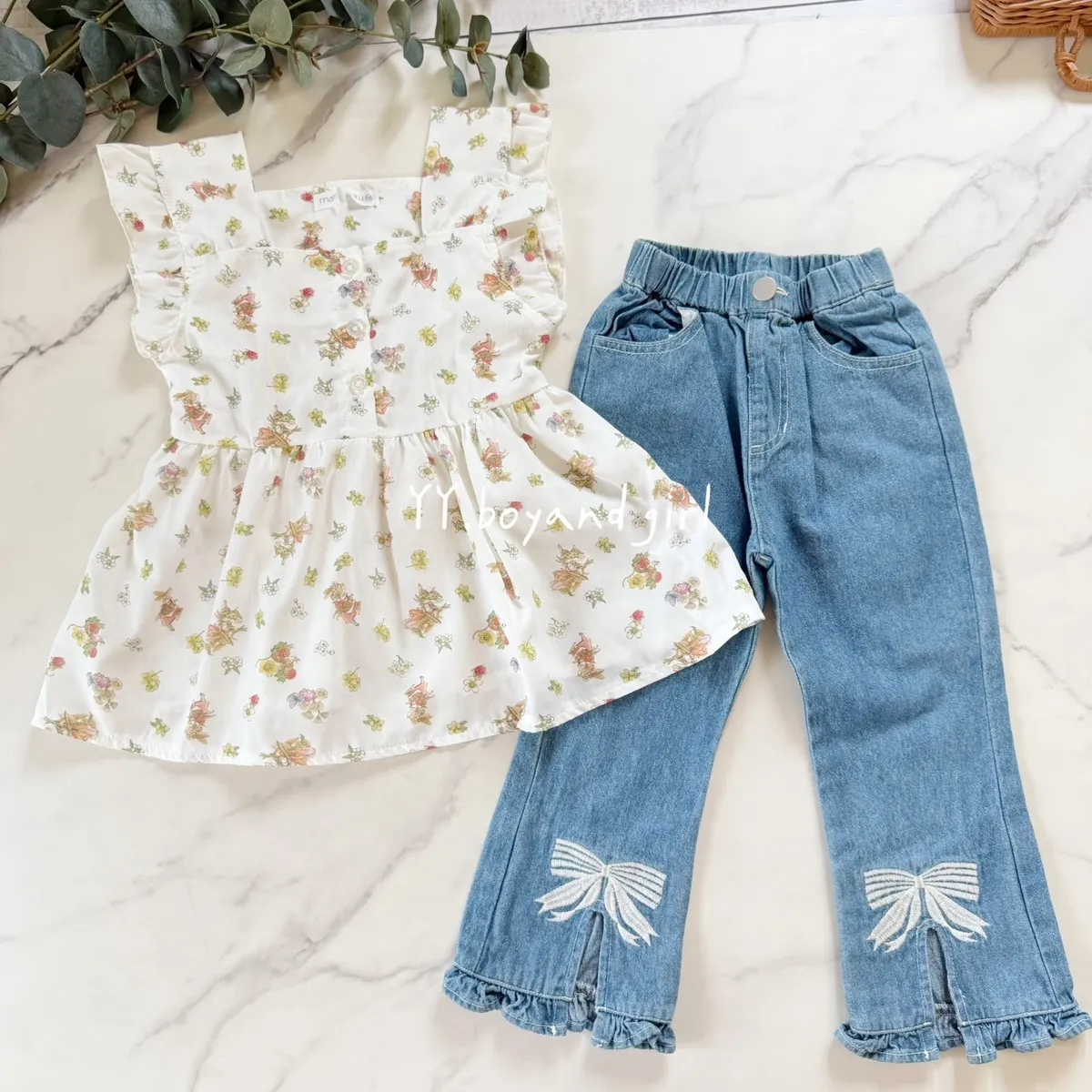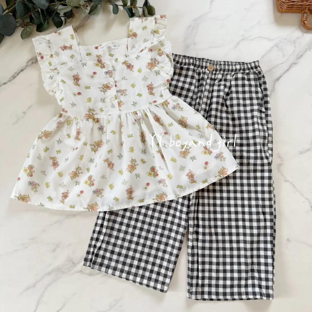 ✨mama 家的衣服懂得都懂 (稀有少量款)布料是薄款透氣襯衫的那種布料森林系花園小兔子 = 小女孩的夢幻上衣搭配荷葉肩與排扣設計,是夏日裡最迷人的小清新穿搭 ~搭配牛仔短褲、長褲都超適合,百搭實穿又好看 標籤: 有剪標