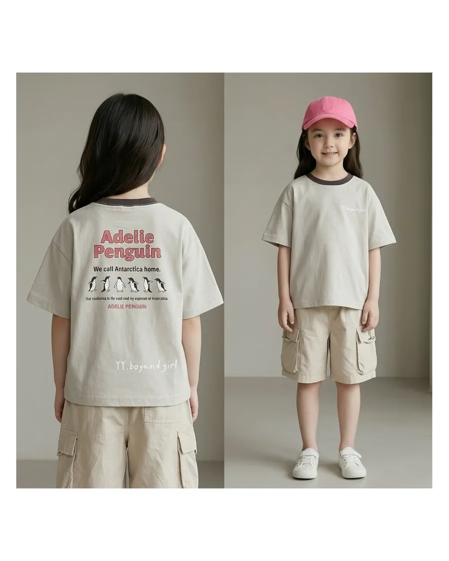👉 男寶女寶都可以穿! 夏天就是要一件舒服又有設計感的短T 短T不嫌多, 寶貝出門流汗就要換一件~ 這款用低飽和霧色系搭配背後 Adelie企鵝印花簡單卻有型不管是日常、上學、出遊一件就能穿出日系清爽感✨柔軟棉質|親膚不刺寬鬆版型|遮肉又好動前素後印|耐看又有重點百搭神T|怎麼搭都好看 材質: 純棉 注意: 有剪標