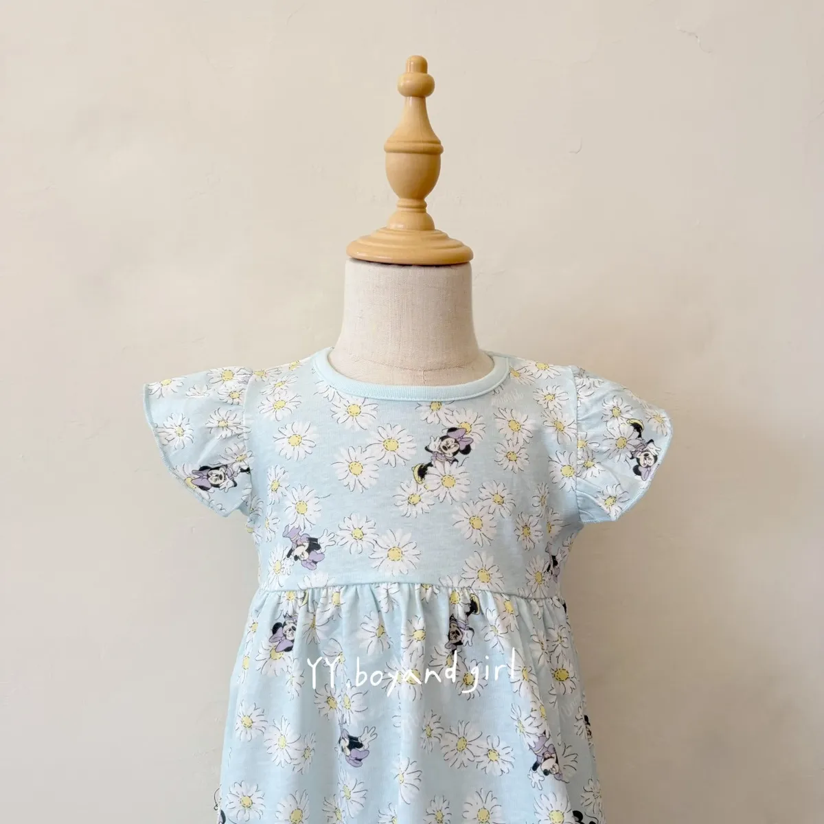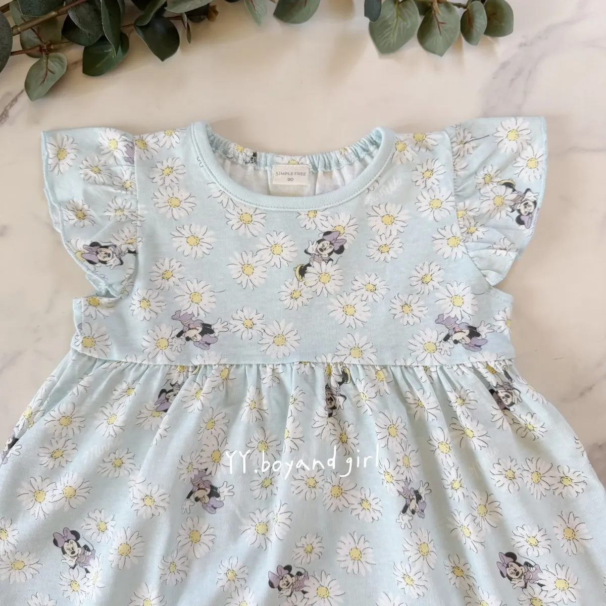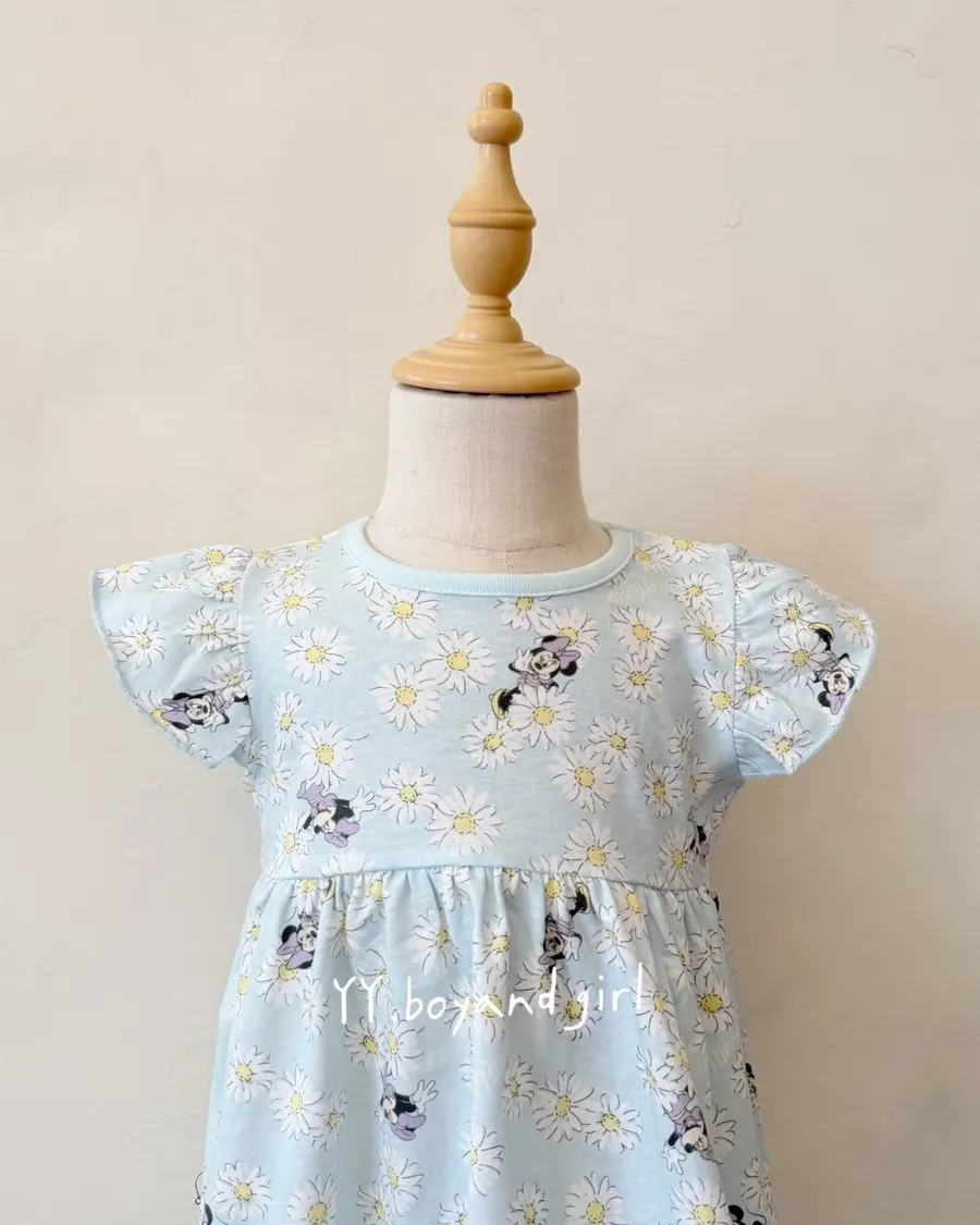 天藍底+小雛菊,清新又耐看 還有藏身在小雛菊裡面的米妮~ 微荷葉袖設計,甜美不浮誇高腰抓皺版型,修飾比例又好活動搭配可愛角色點綴,童趣剛剛好布料薄軟透氣, 摸起來柔軟親膚, 日常穿一整天也舒服單穿一件就很好看💙🧵 材質: 棉 60% + 聚酯纖維 40%
