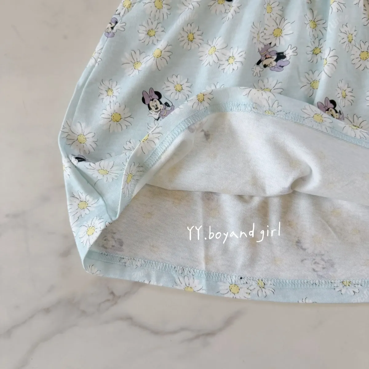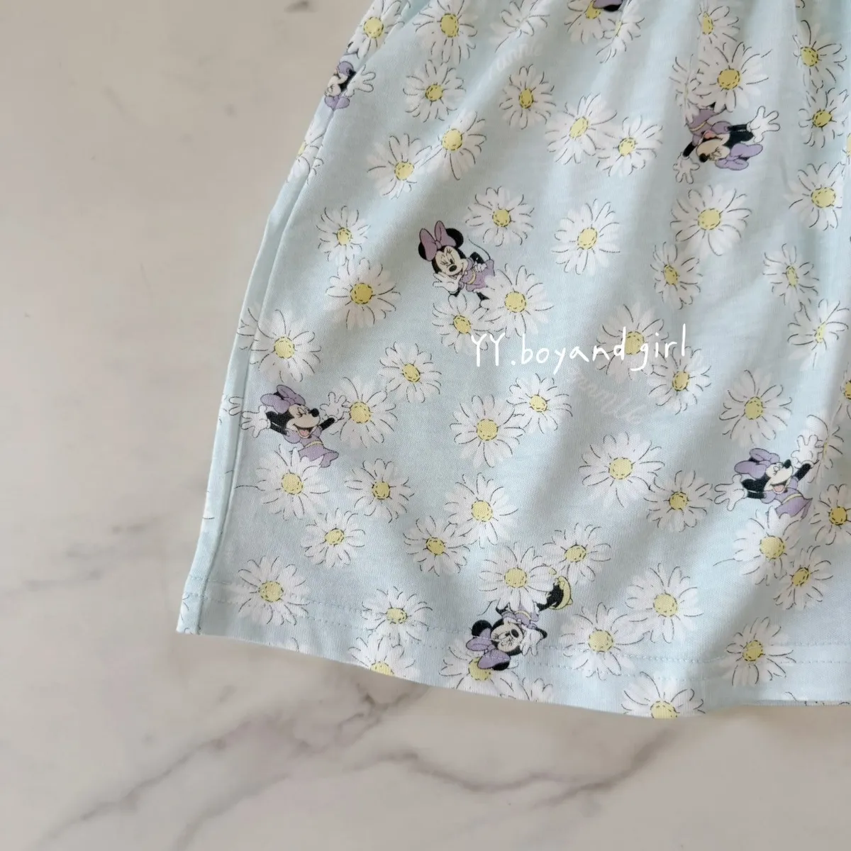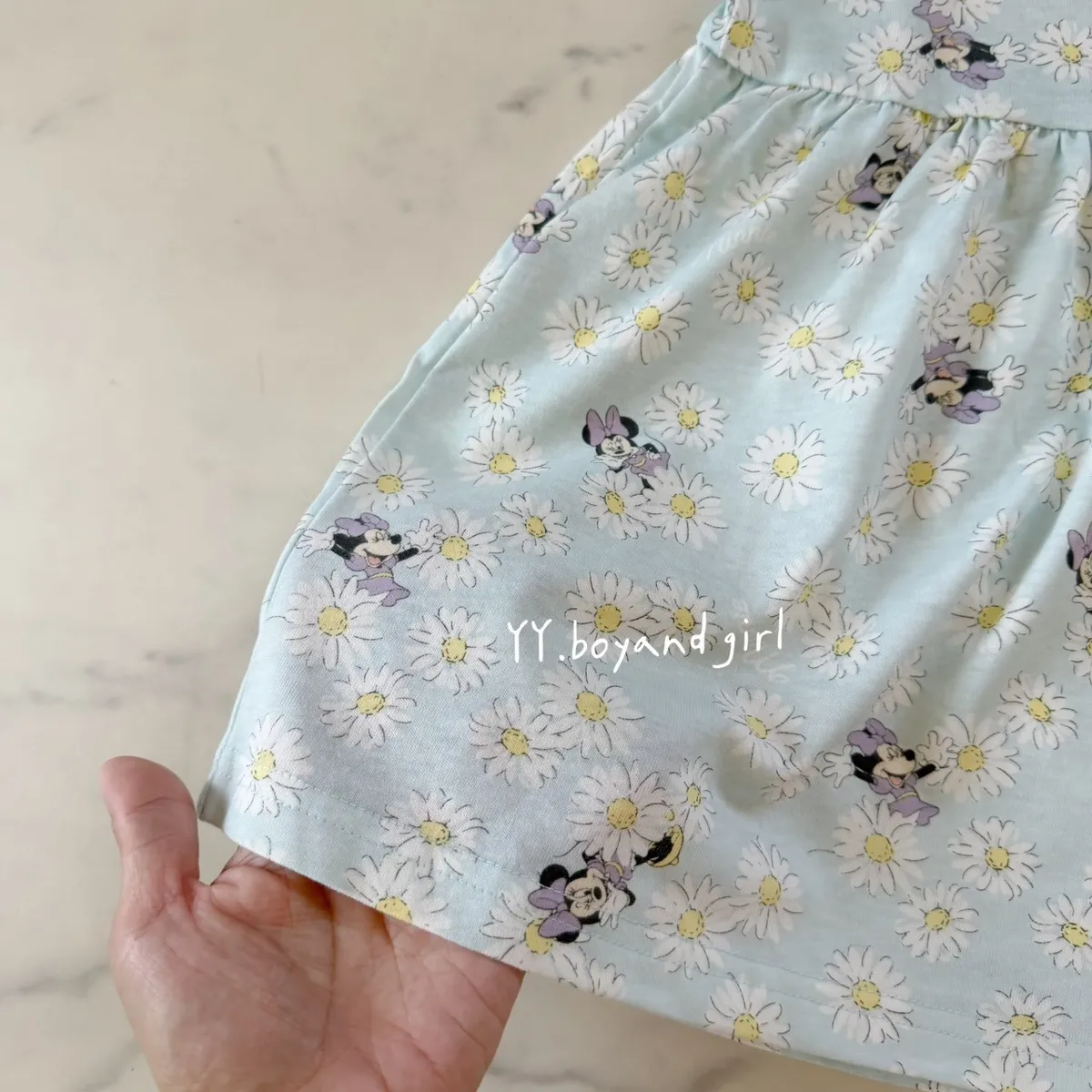 天藍底+小雛菊,清新又耐看 還有藏身在小雛菊裡面的米妮~ 微荷葉袖設計,甜美不浮誇高腰抓皺版型,修飾比例又好活動搭配可愛角色點綴,童趣剛剛好布料薄軟透氣, 摸起來柔軟親膚, 日常穿一整天也舒服單穿一件就很好看💙🧵 材質: 棉 60% + 聚酯纖維 40%