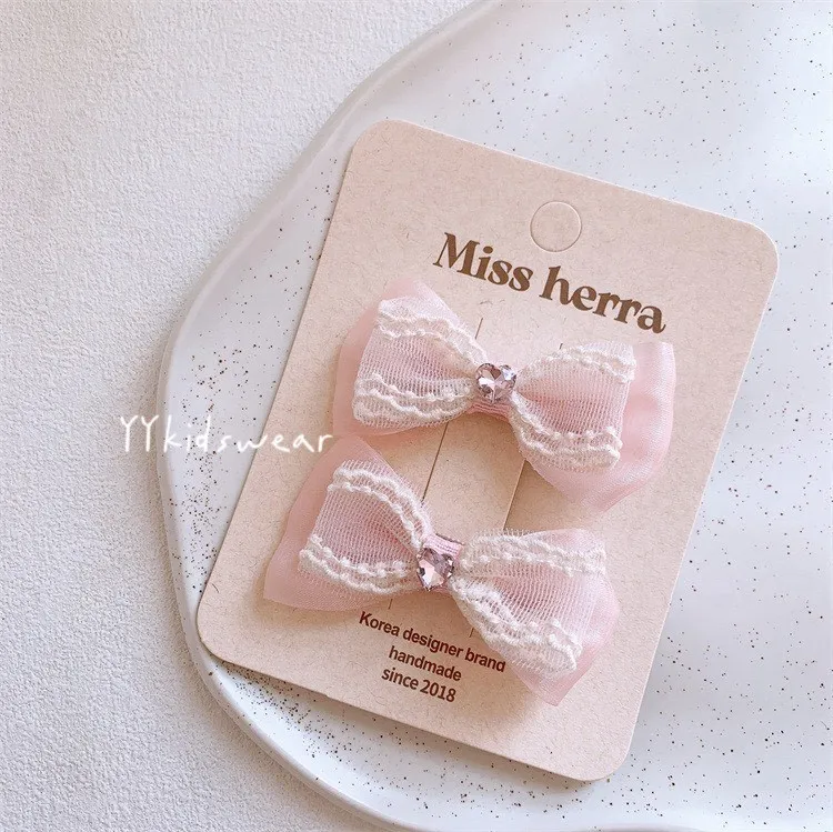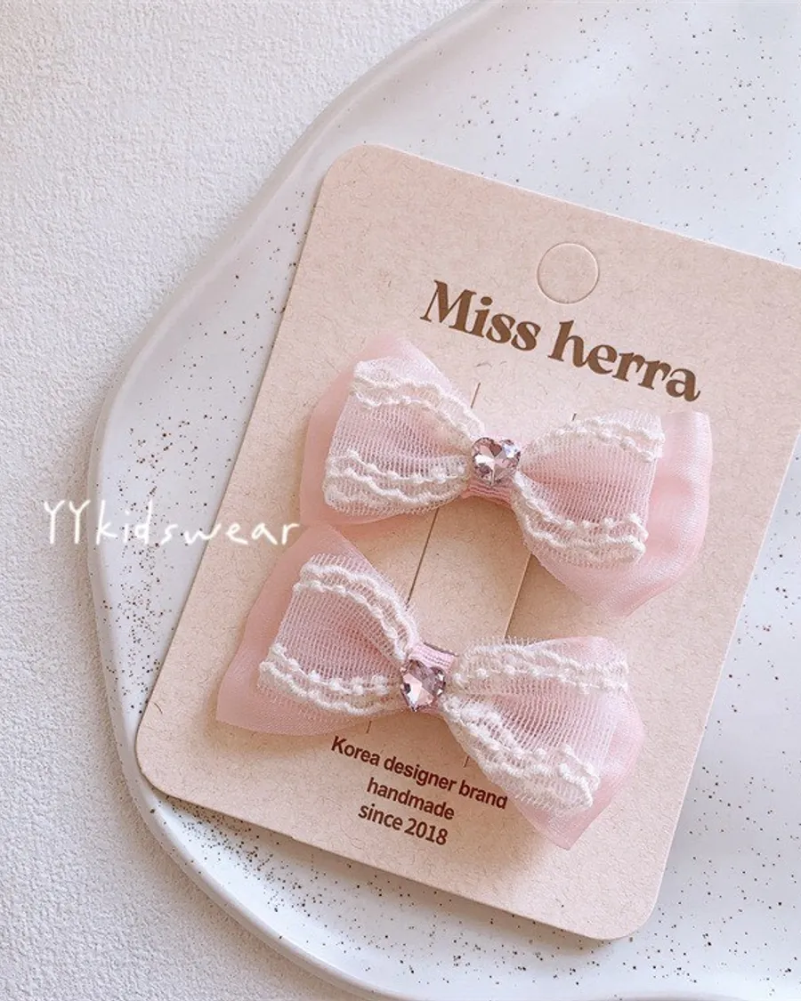 粉雪蕾絲珍珠蝴蝶結雙夾