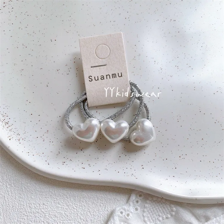 甜甜的微光珍珠愛心 × 銀色亮亮髮圈珍珠光澤,溫柔可愛、又不浮誇。彈性好、不扯髮低調閃亮,日常綁馬尾就很可愛