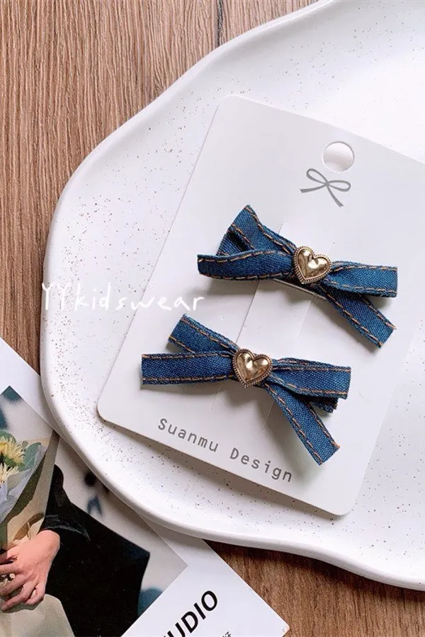 微挺的丹寧布讓蝴蝶結立體又精緻,小女孩夾上瞬間變得俐落可愛。
