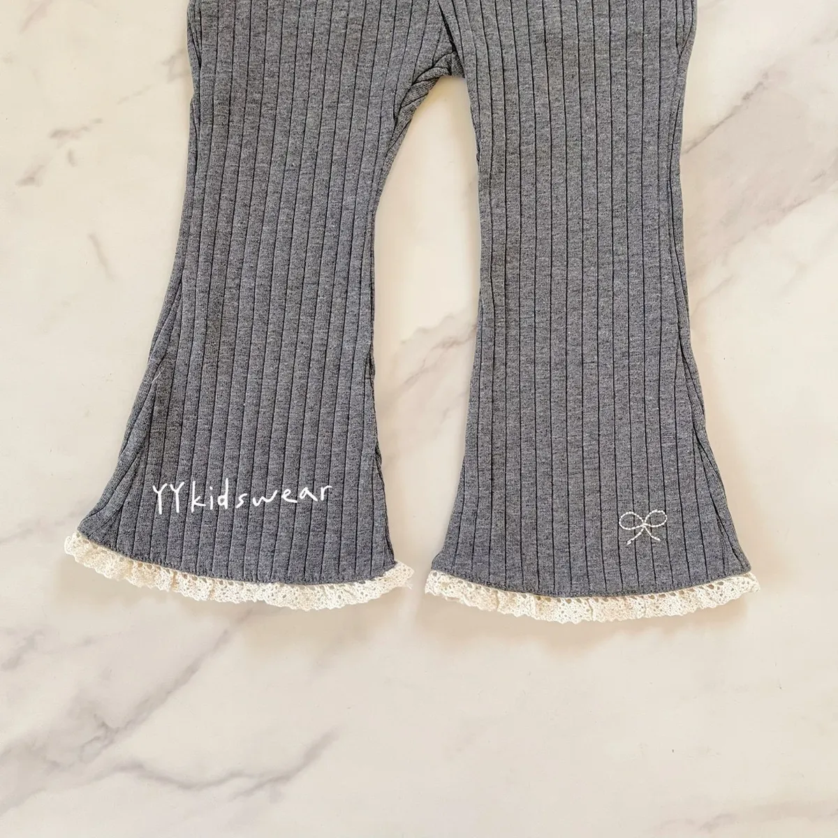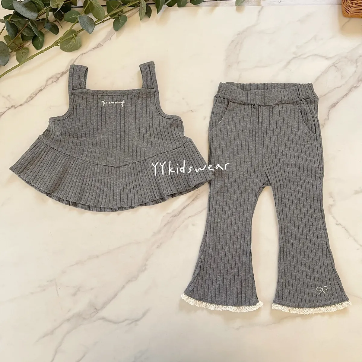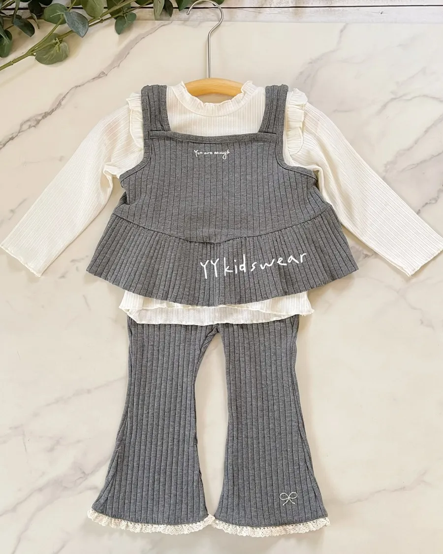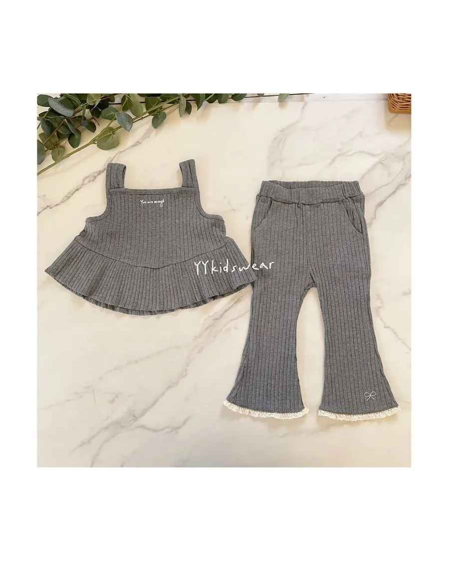 背心下擺是小荷葉,褲管蕾絲小喇叭超修飾腿型。
