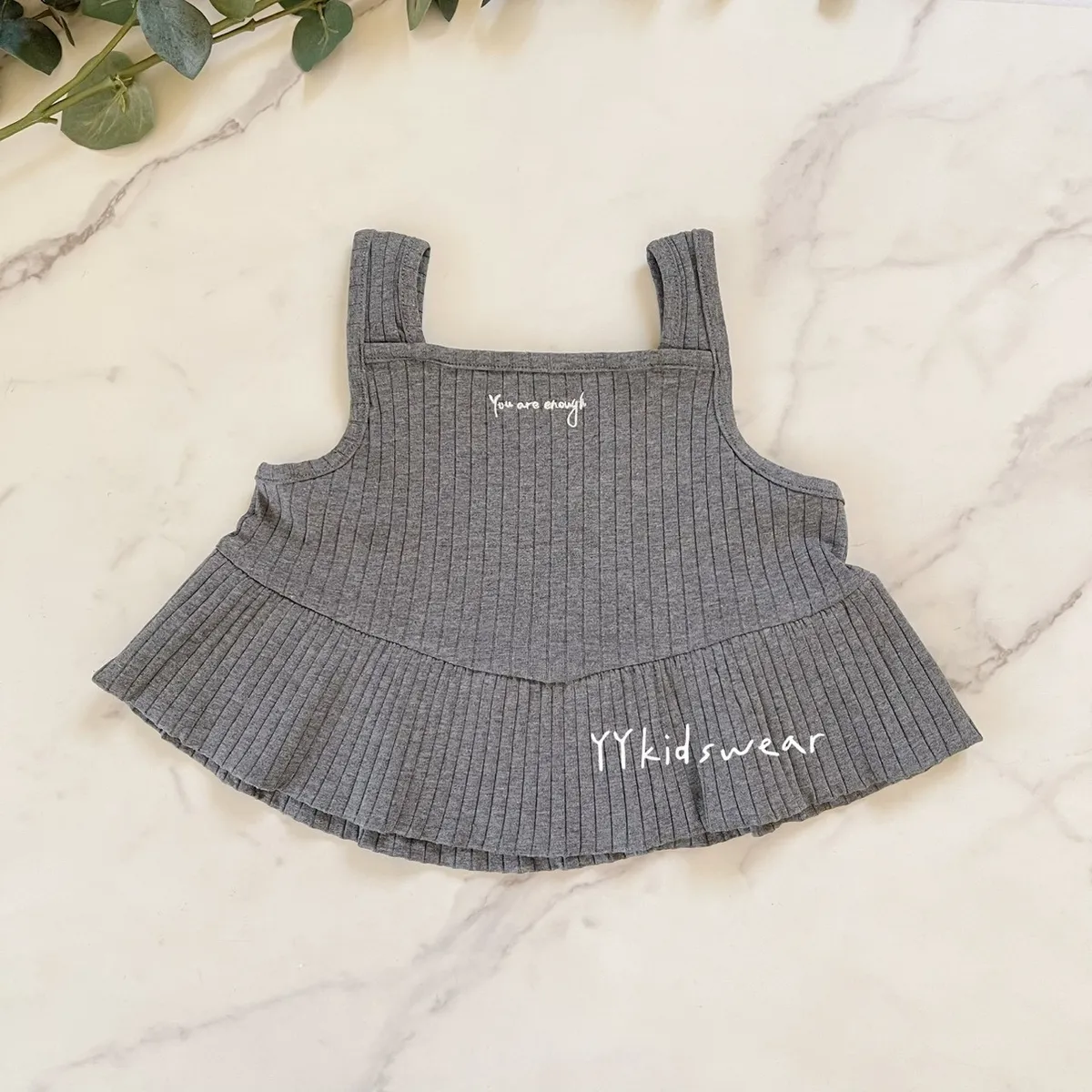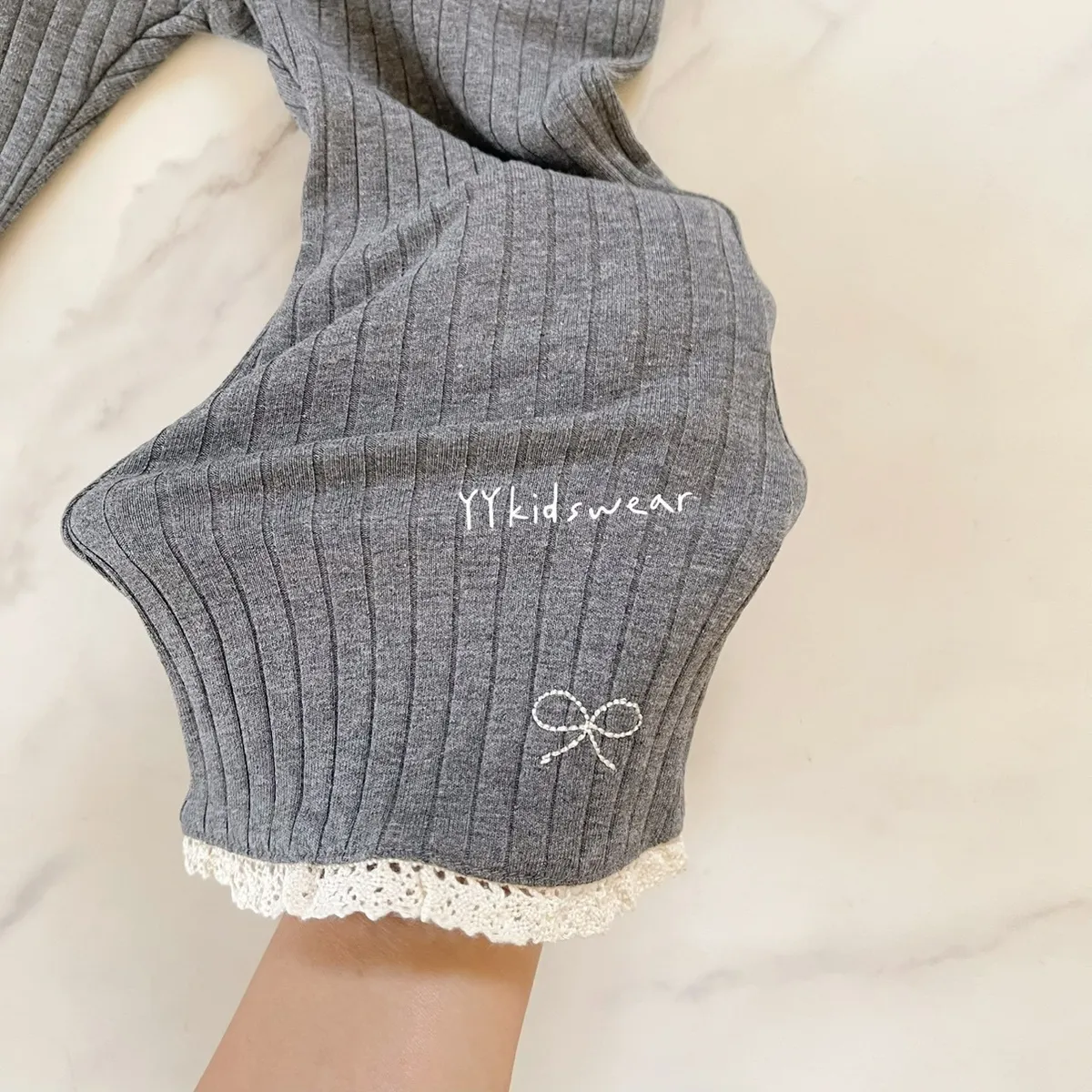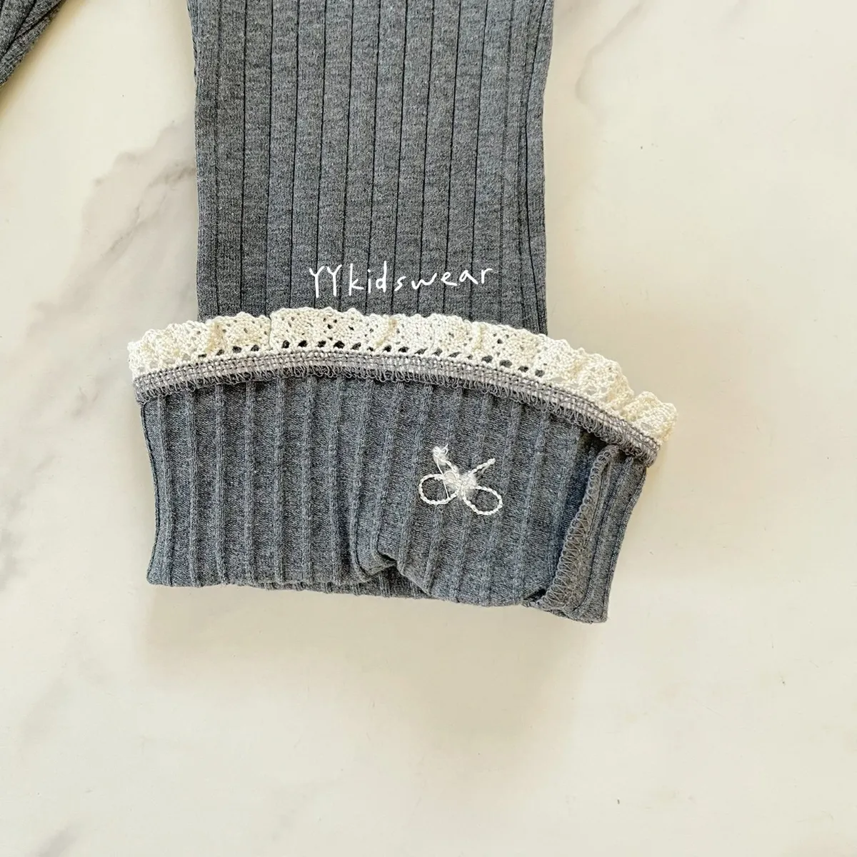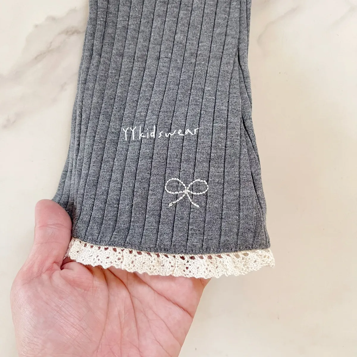 背心下擺是小荷葉,褲管蕾絲小喇叭超修飾腿型。
