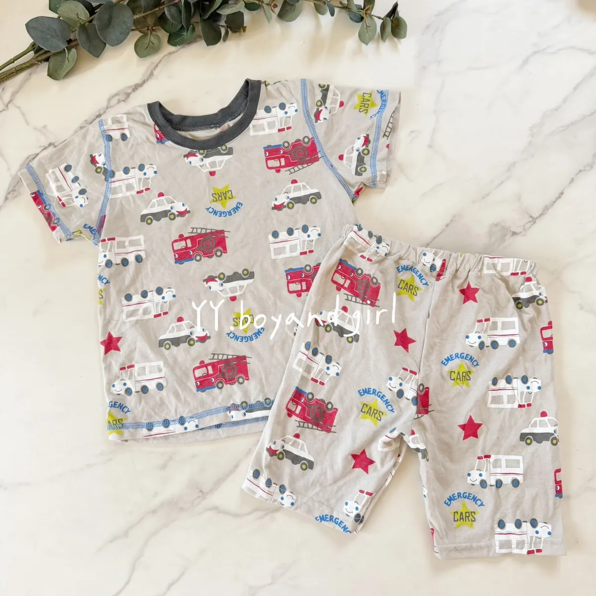 男寶最愛的車車套裝 有救護車🚑+消防車🚒直接變身「小小救援隊」! 布料輕薄軟又透氣, 有彈性不拘束居家睡覺穿很舒適夏天就是要這種涼+軟+好活動 的居家服 布料輕薄透氣, 好洗快乾, 媽媽很喜歡~ 🧵 材質本體:聚酯纖維 65%+棉 35% 注意: 上衣有剪標!!!! 能接受再下單