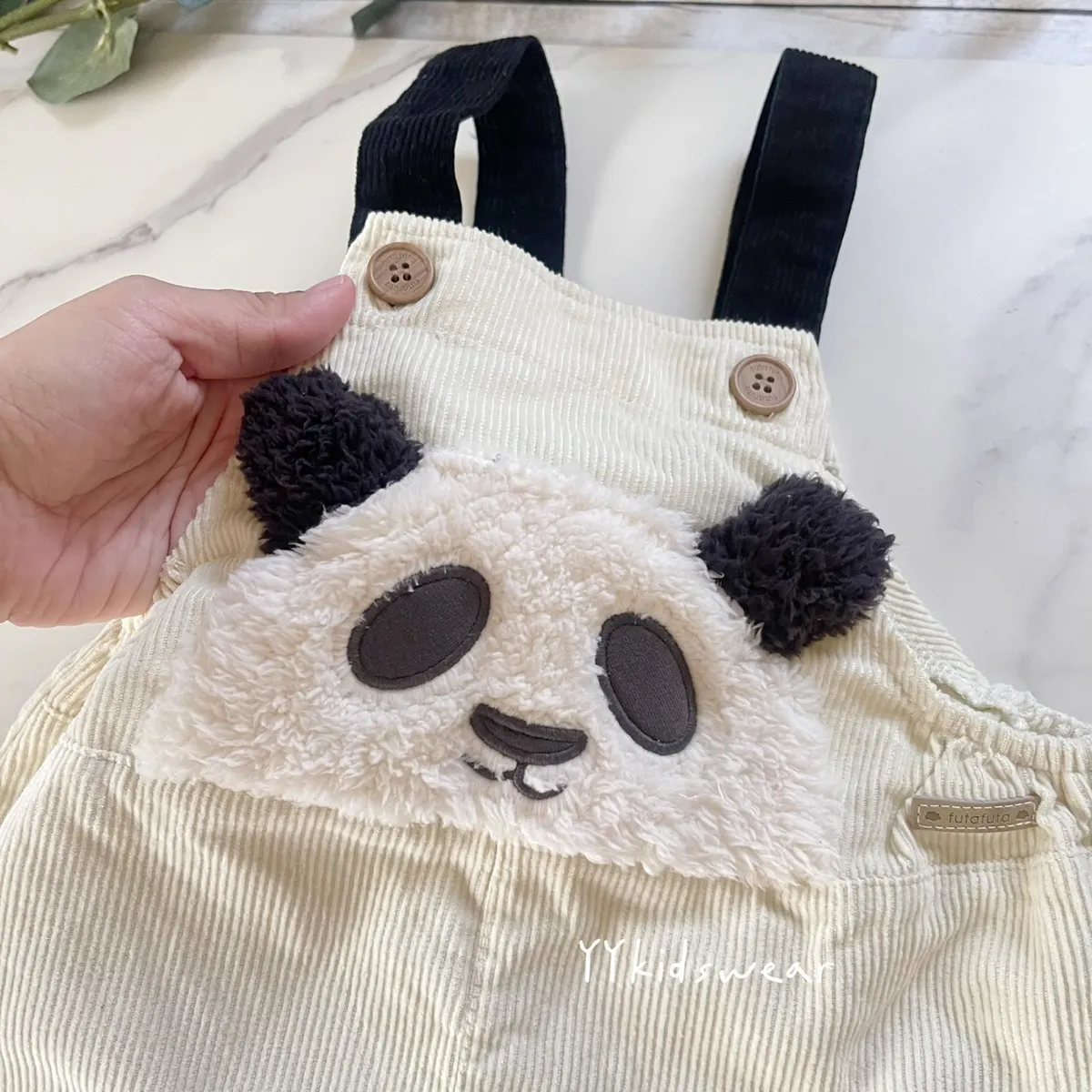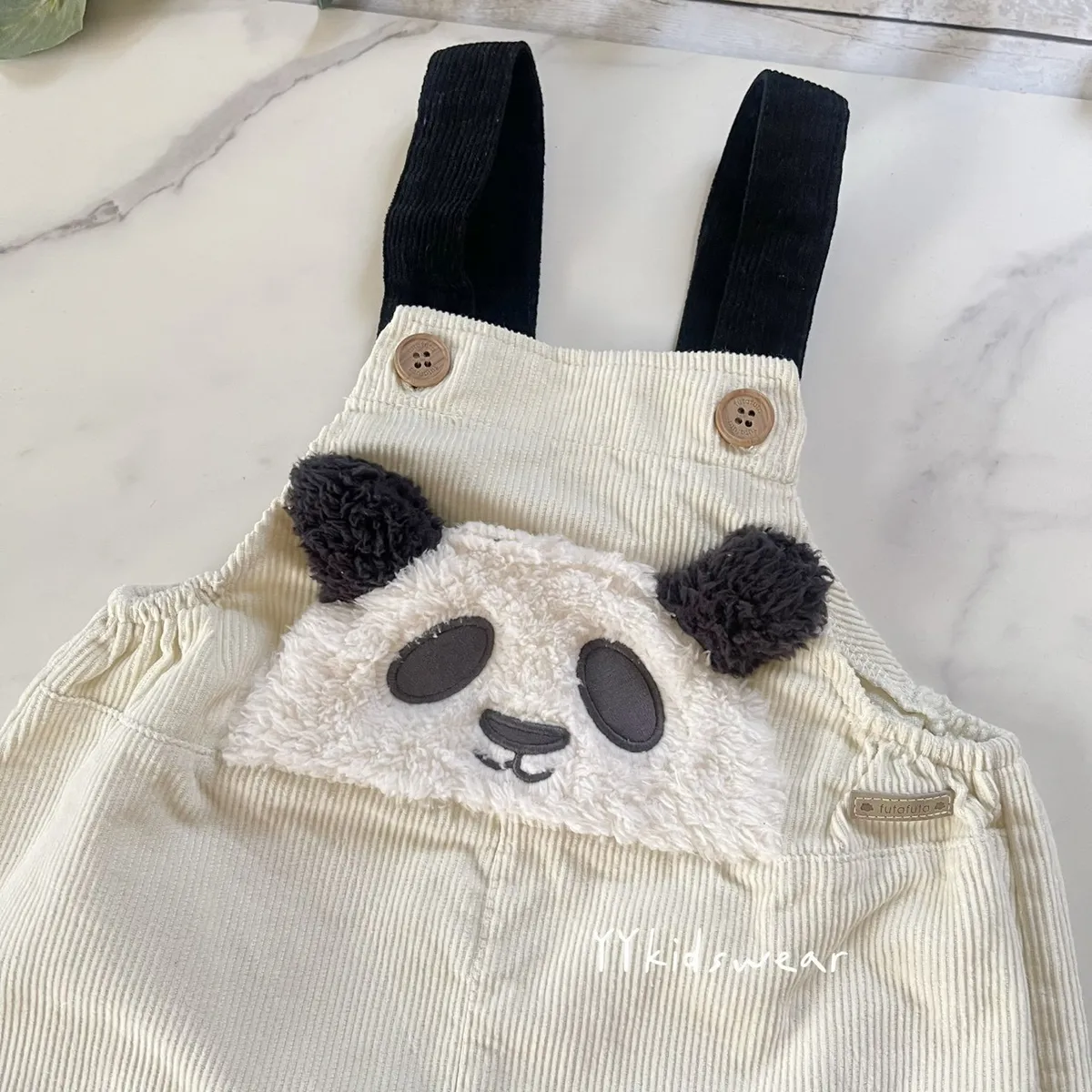 材質: 純棉彈力: 微✨秋冬天一定要來一件超萌的熊貓! 正面的熊貓大臉是 絨毛立體耳朵+軟綿綿觸感,搭配高質感布料 燈芯絨材質, 柔軟不僵硬, 一件就能穿出冬季氛圍感。肩帶可兩段式調節, 一件可以穿很久