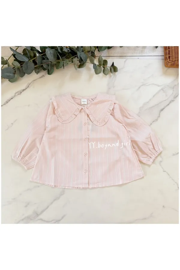 日單奶霧櫻花粉荷葉領春夏薄襯衫