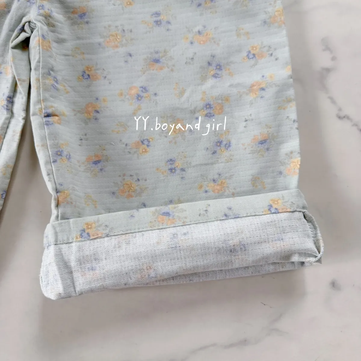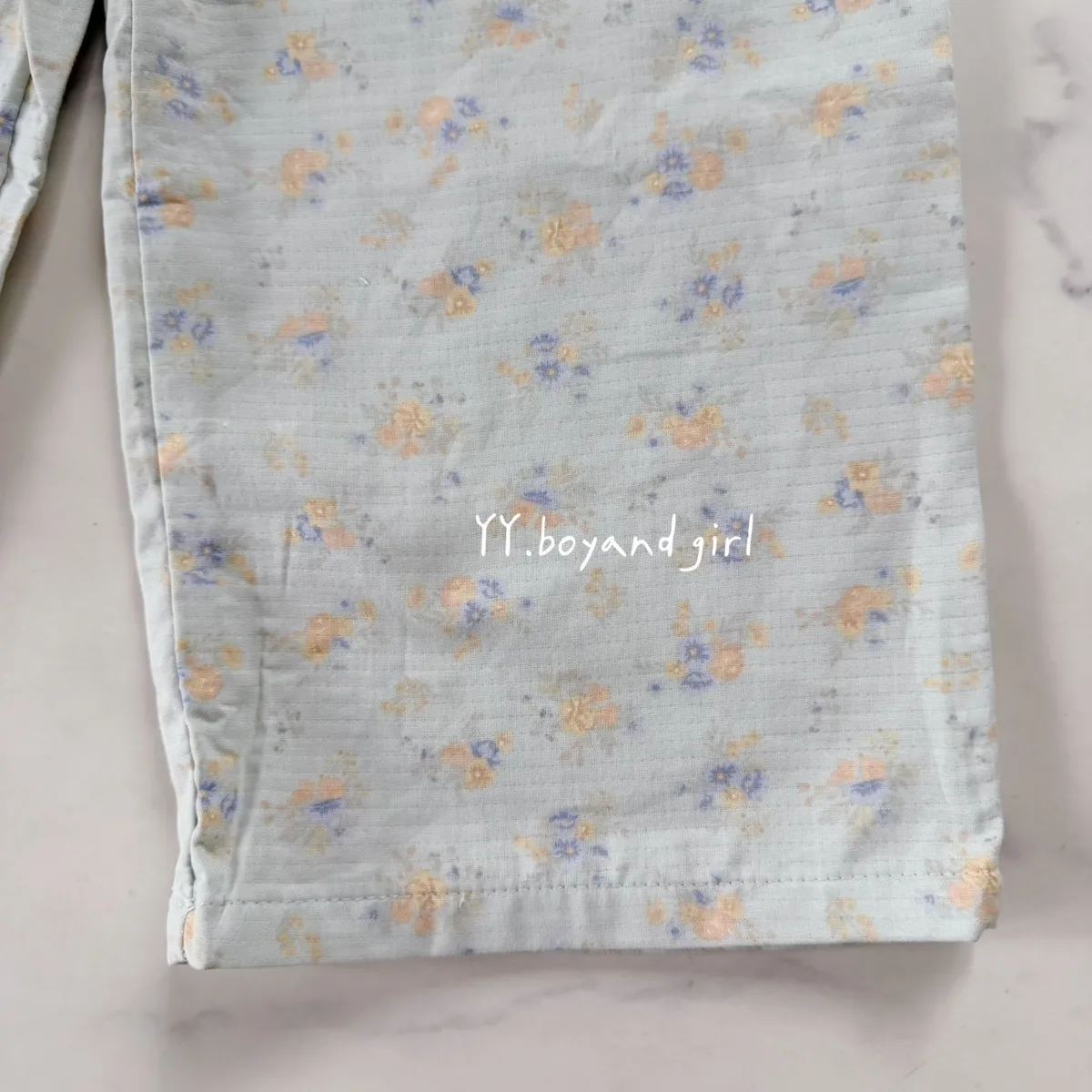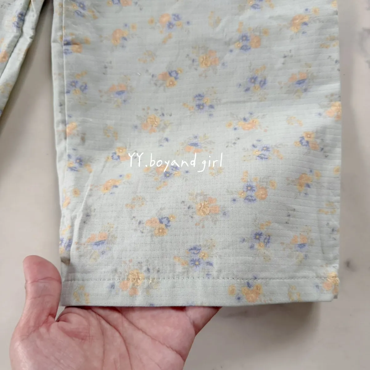 淡淡的霧水藍底色,搭配細緻小碎花