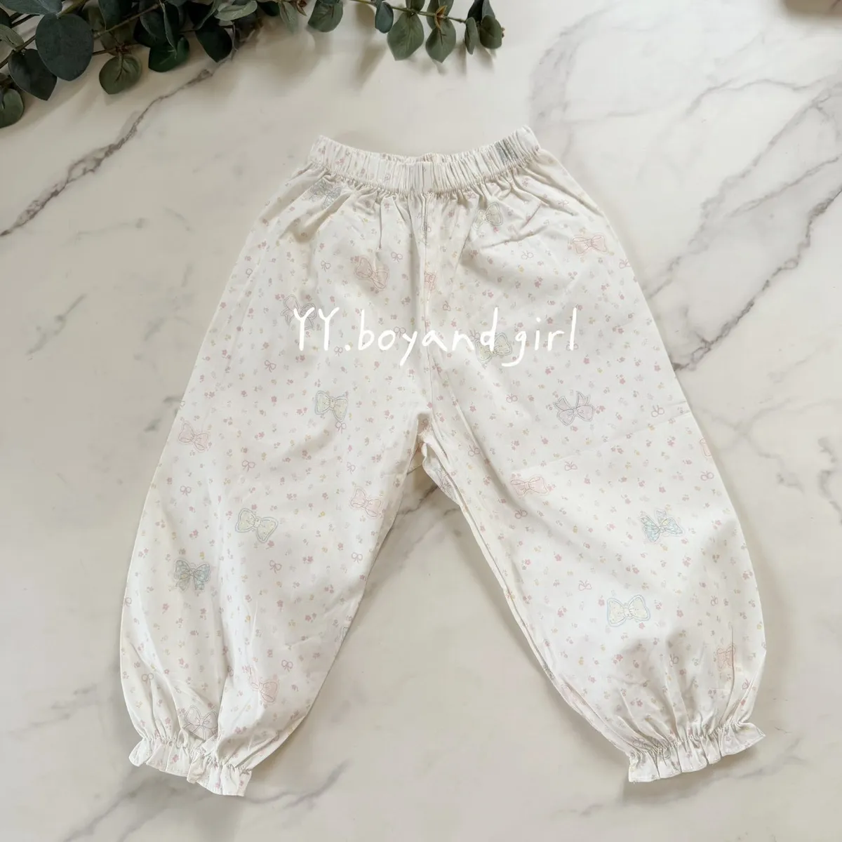 4. 櫻粉蝴蝶結小花(荷葉邊褲腳):